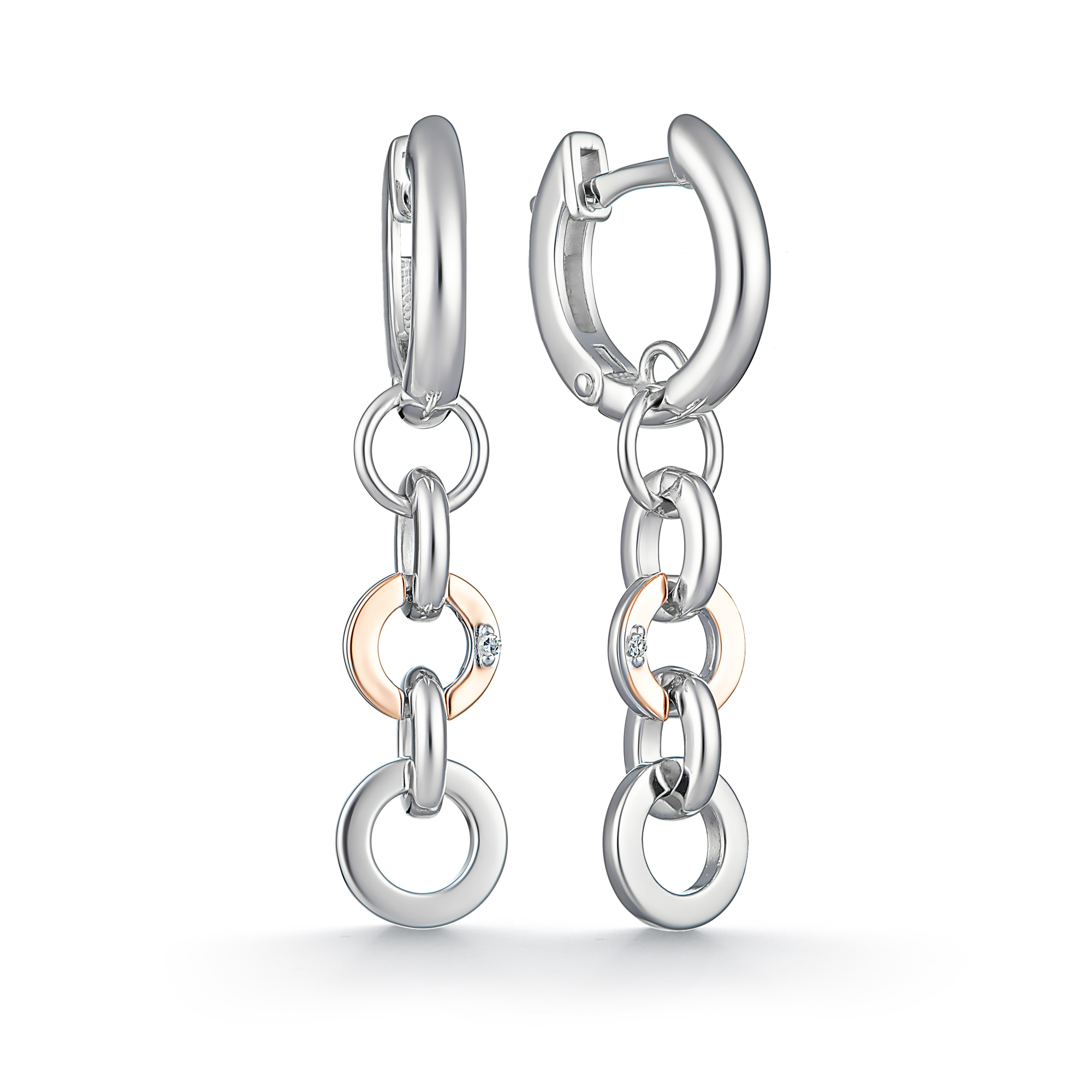 Серьги с английским замком из серебра с фианитами, сапфирами