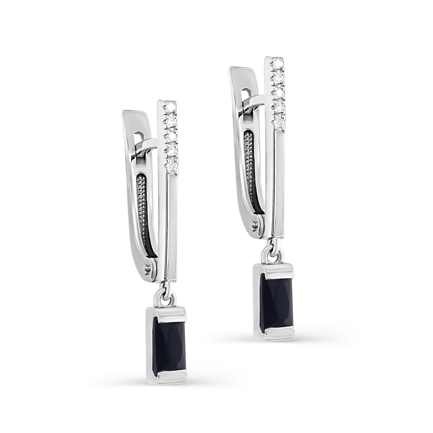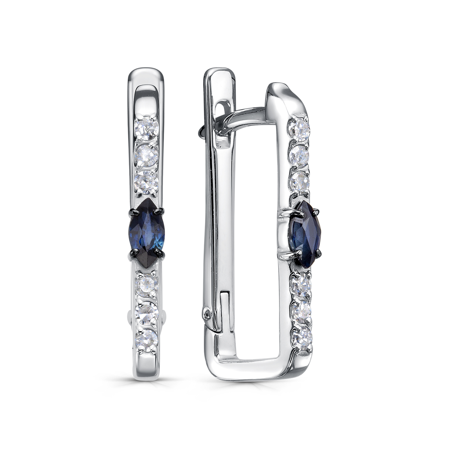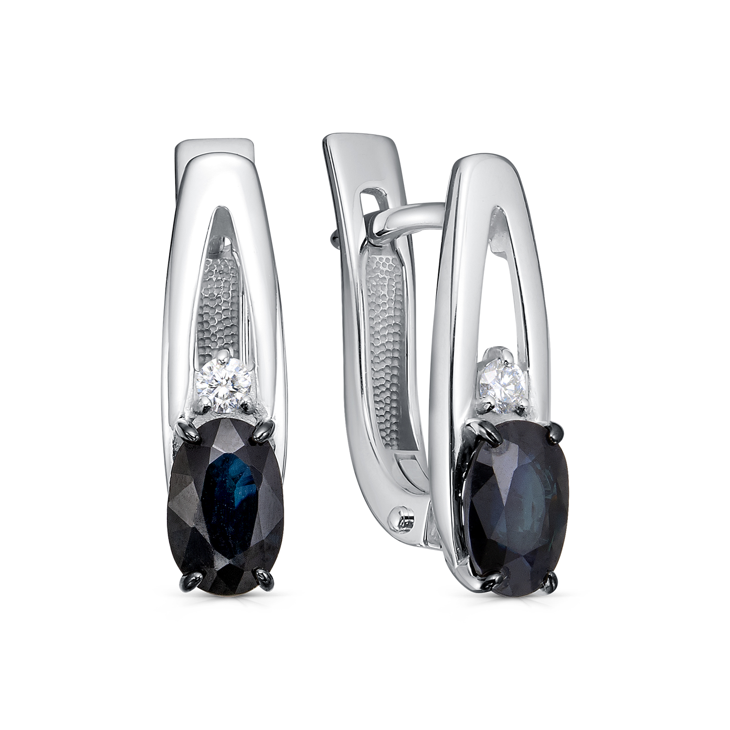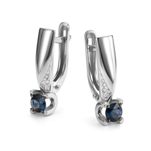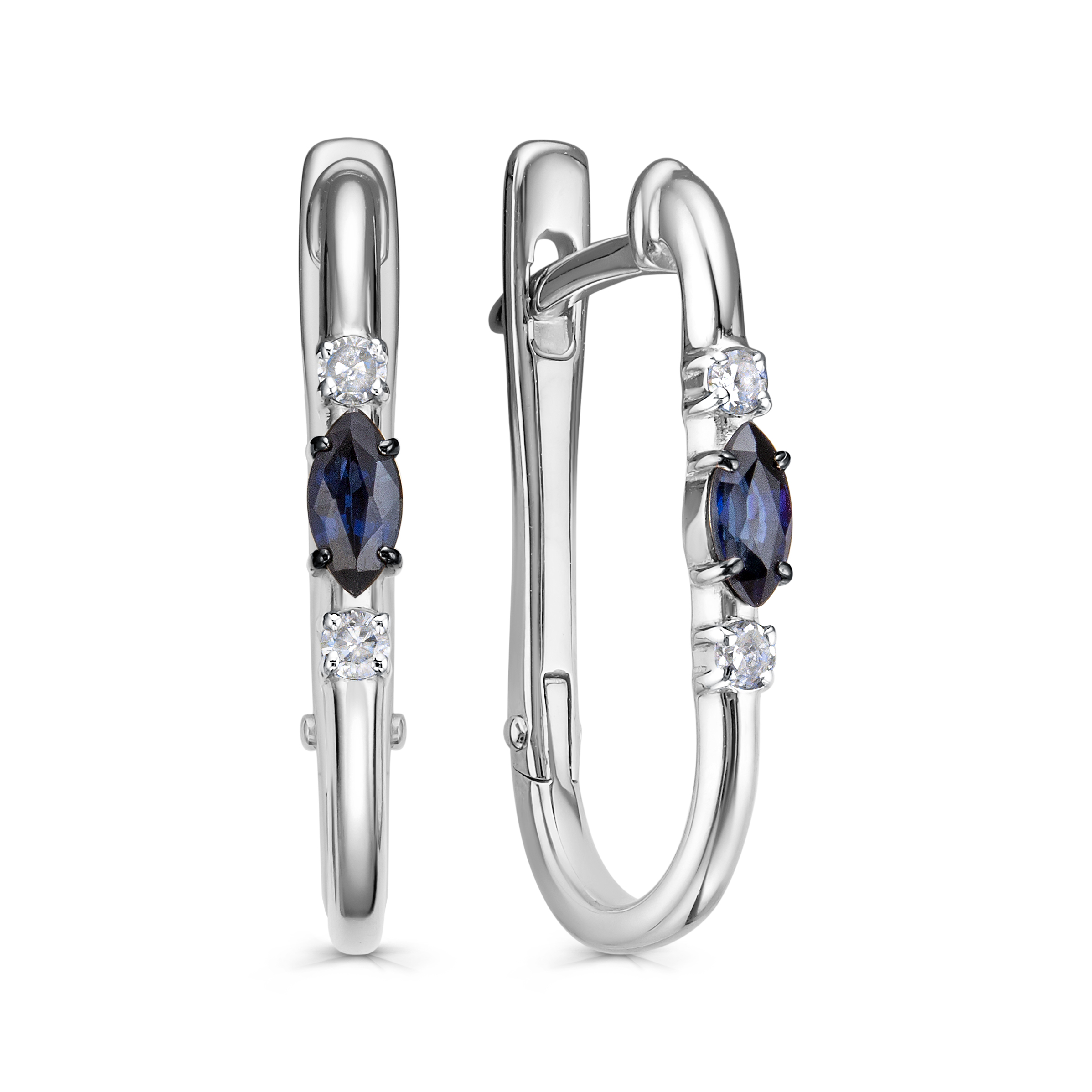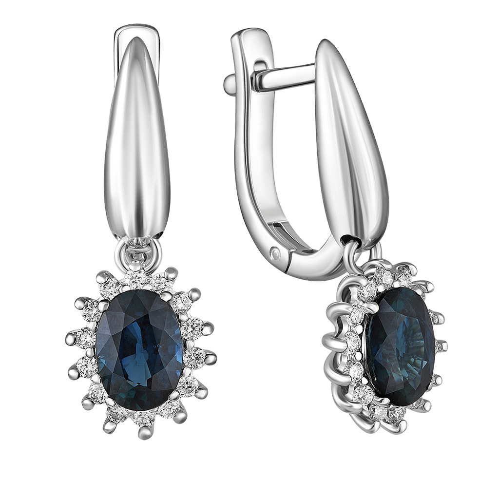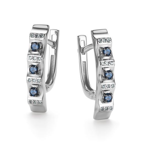 Серьги с английским замком из белого золота с бриллиантами и сапфирами