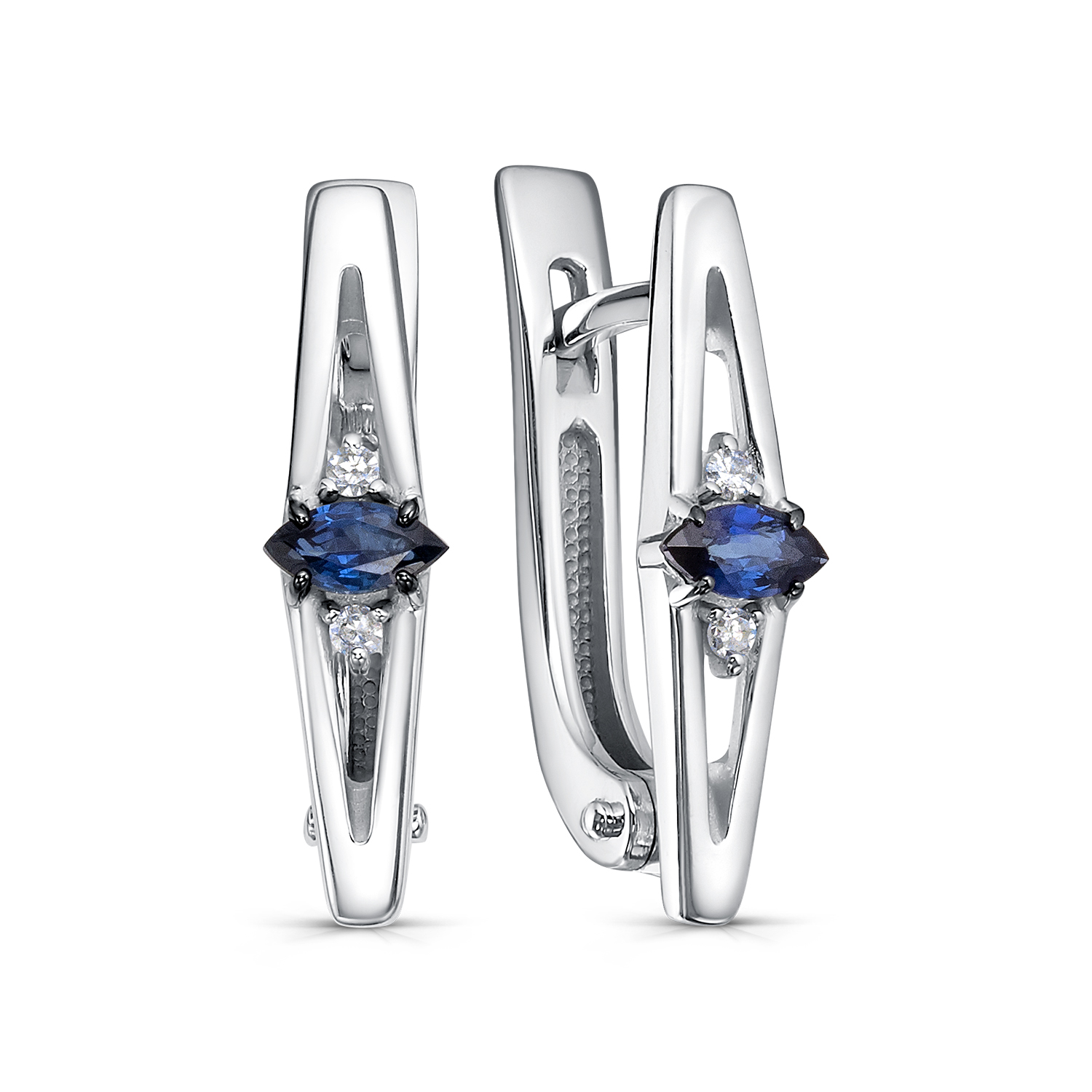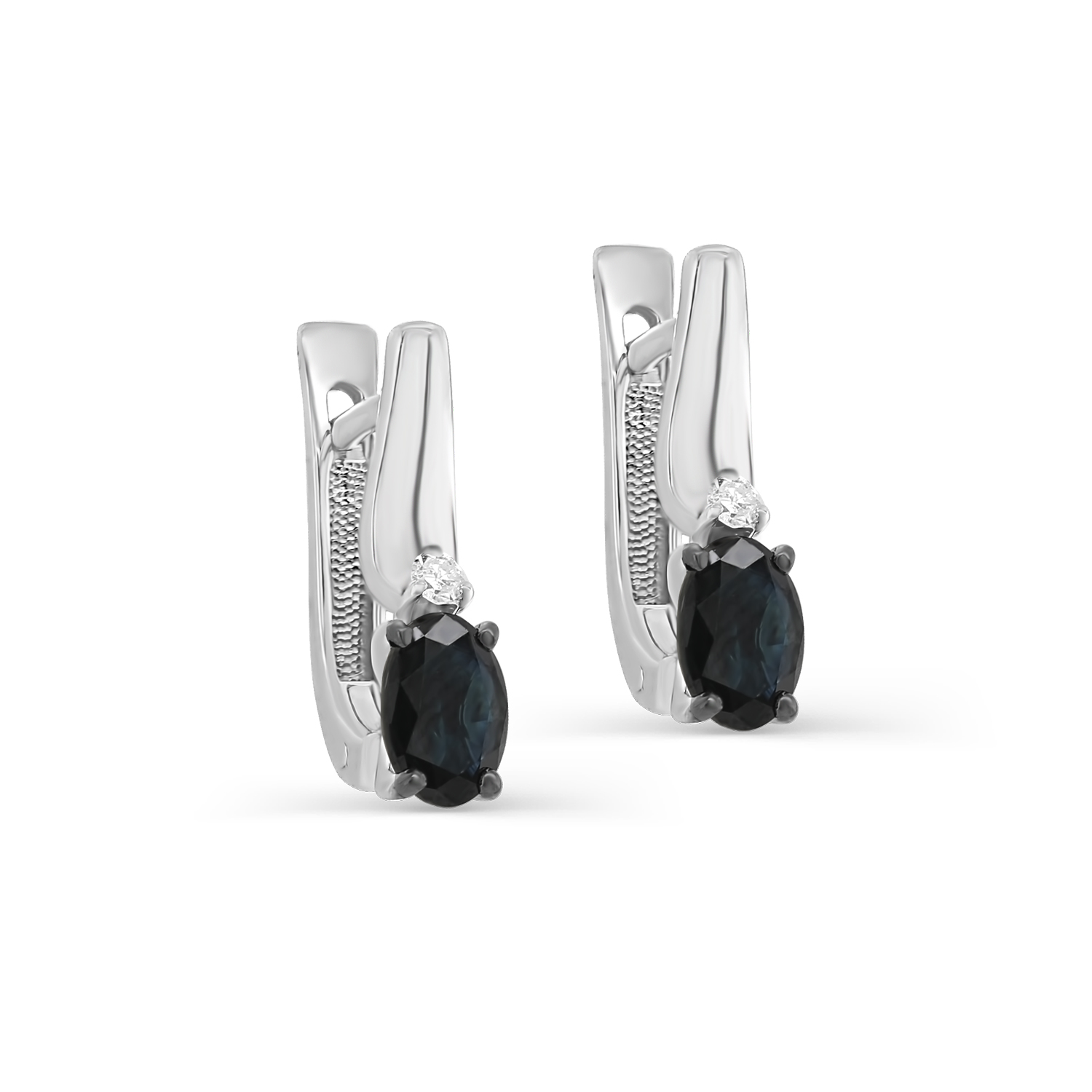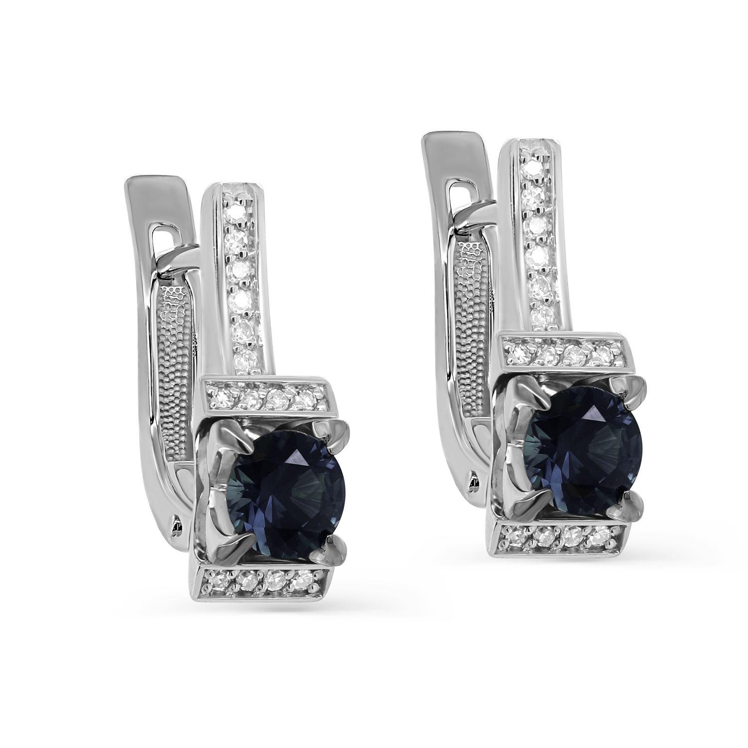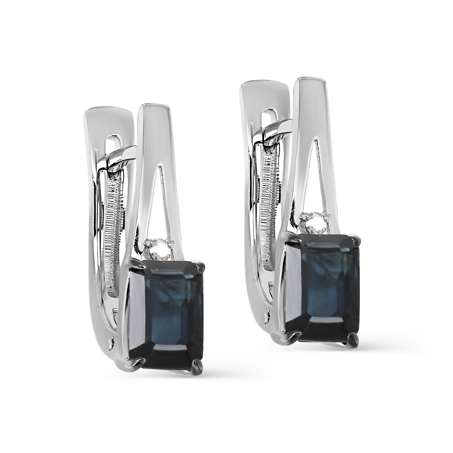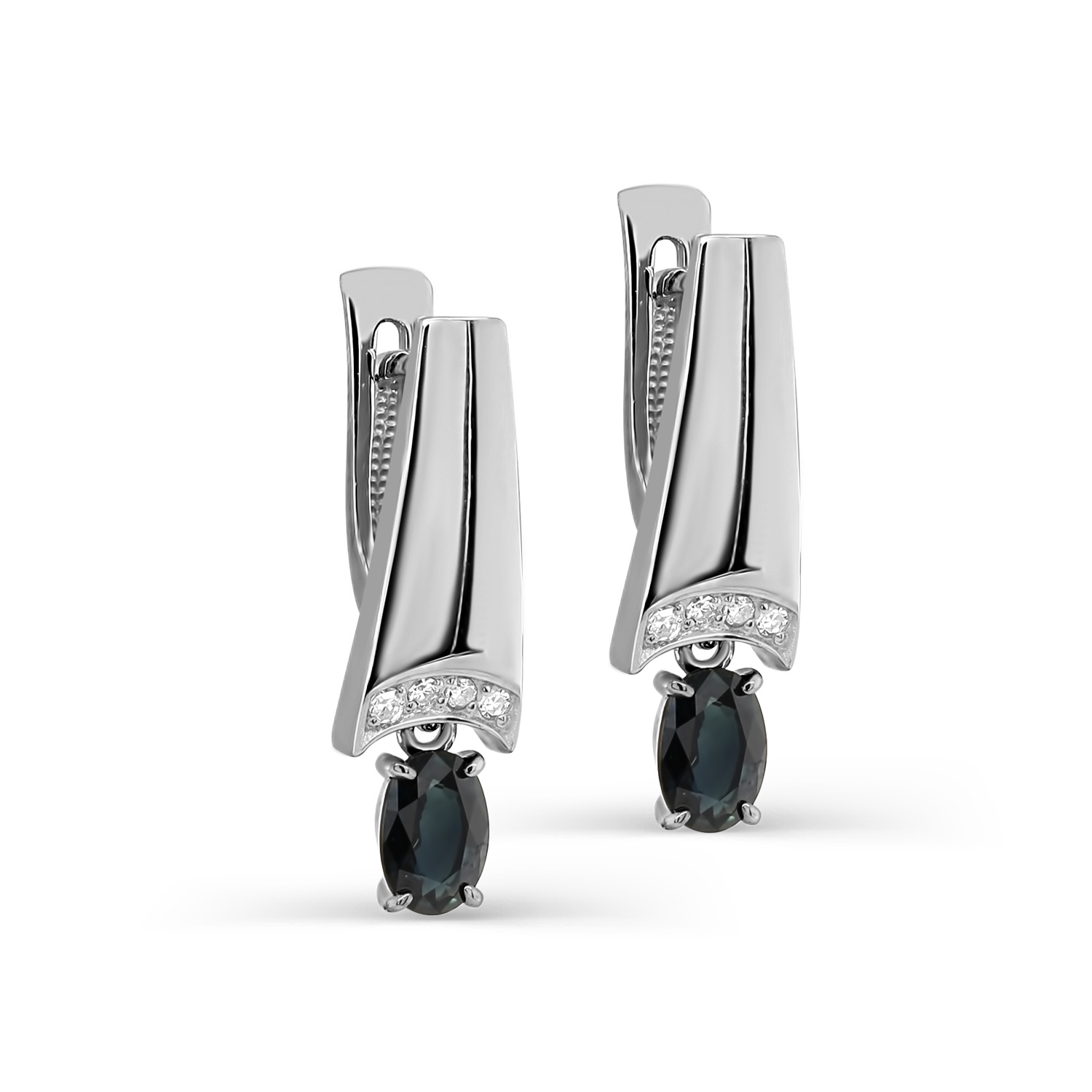 Серьги с английским замком из белого золота с бриллиантами и сапфирами