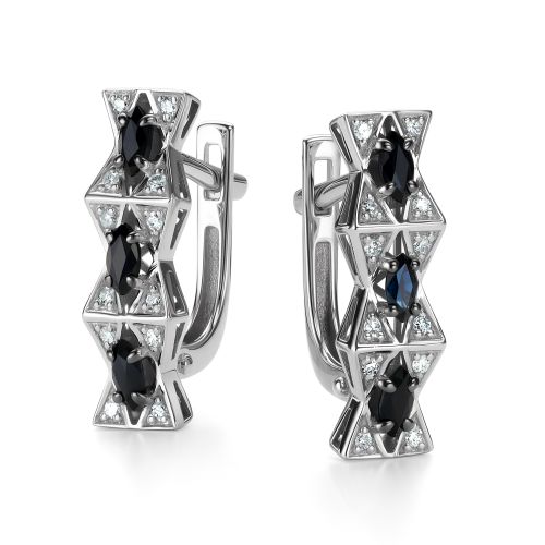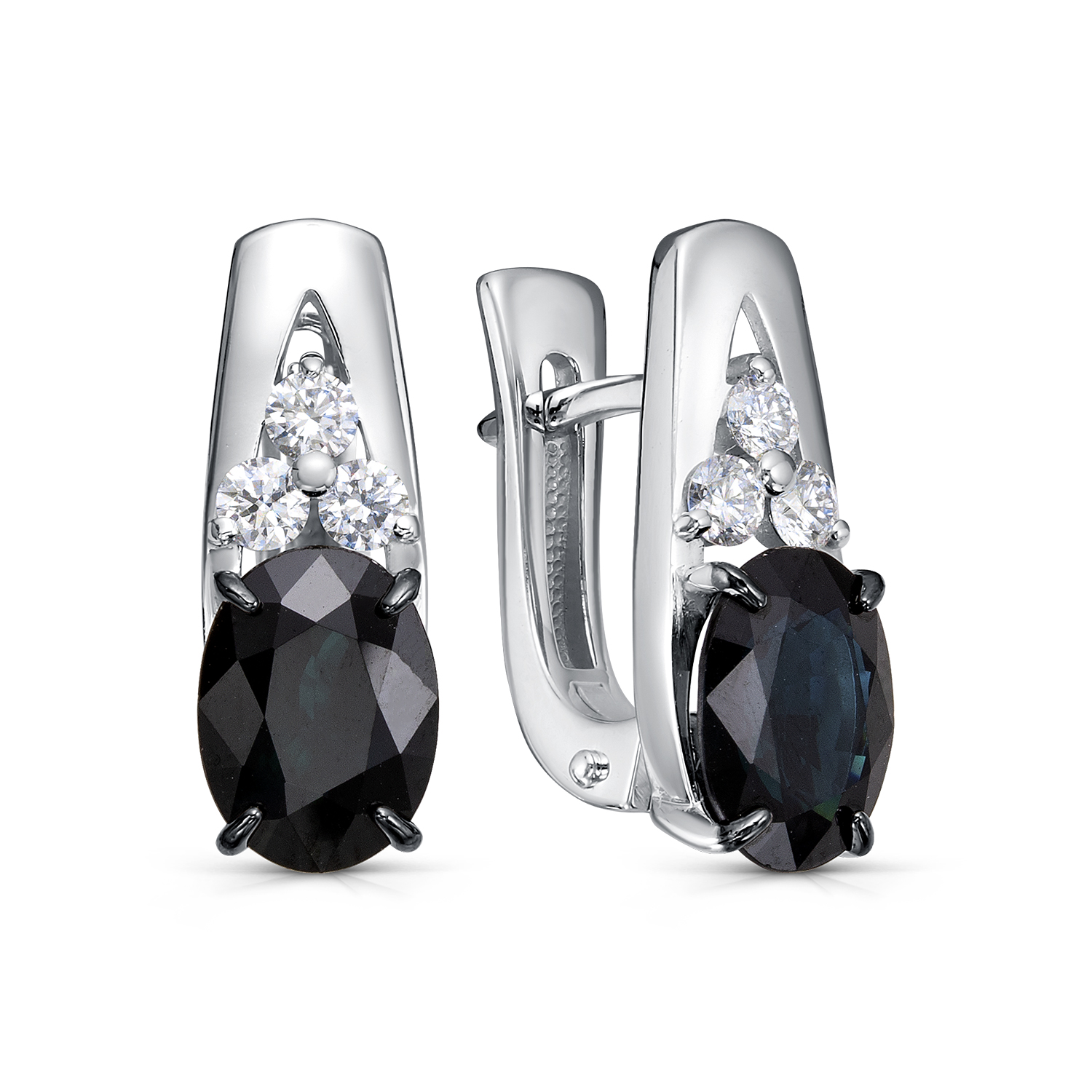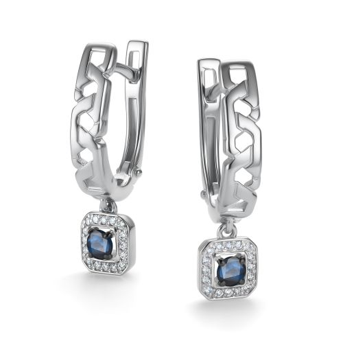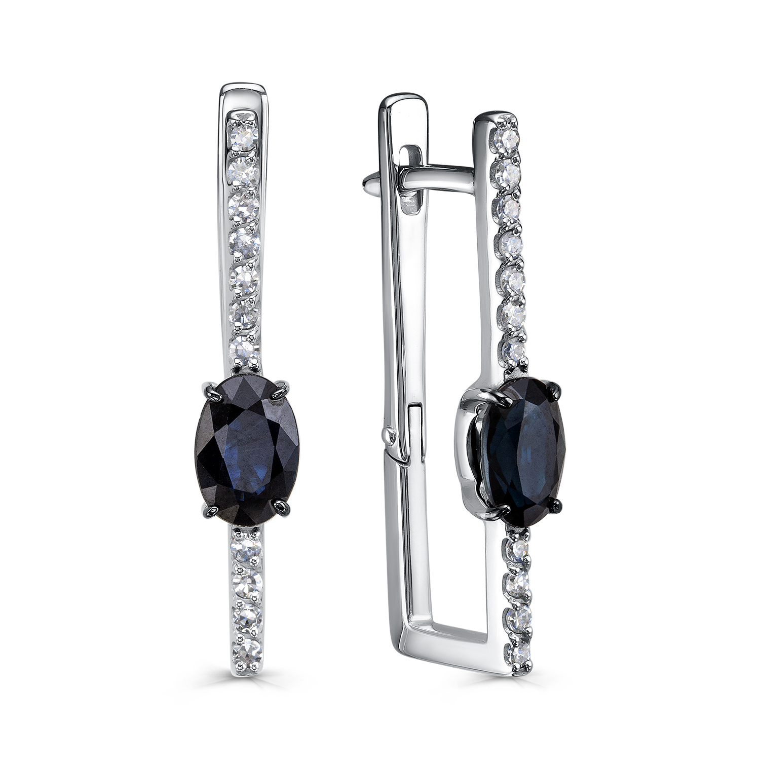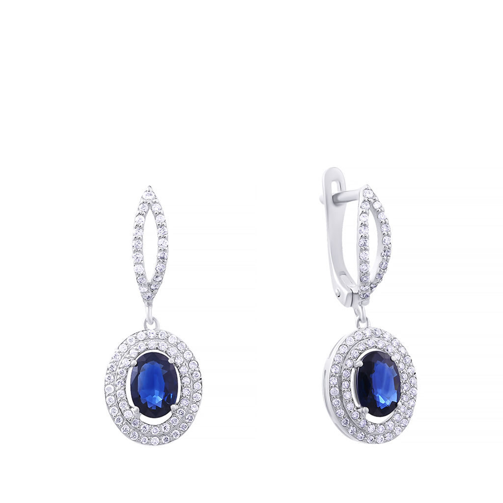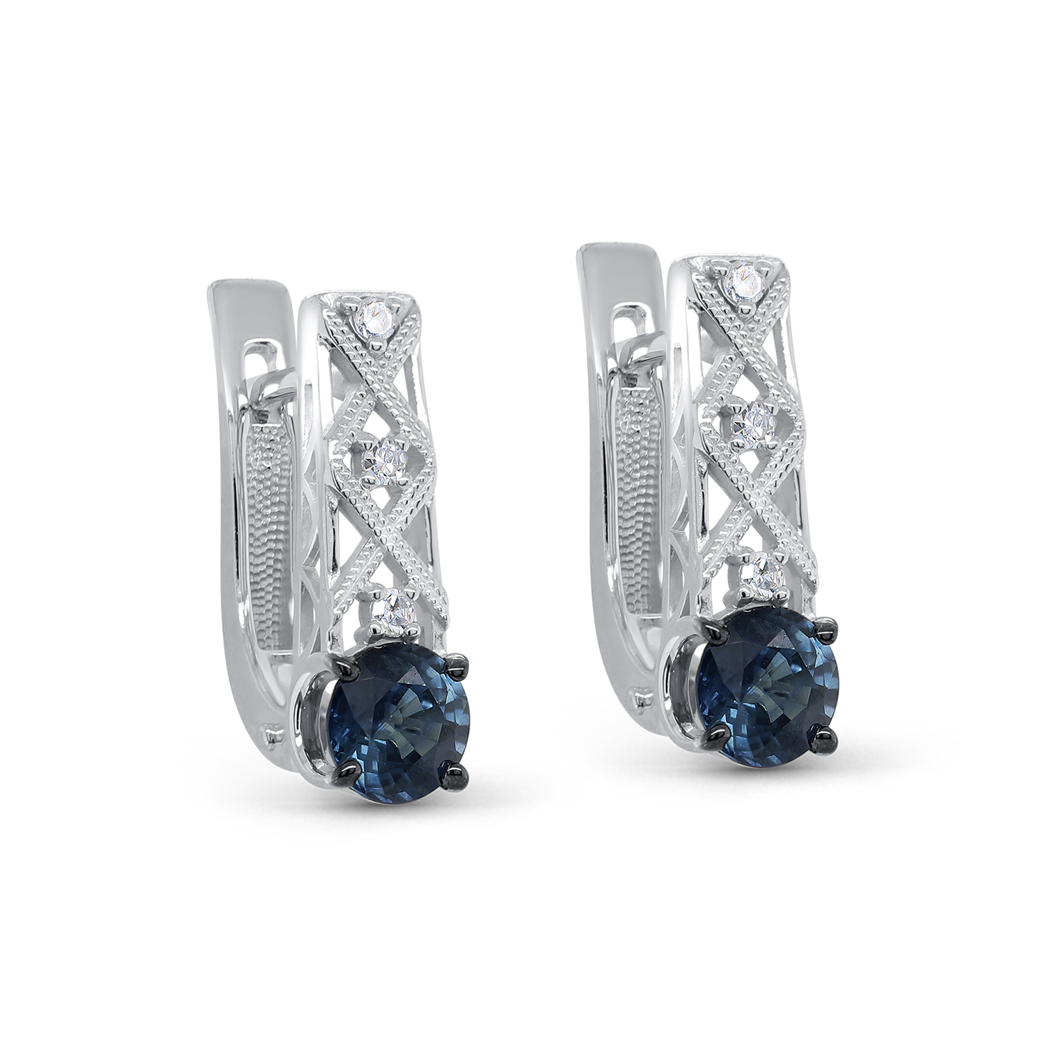 Серьги с английским замком из белого золота с бриллиантами и сапфирами