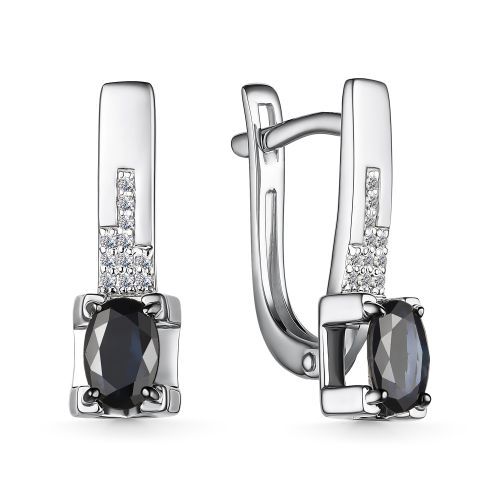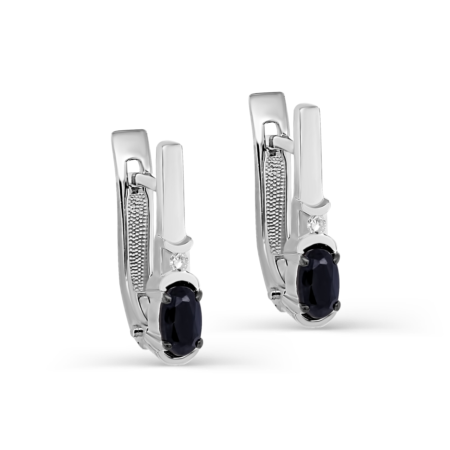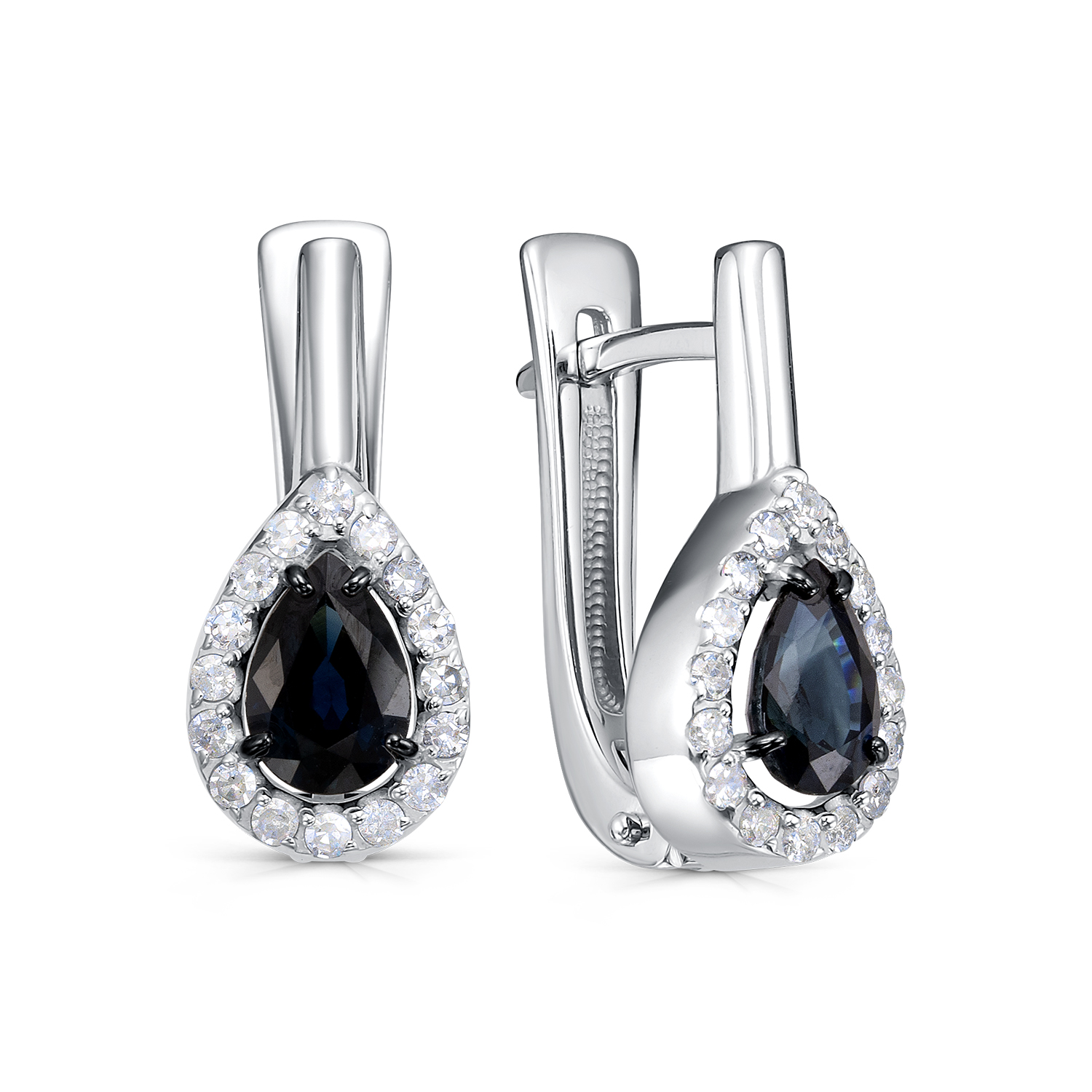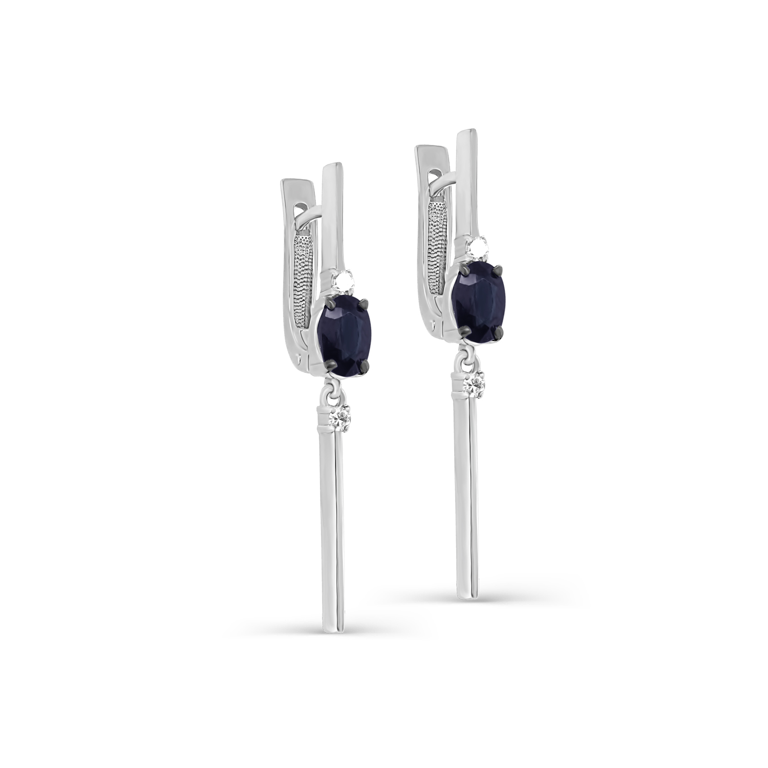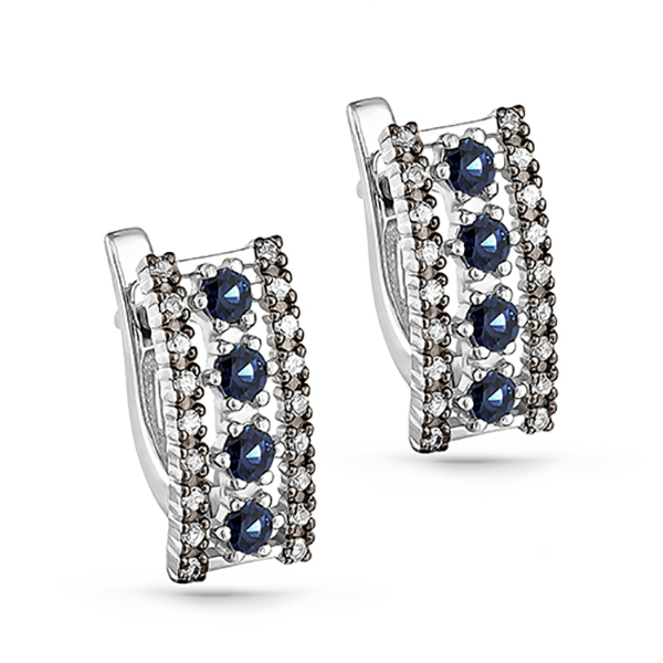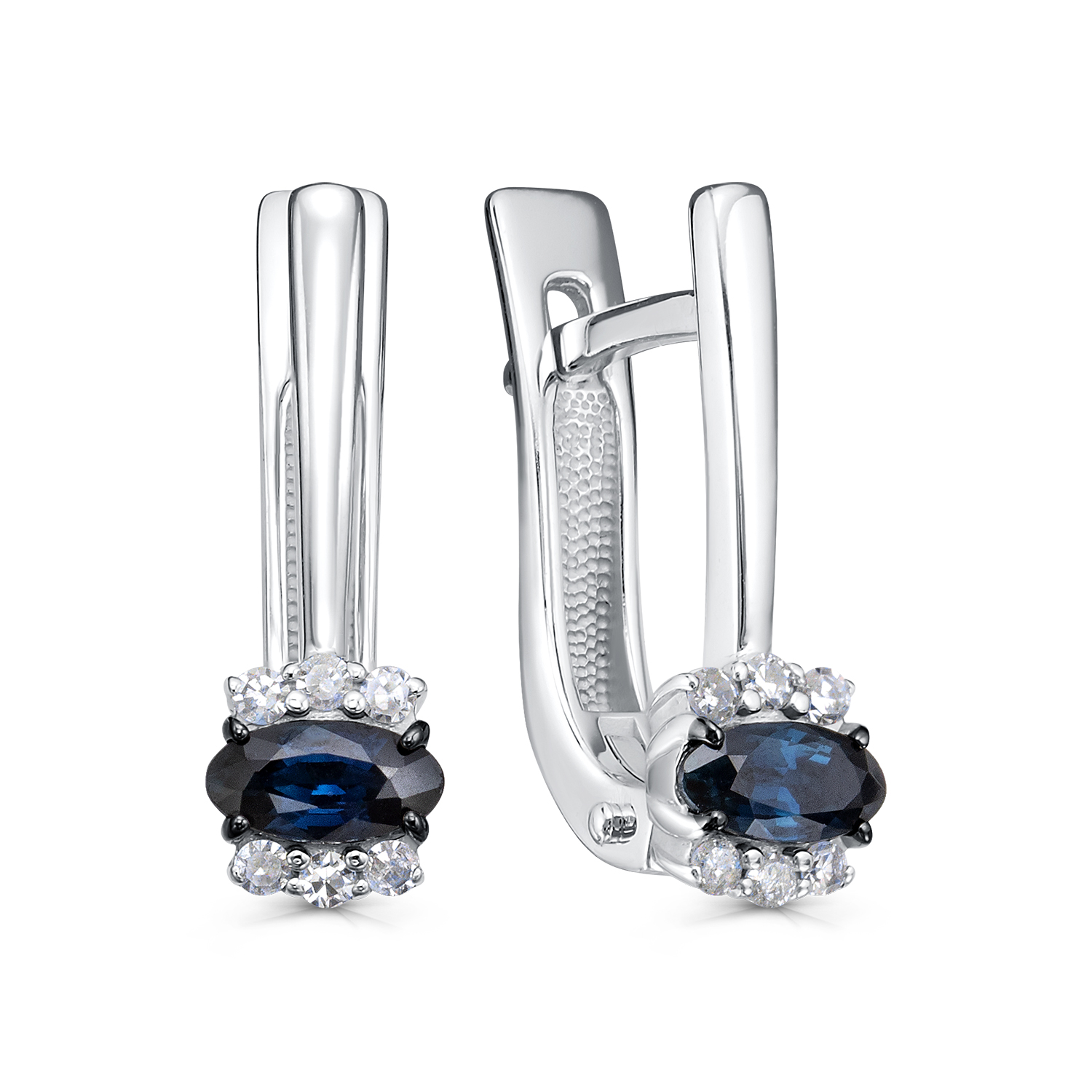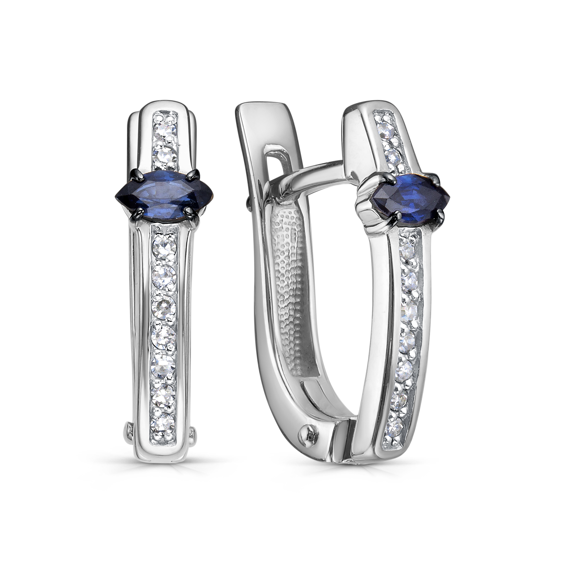 Серьги с английским замком из белого золота с бриллиантами и сапфирами