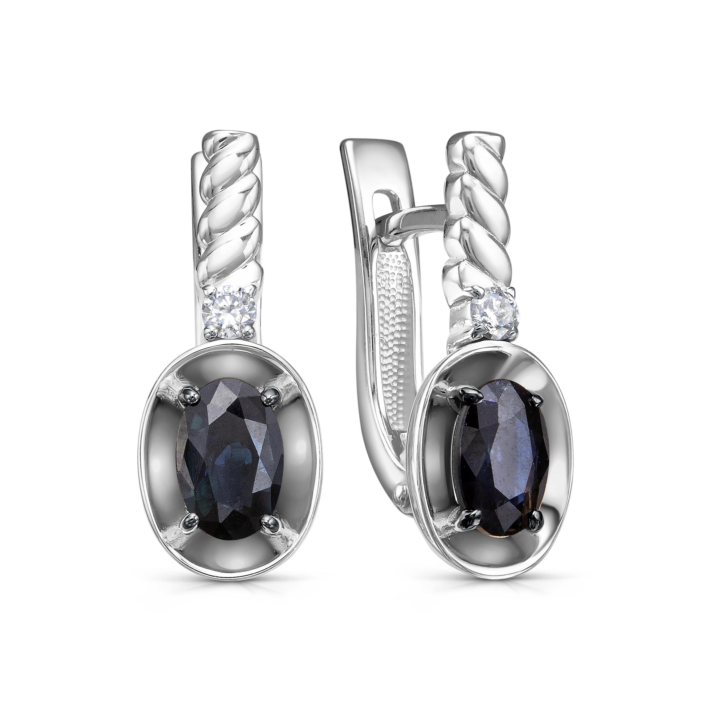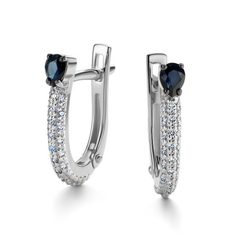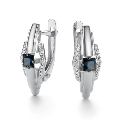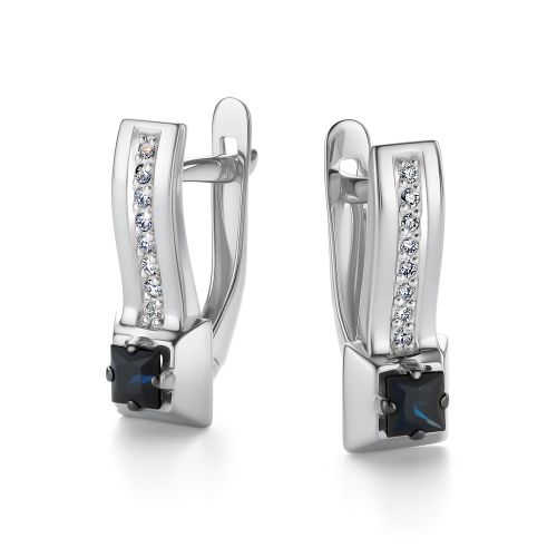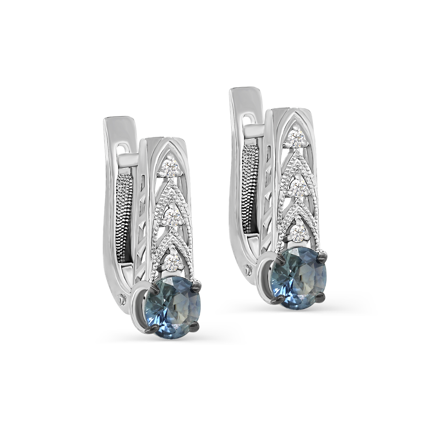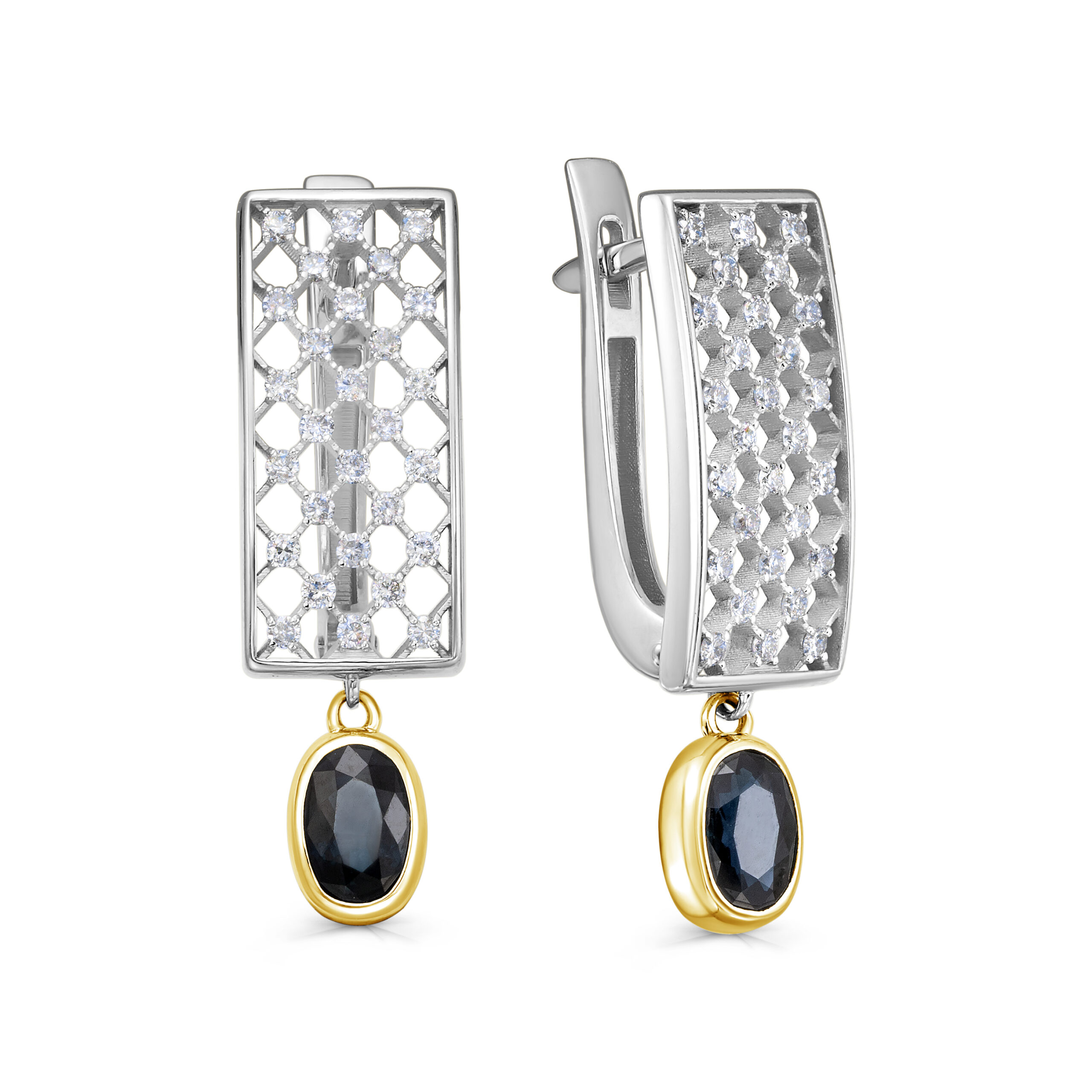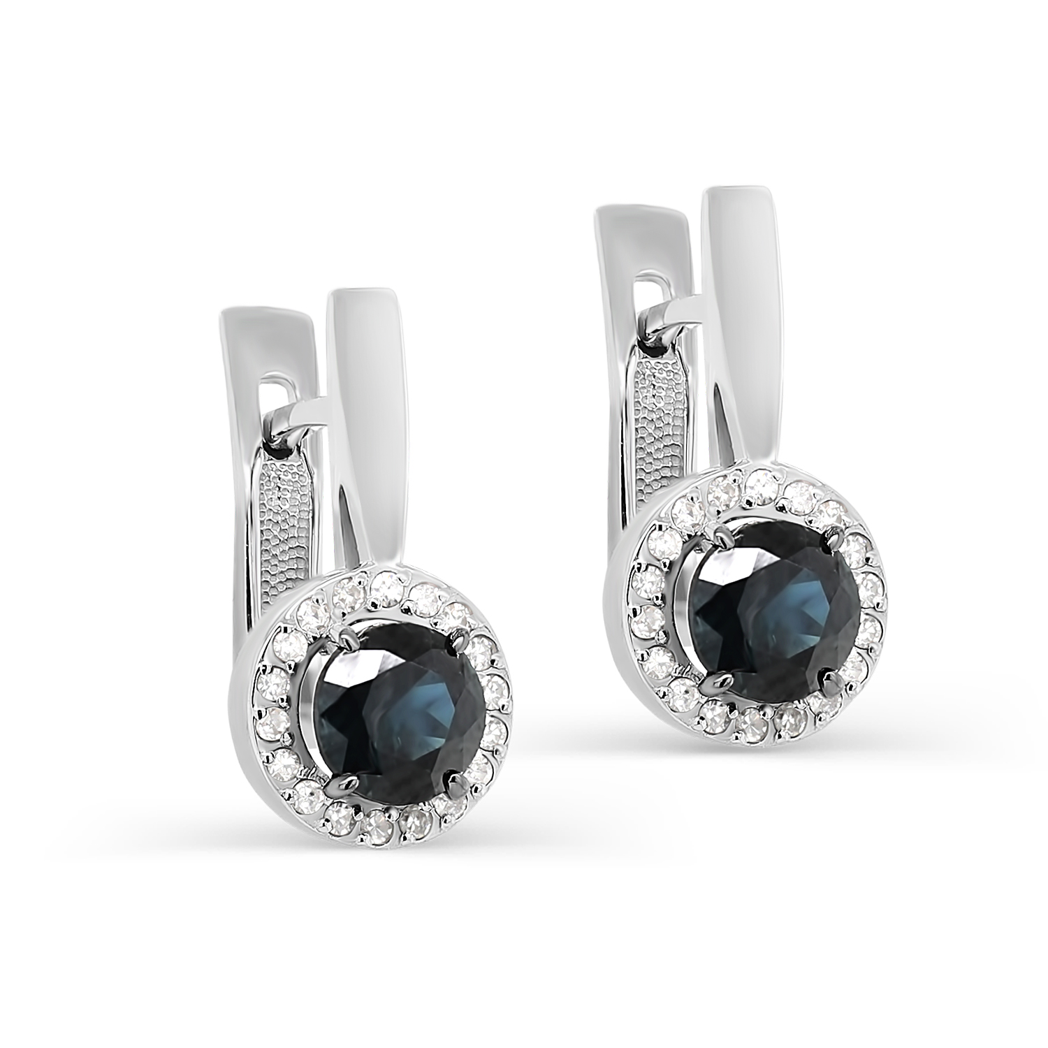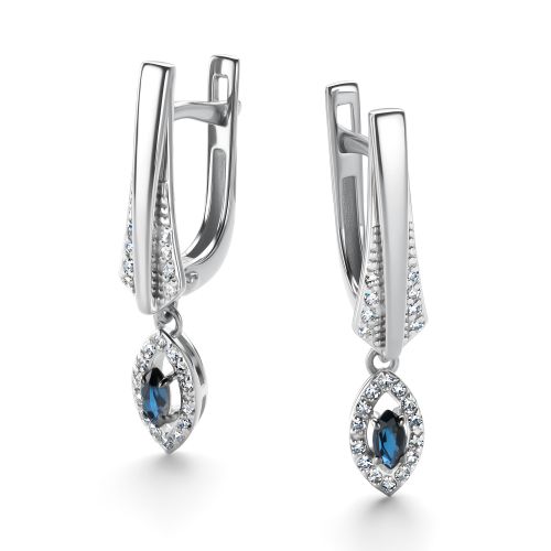 Серьги с английским замком из белого золота с бриллиантами и сапфирами