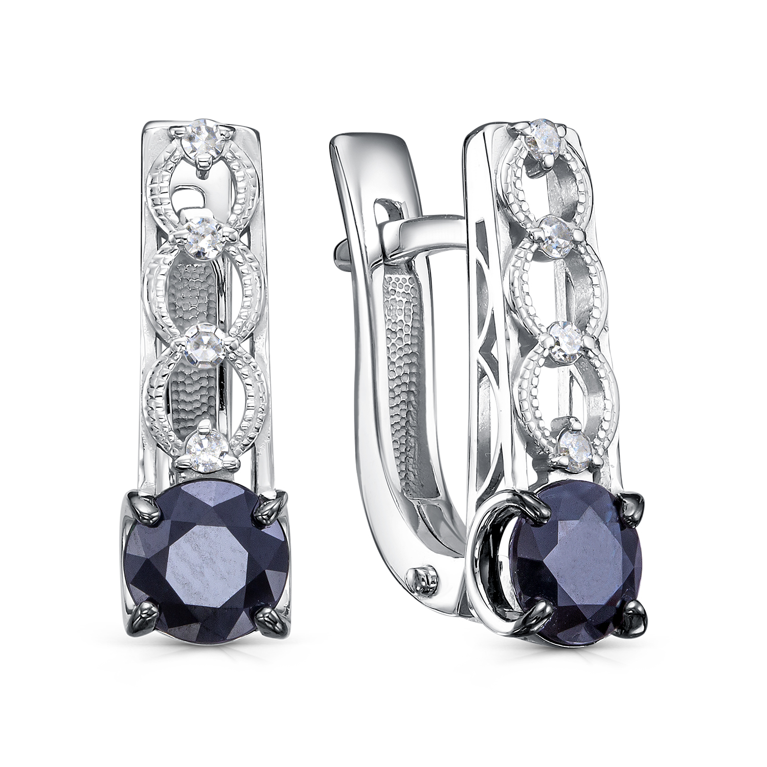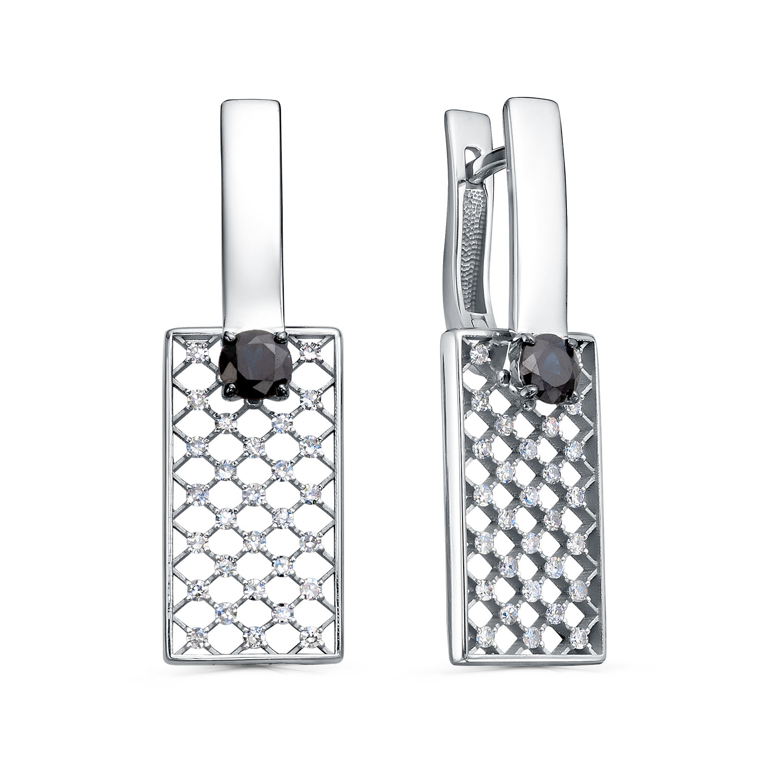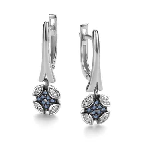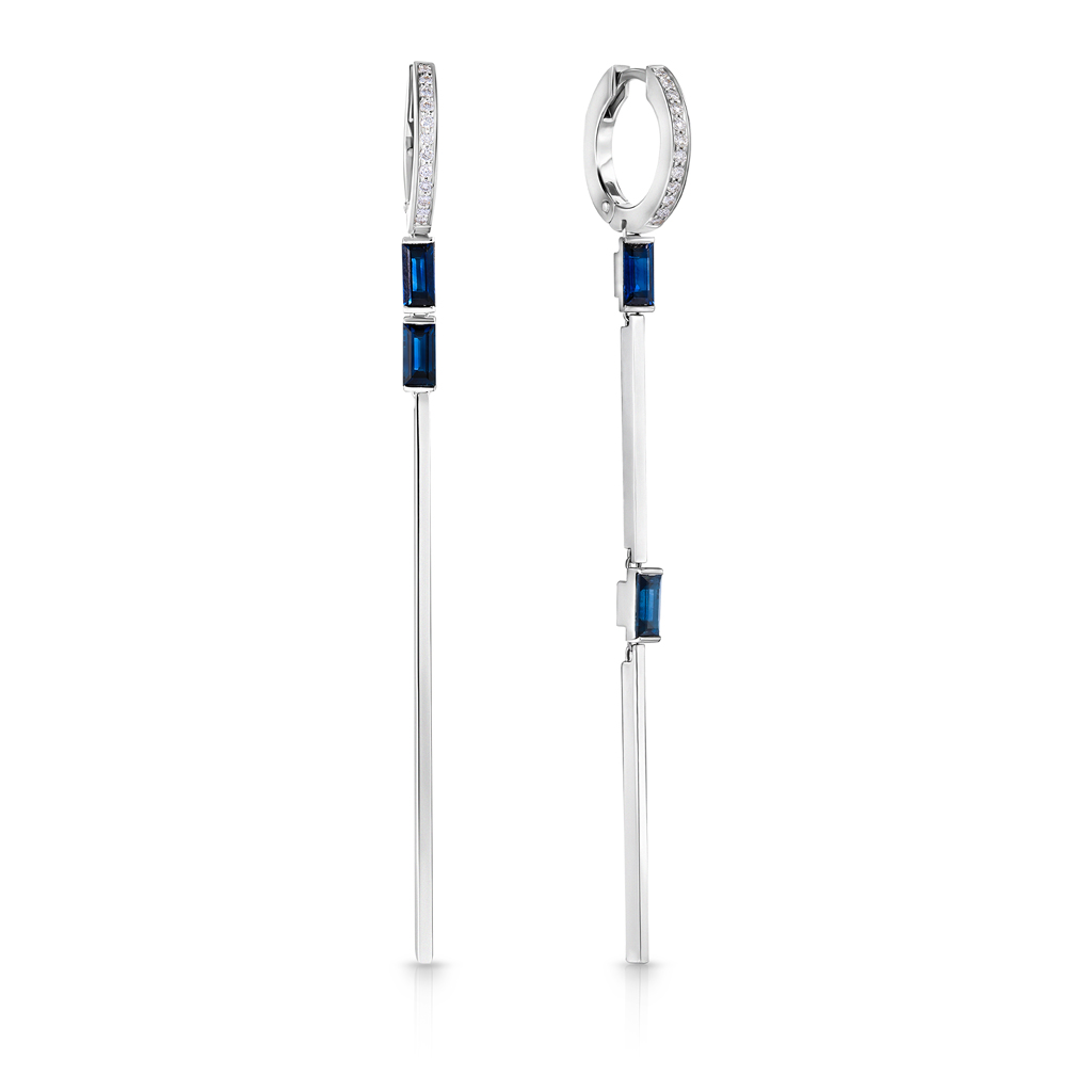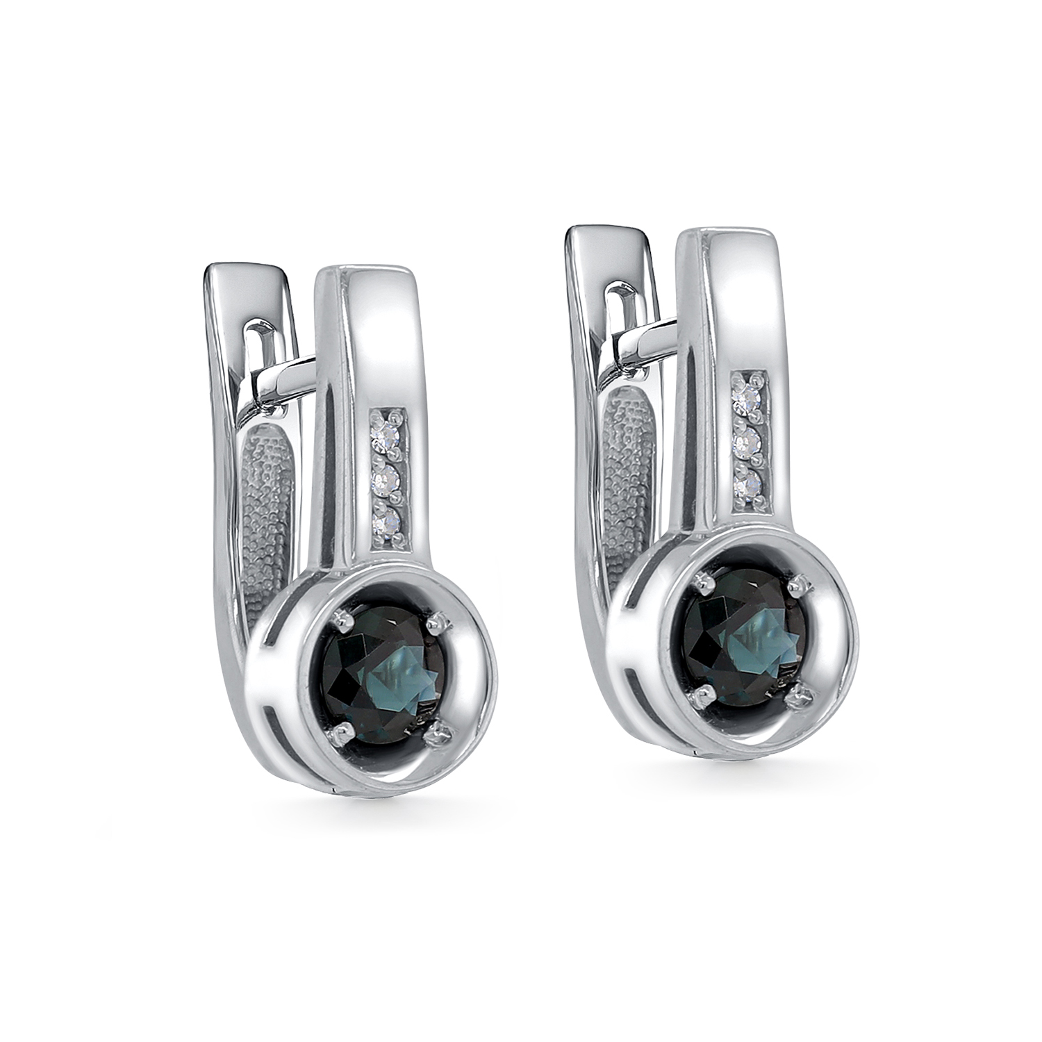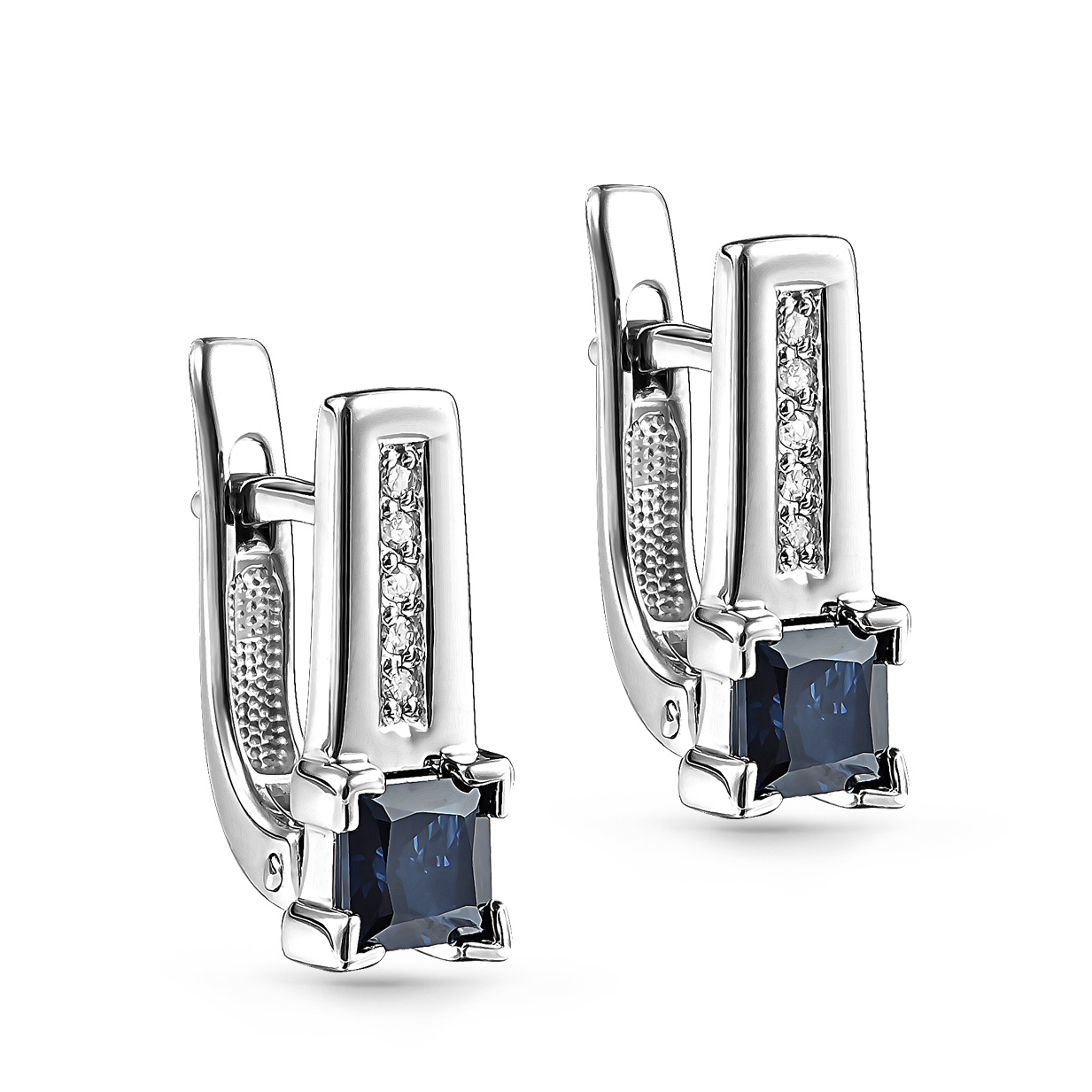 Серьги с английским замком из белого золота с бриллиантами и сапфирами