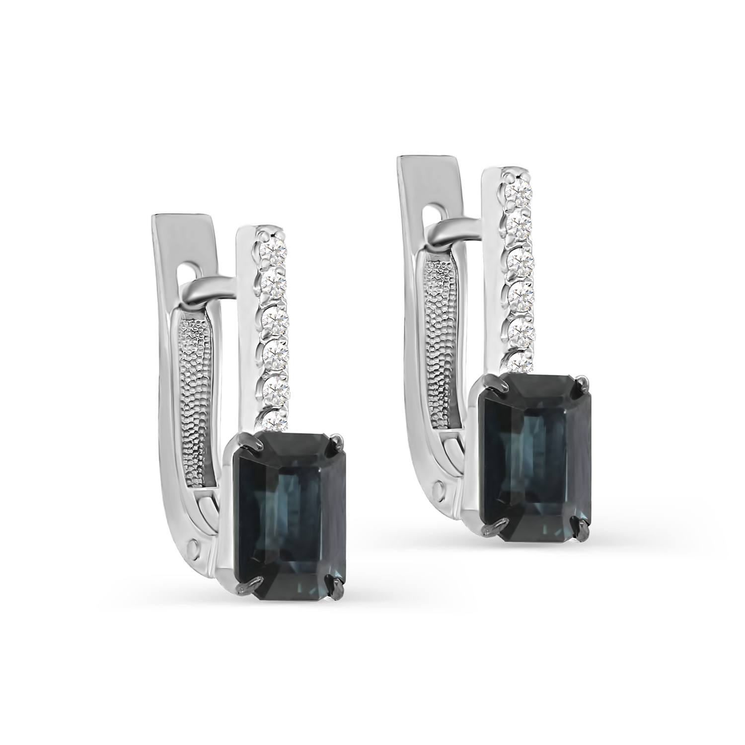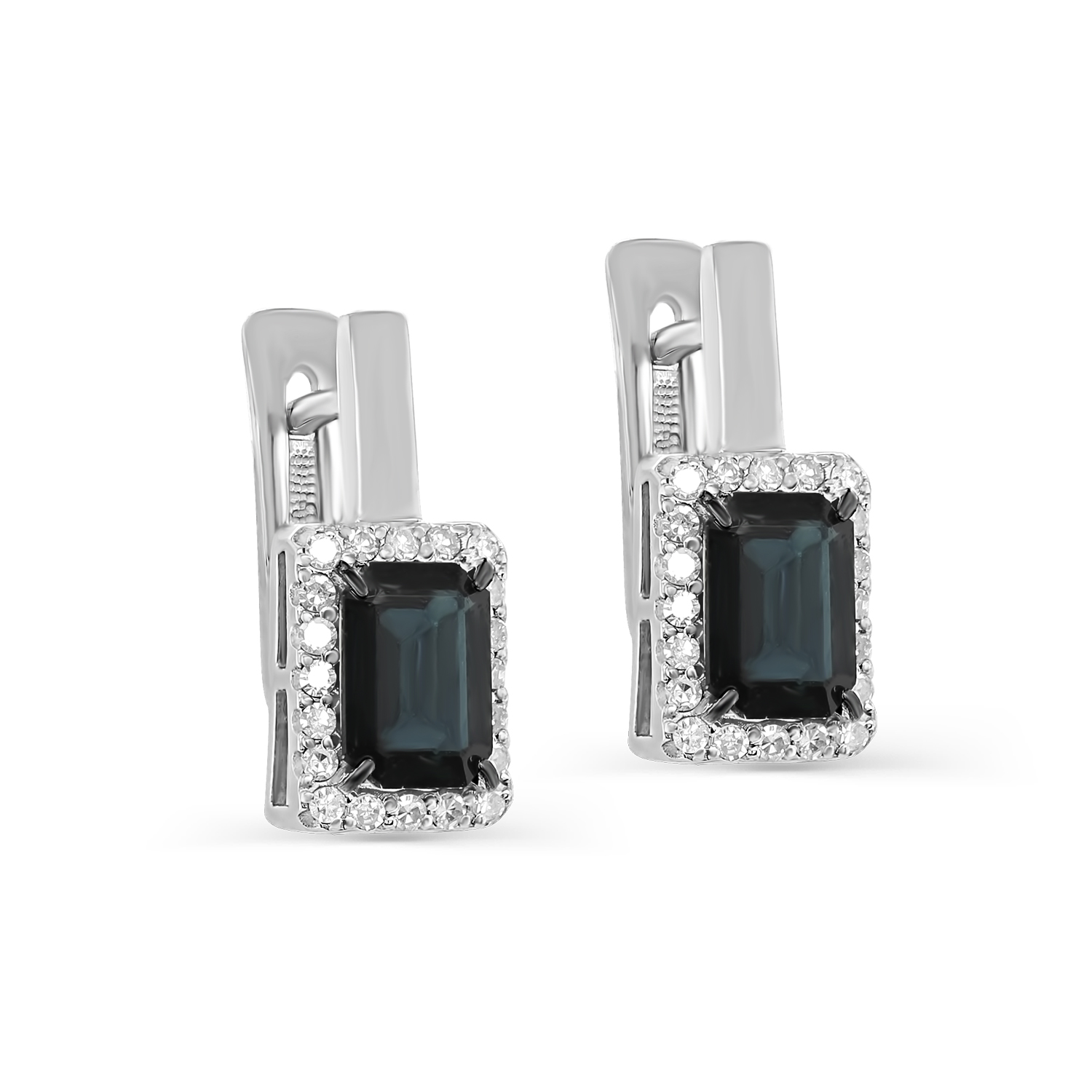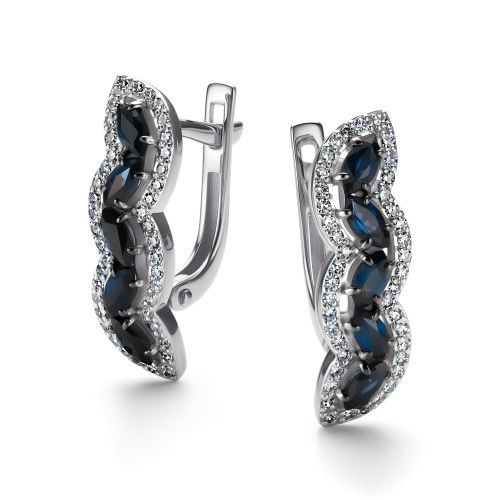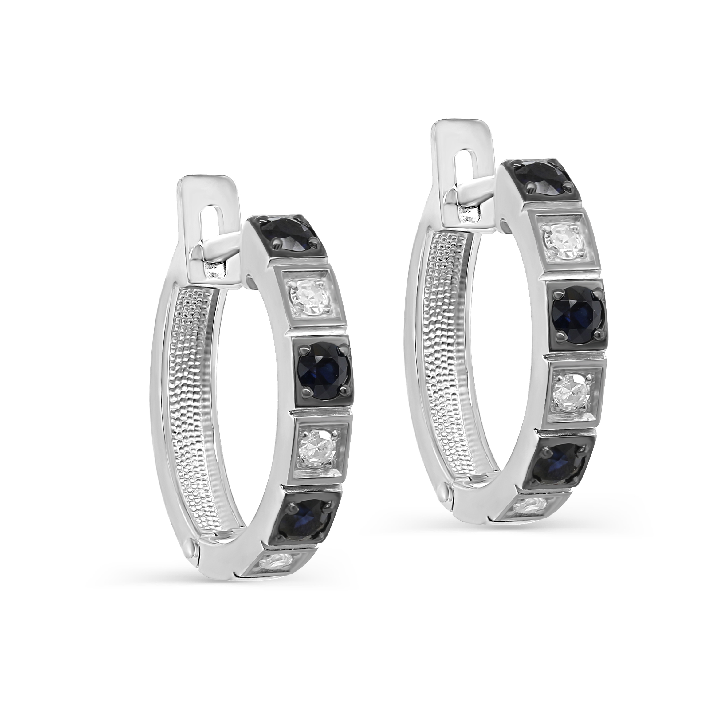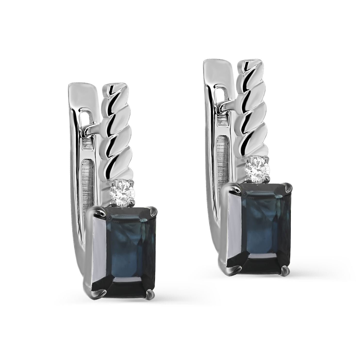 Серьги с итальянским замком из белого золота с бриллиантами, сапфирами