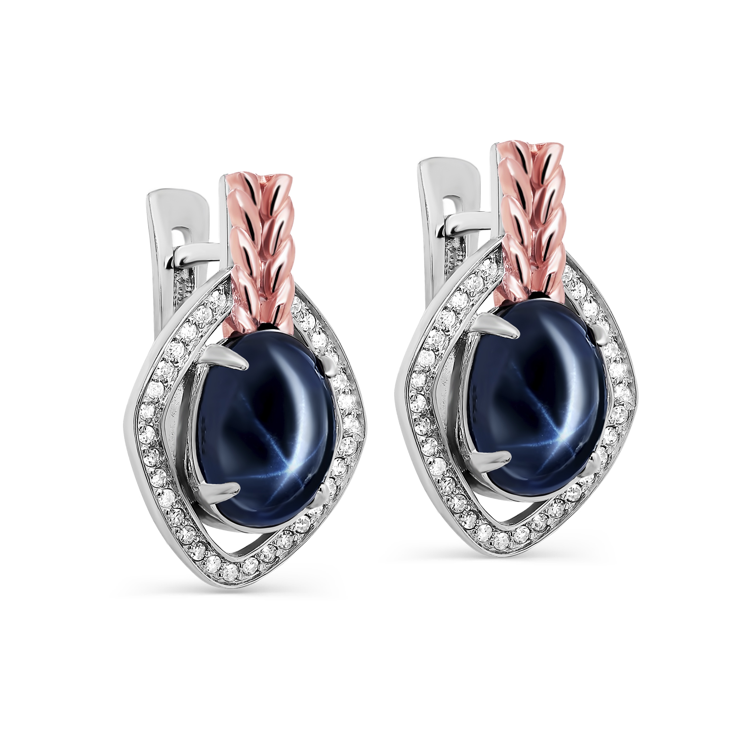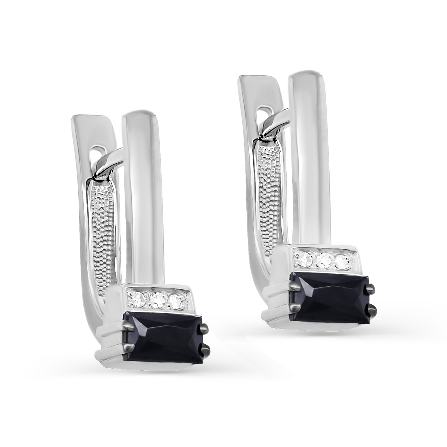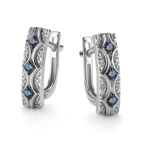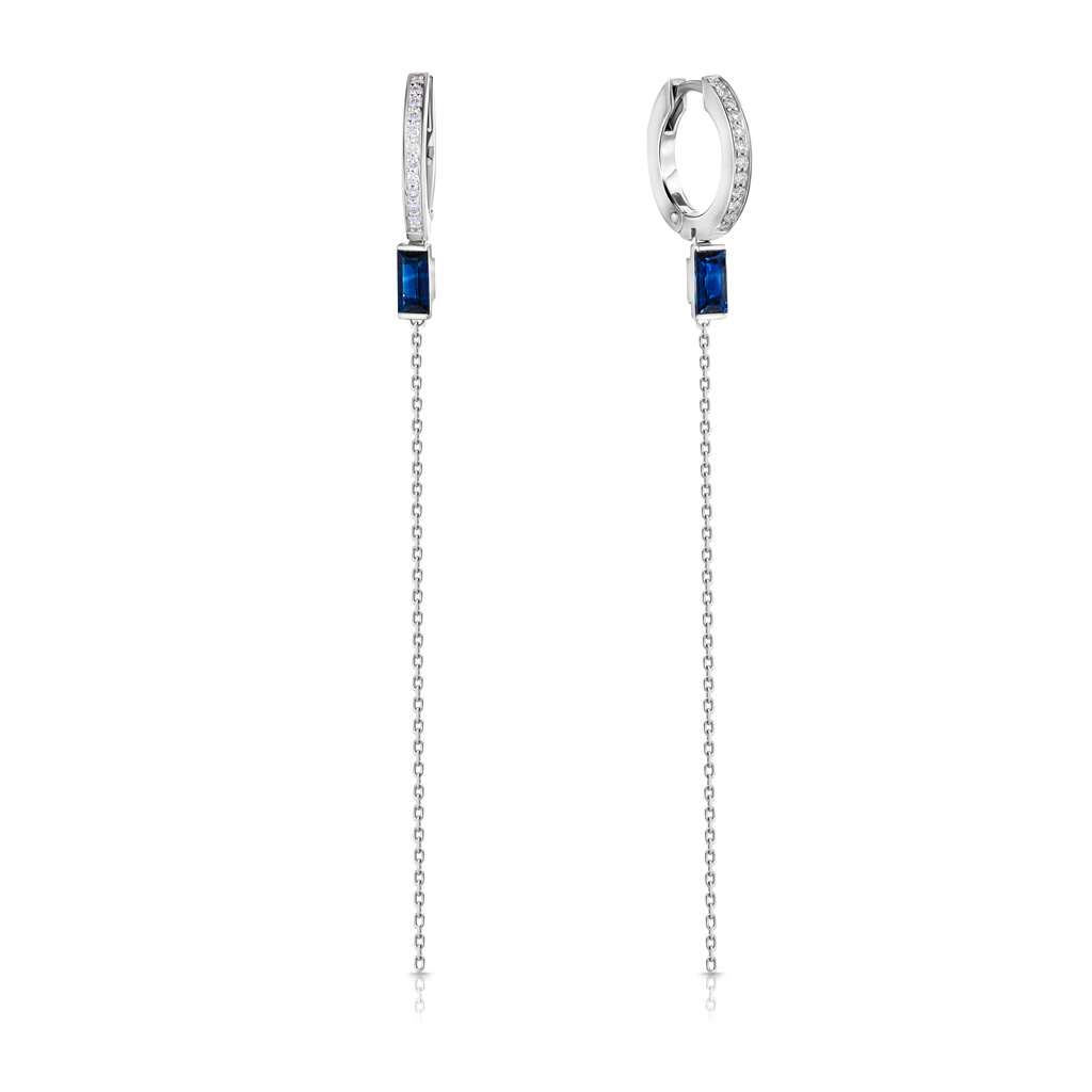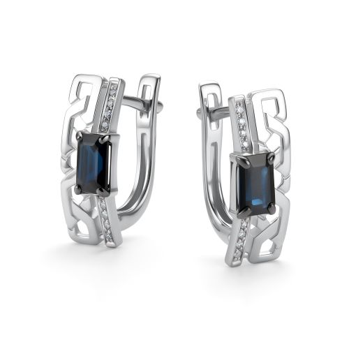 Серьги с итальянским замком из белого золота с бриллиантами, сапфирами