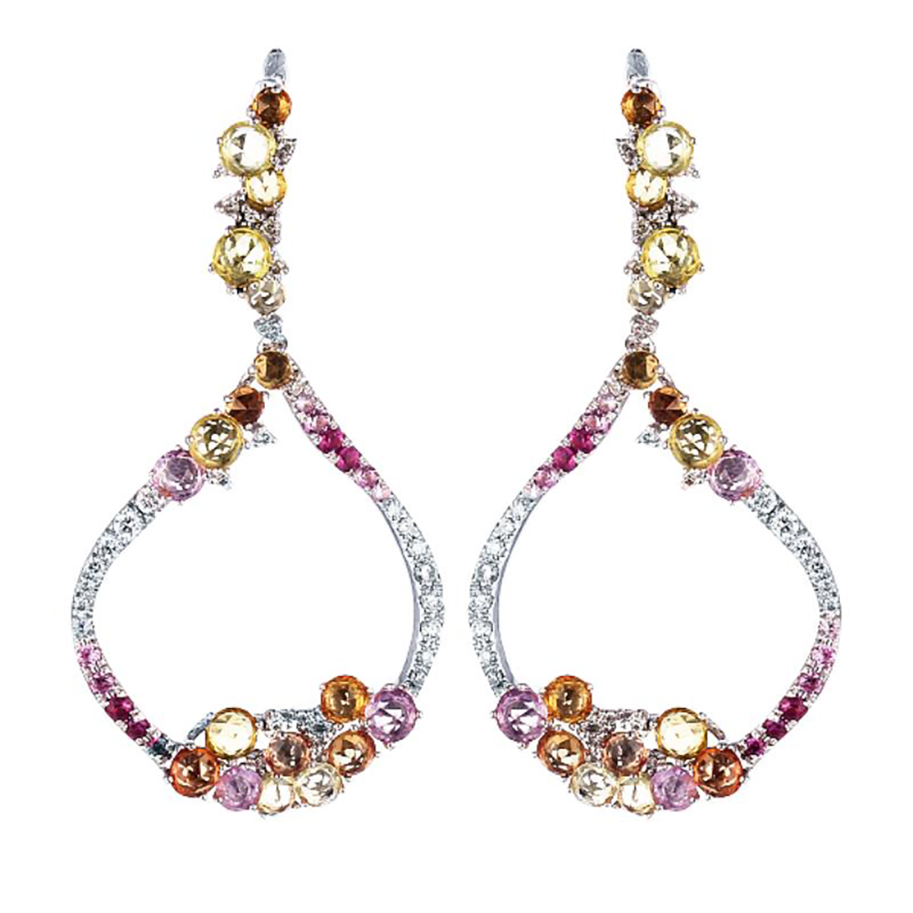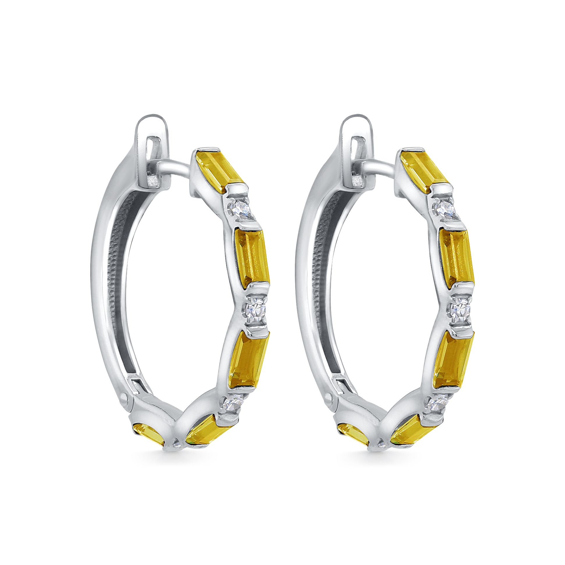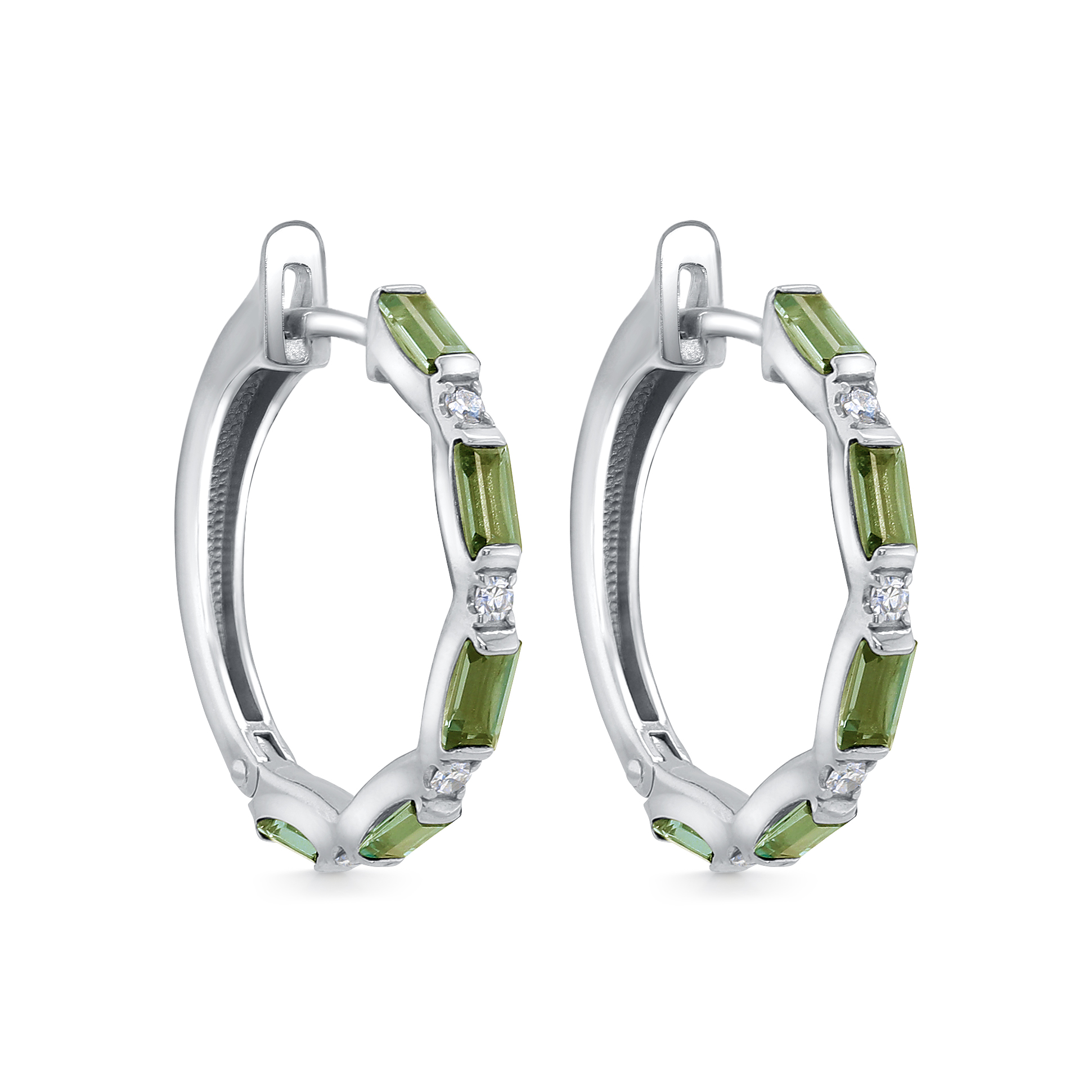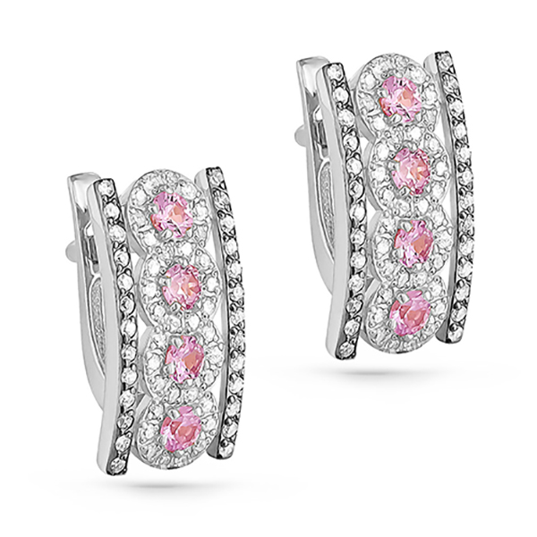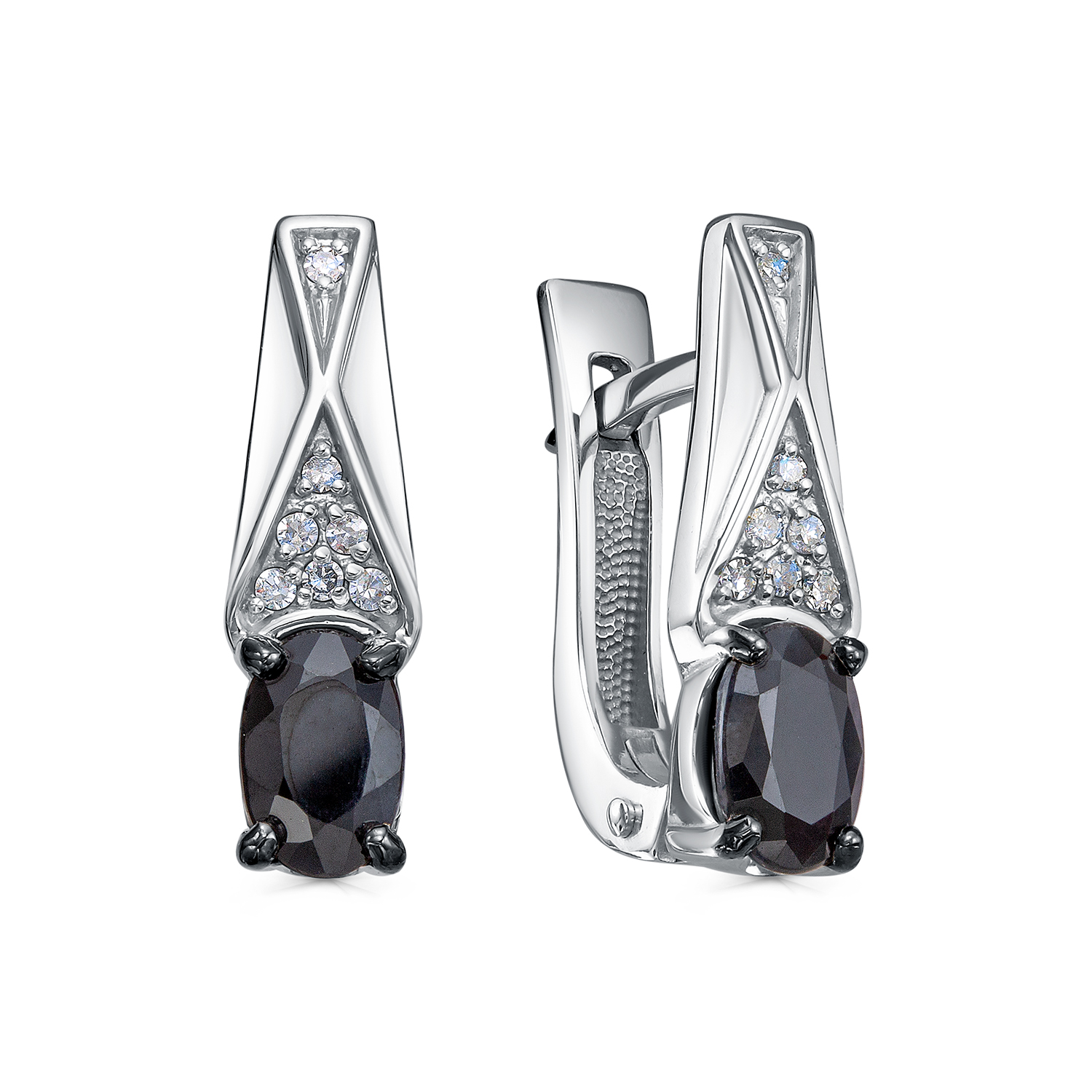 Серьги с итальянским замком из белого золота с бриллиантами, сапфирами
