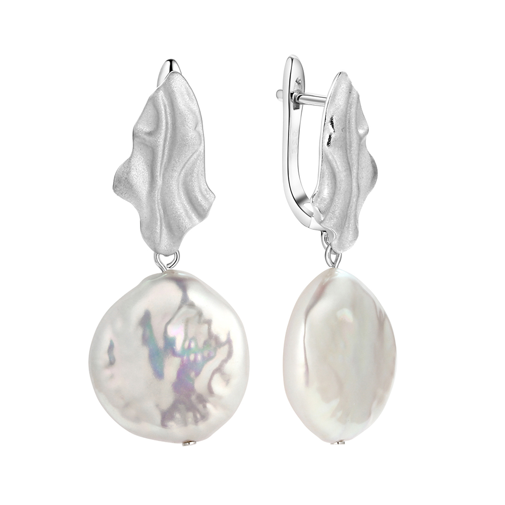 Серьги с английским замком из серебра с жемчугом, фианитом