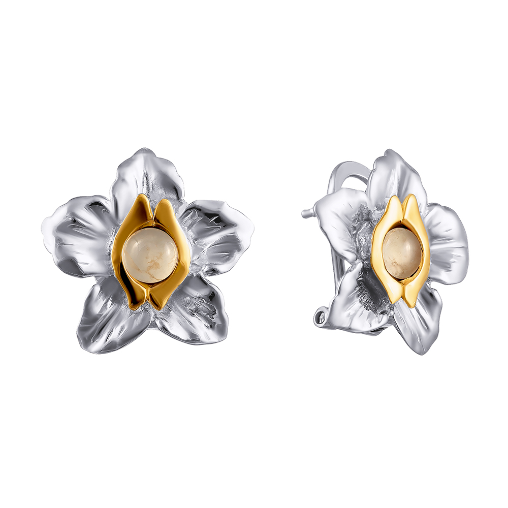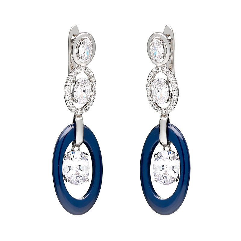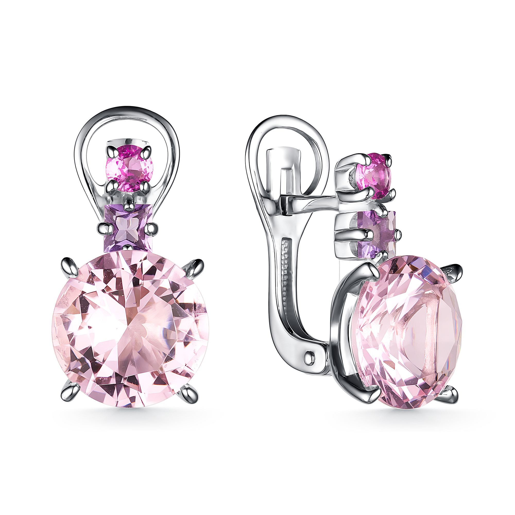 Серьги с английским замком из серебра с керамиками, кварцами и циркониями