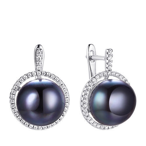Серьги с английским замком из серебра с фианитами, жемчугами