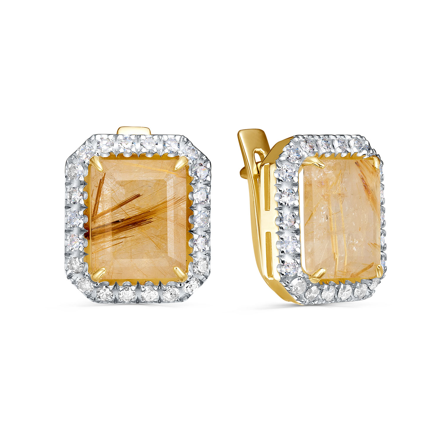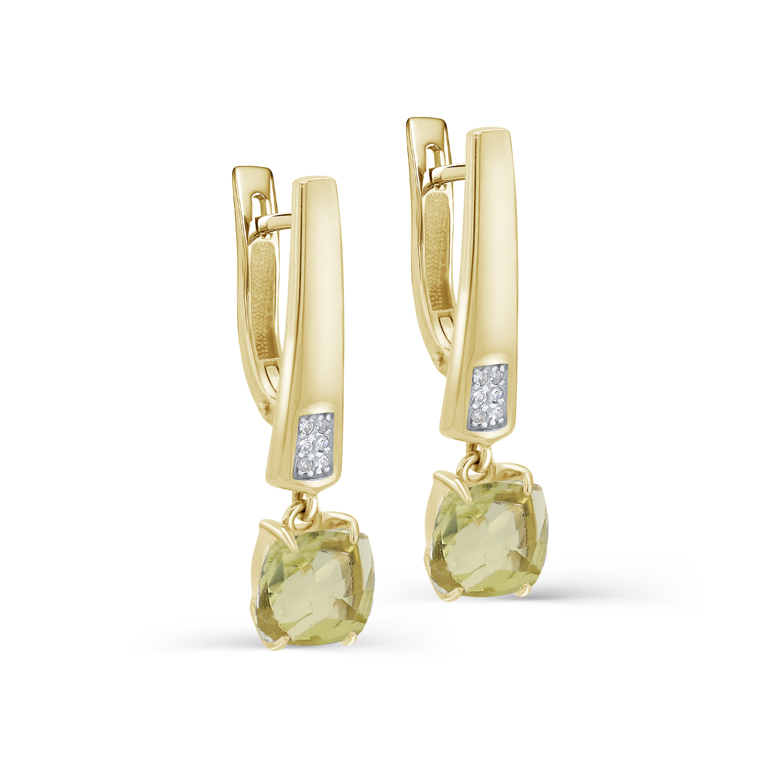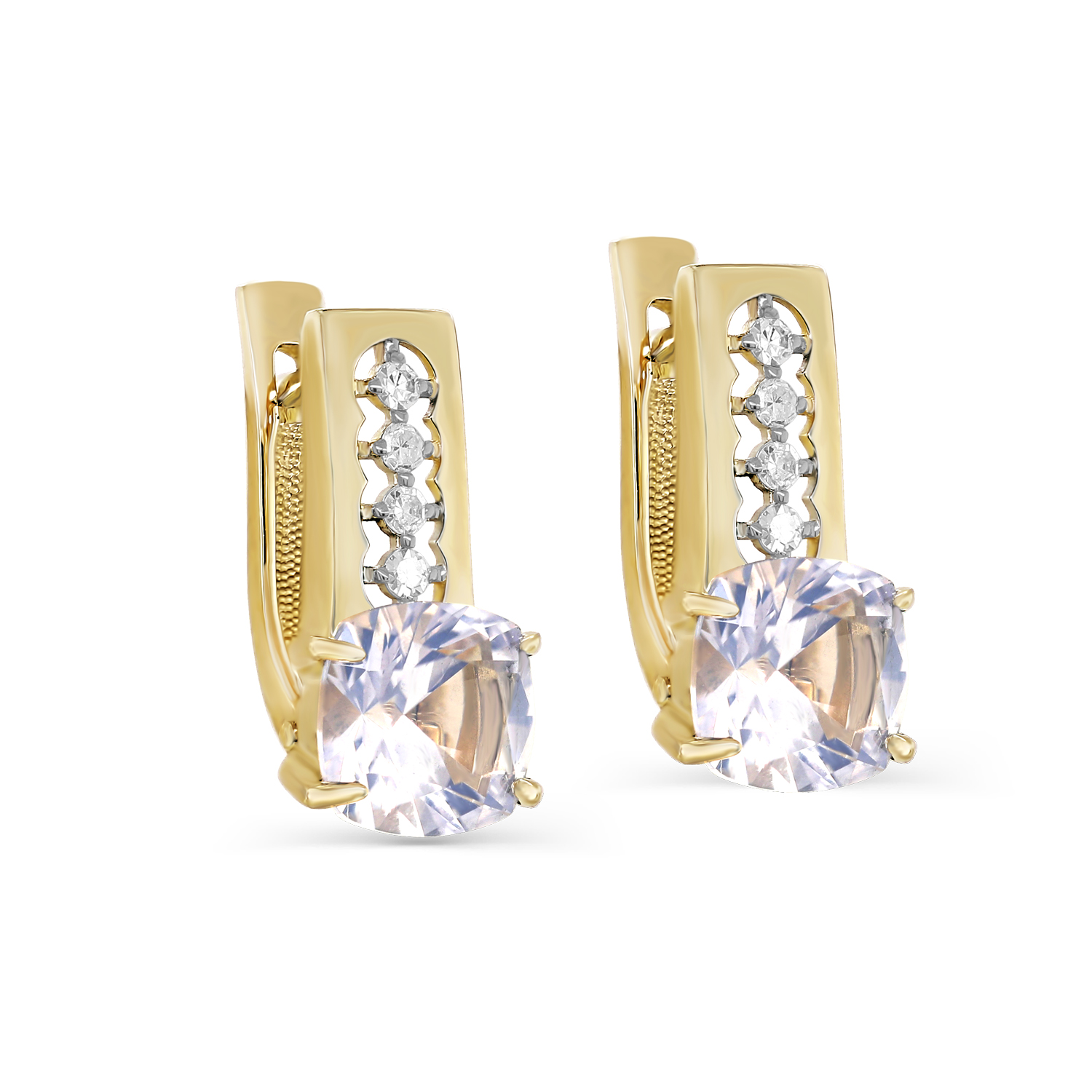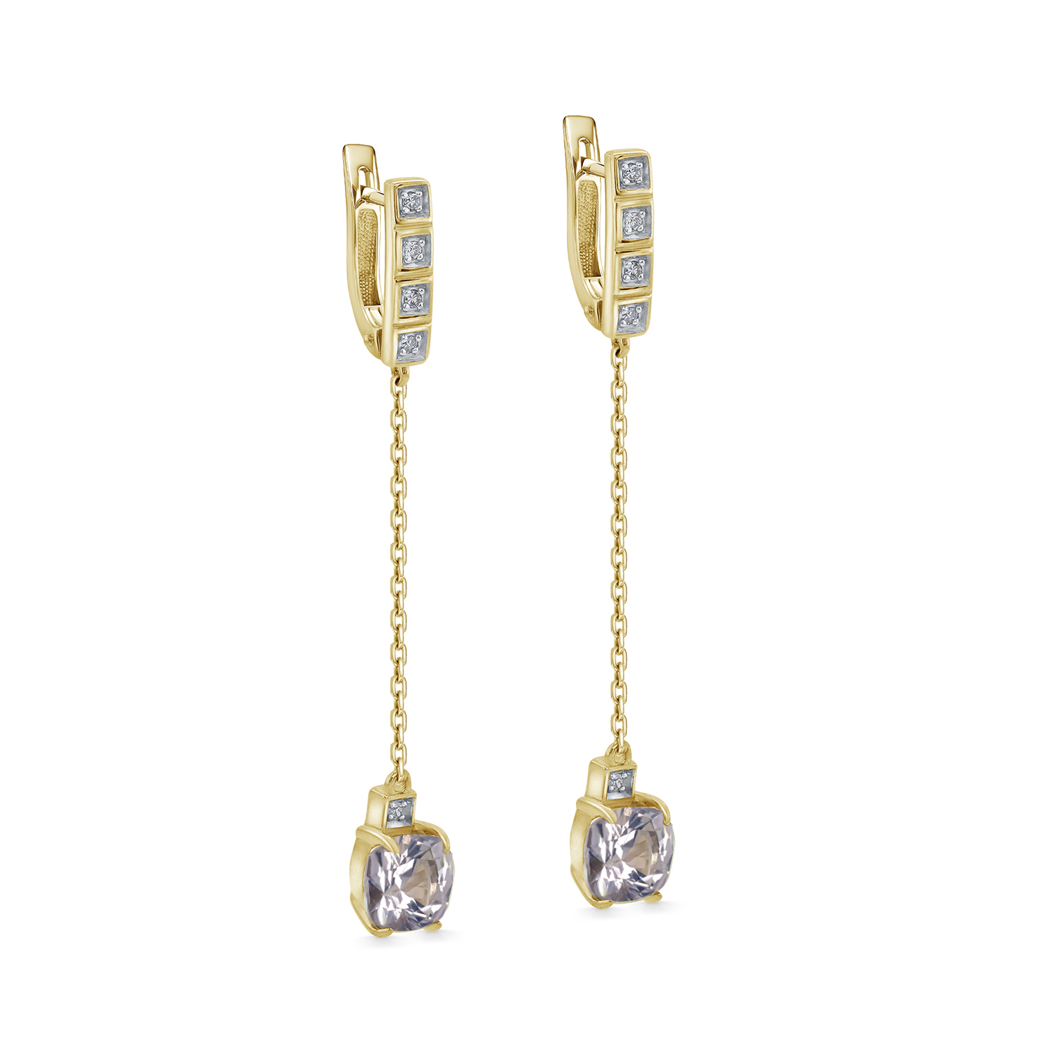 Серьги с английским замком из желтого золота с бриллиантами, кварцами