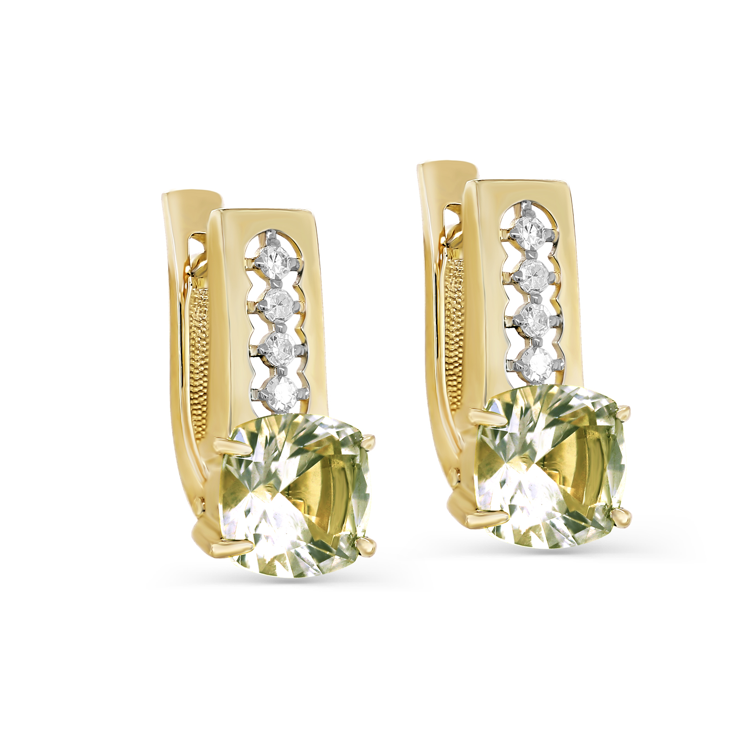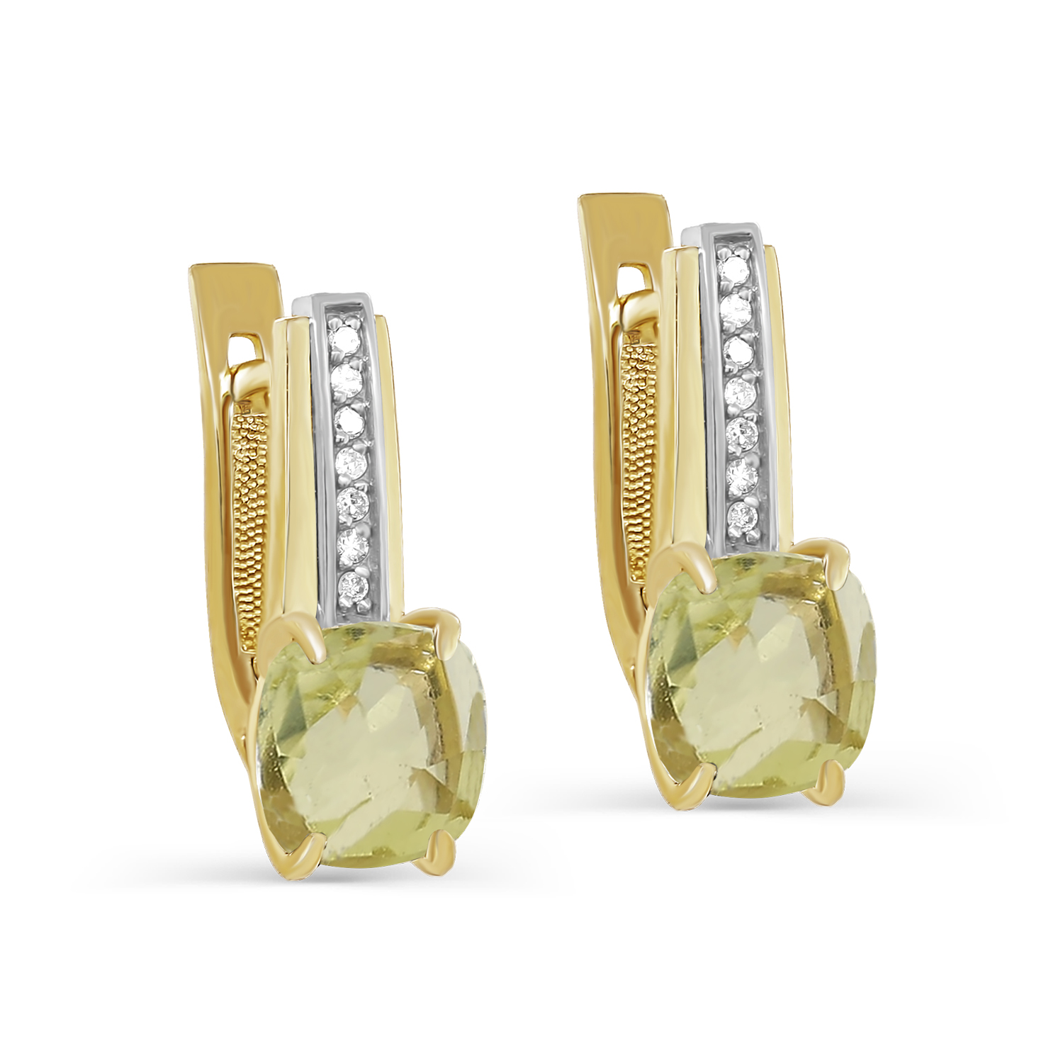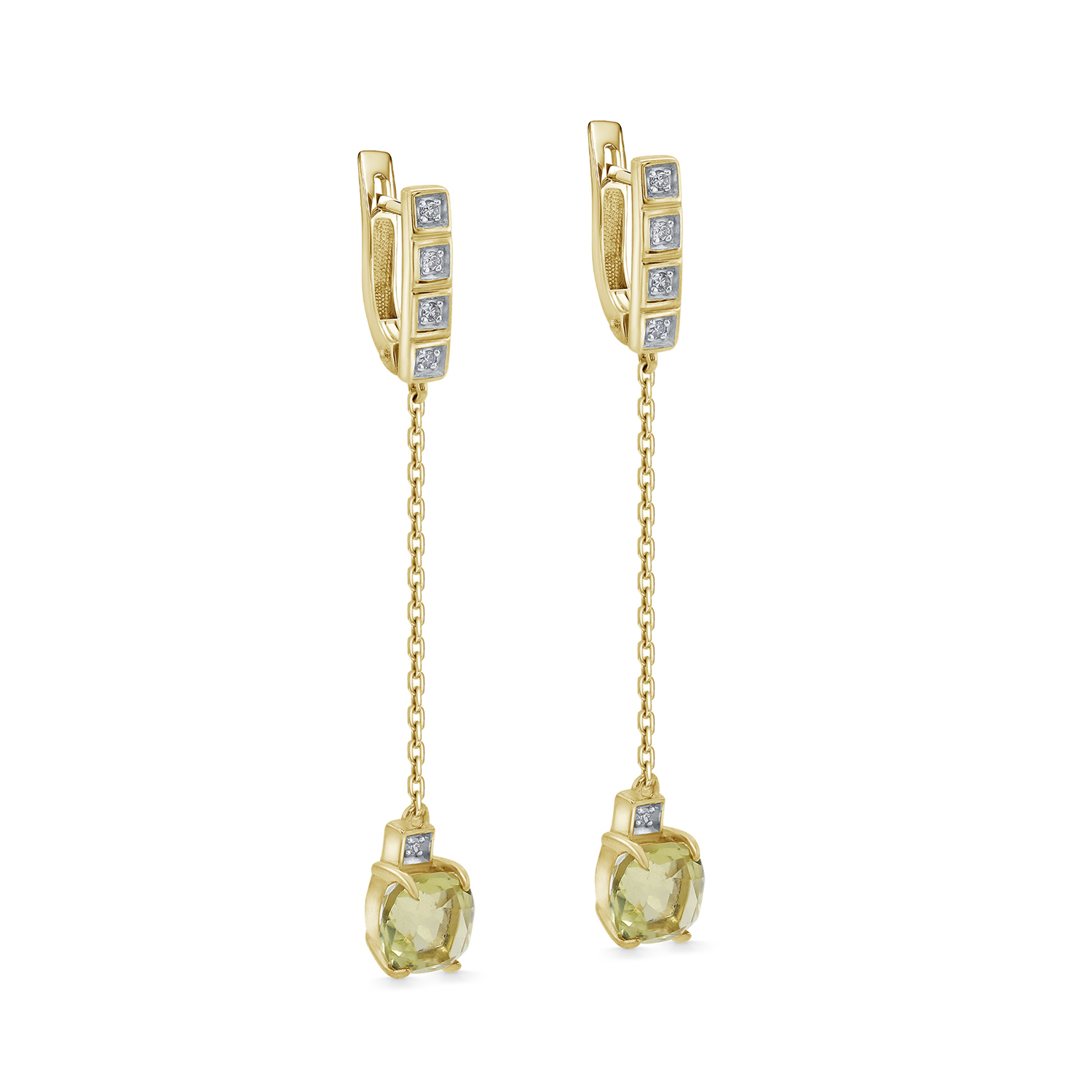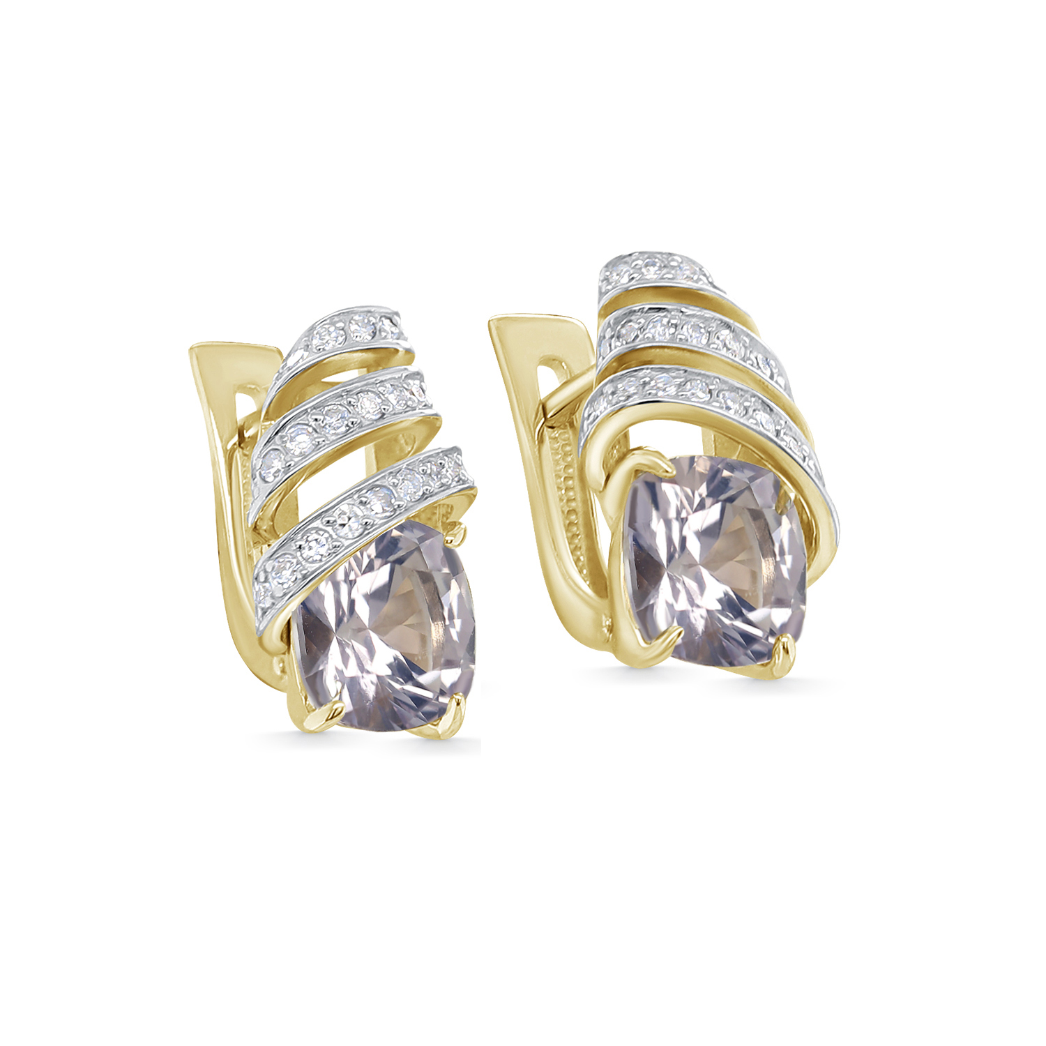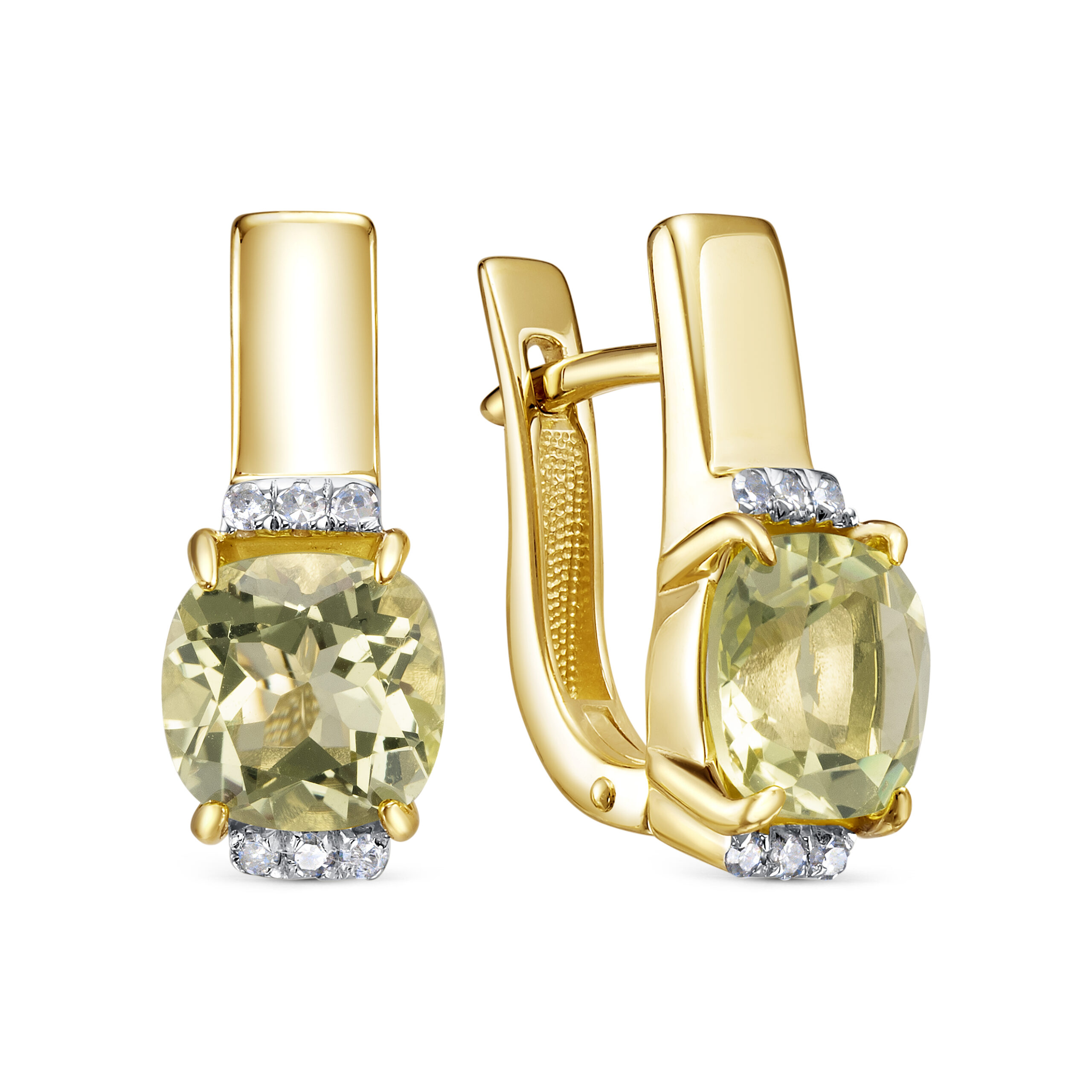 Серьги с английским замком из желтого золота с бриллиантами, кварцами