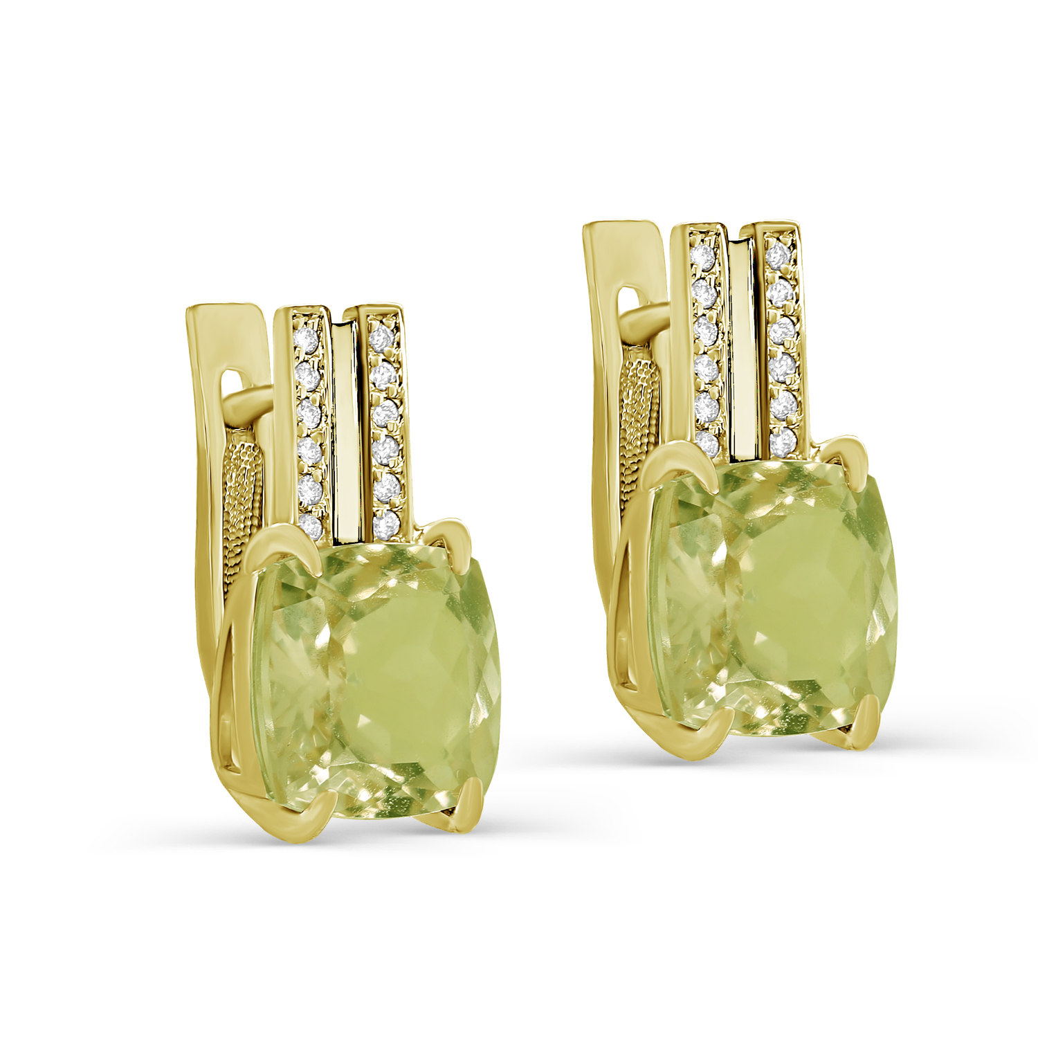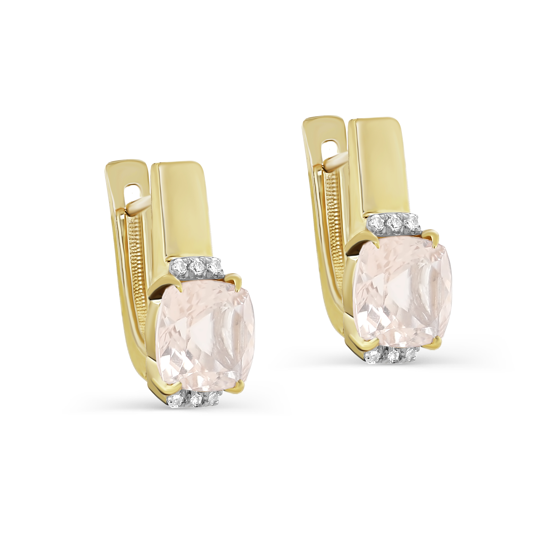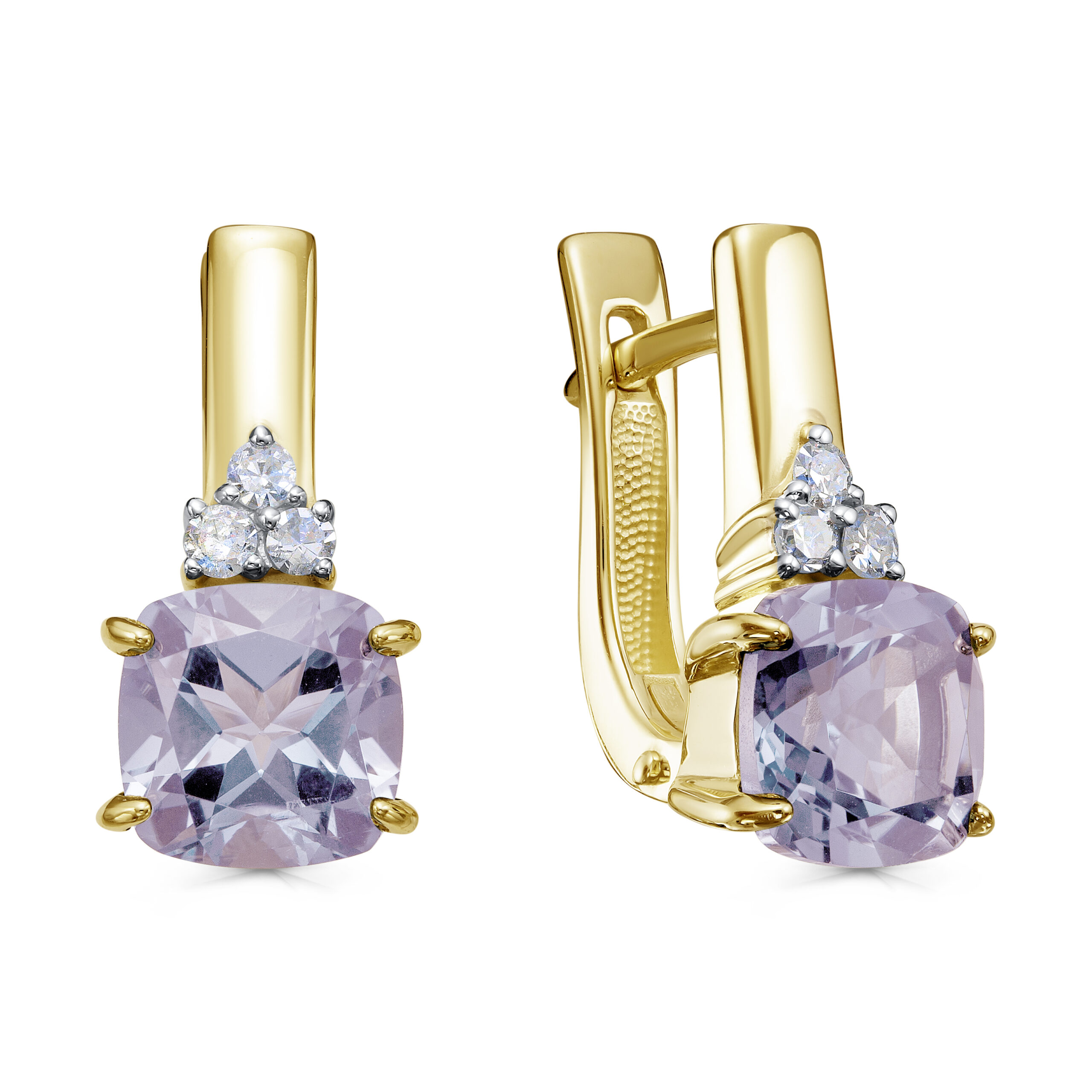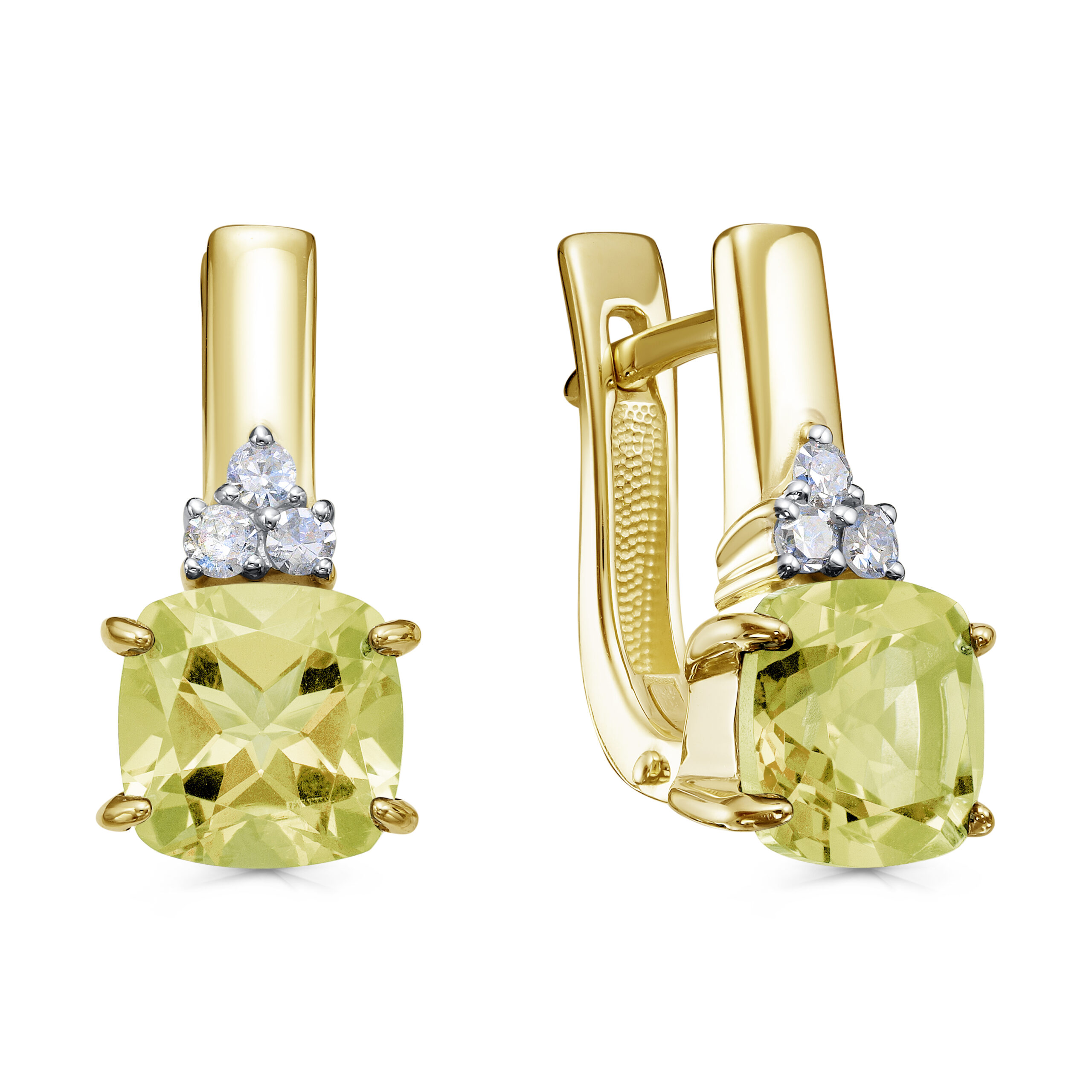 Серьги с английским замком из желтого золота с бриллиантами, кварцами