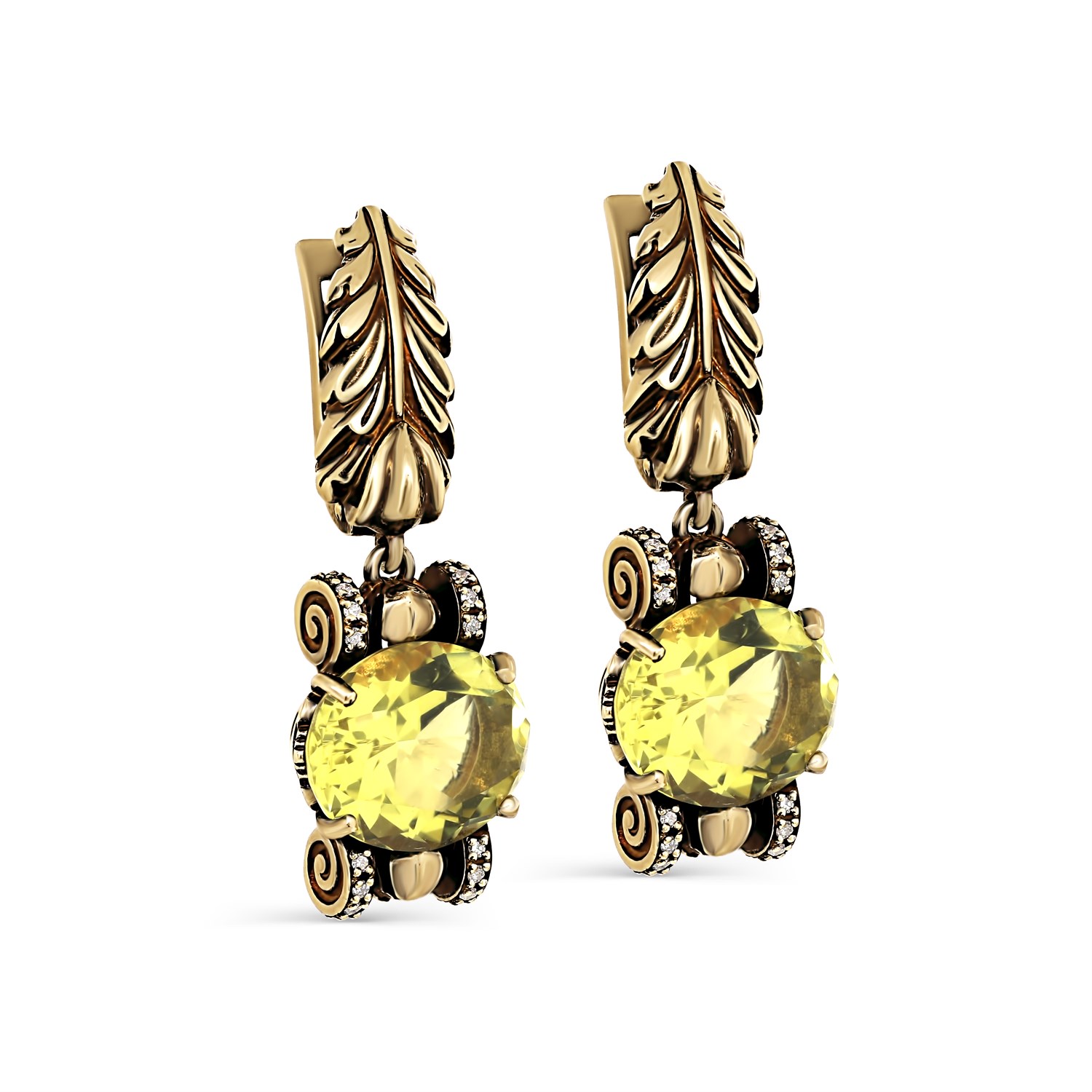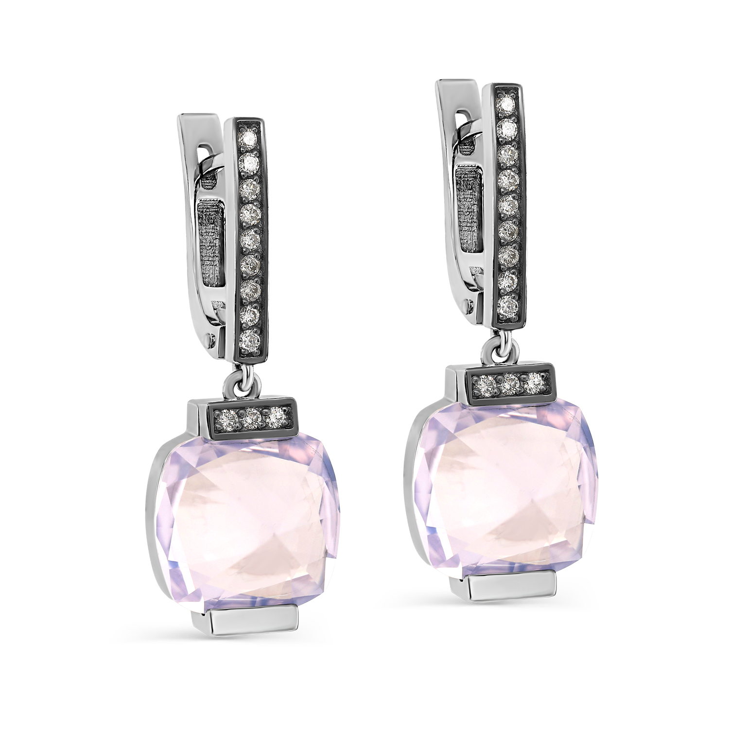Серьги с кварцем и бриллиантами