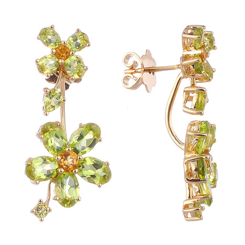 Пусеты из желтого золота с перидотами, цитринами