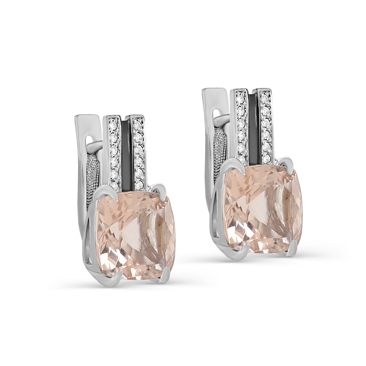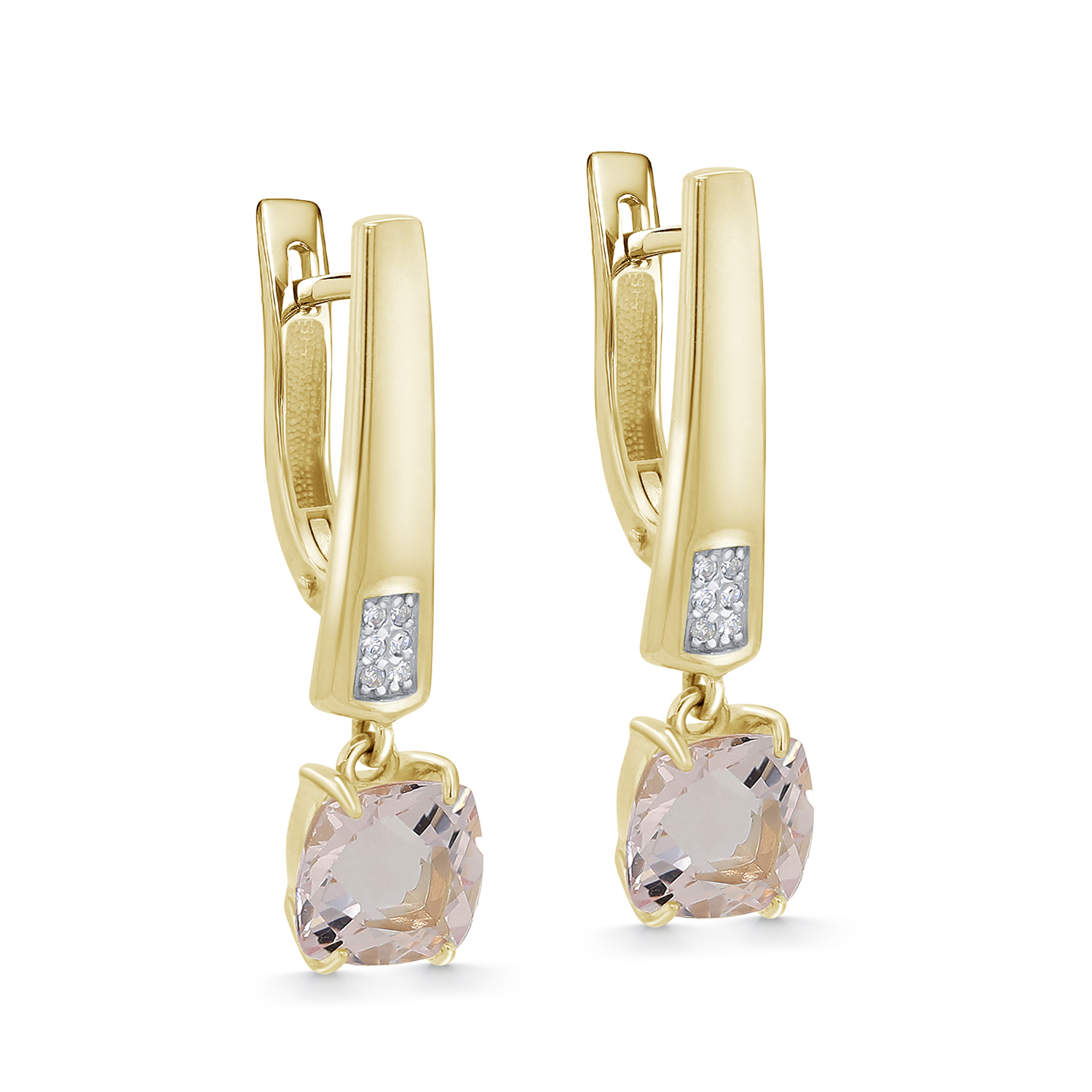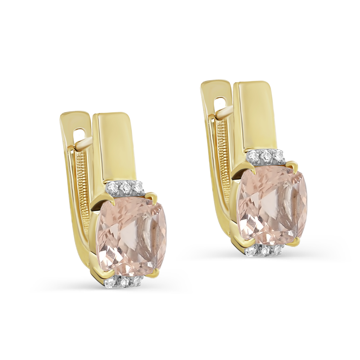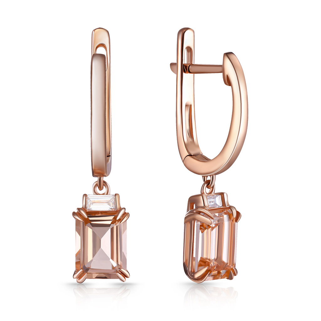 Серьги с английским замком из красного золота с бриллиантами и морганитами