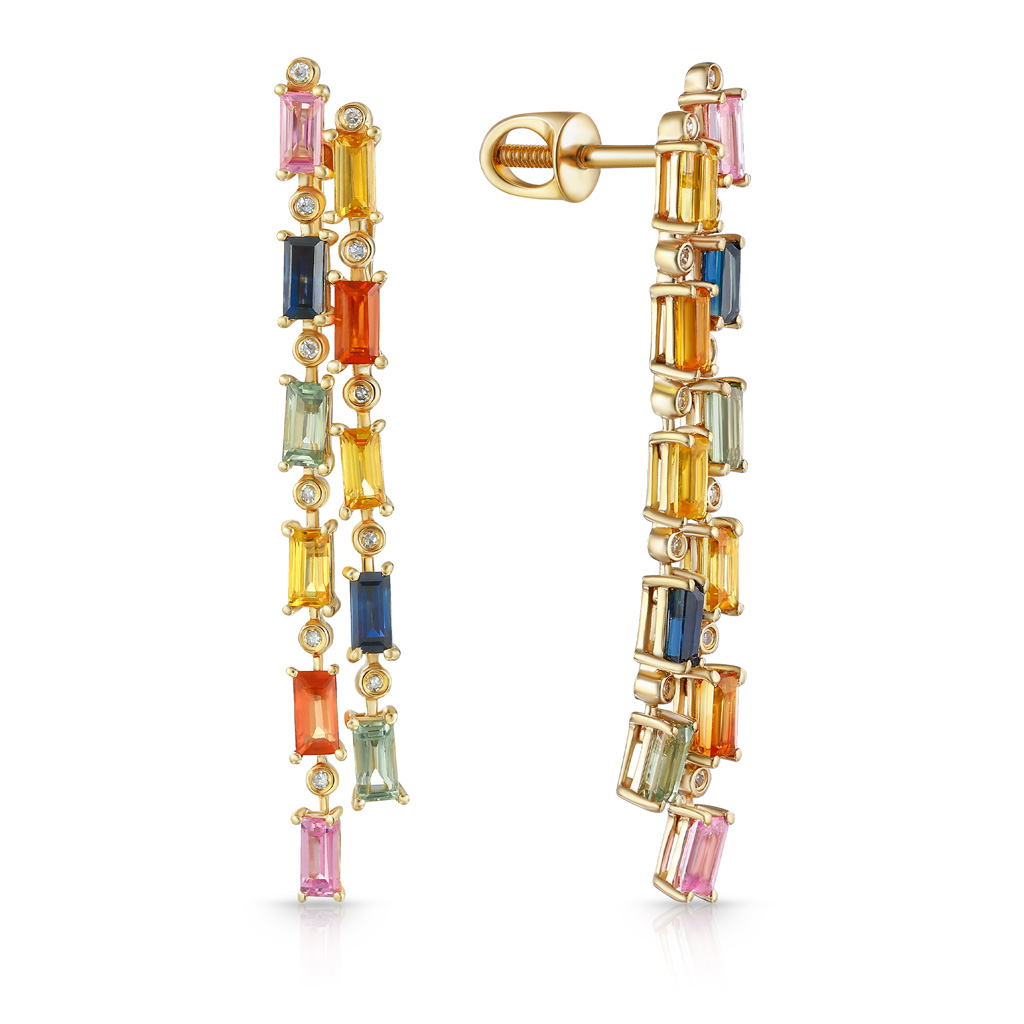 Серьги из красного золота с сапфирами, топазами, аметистами