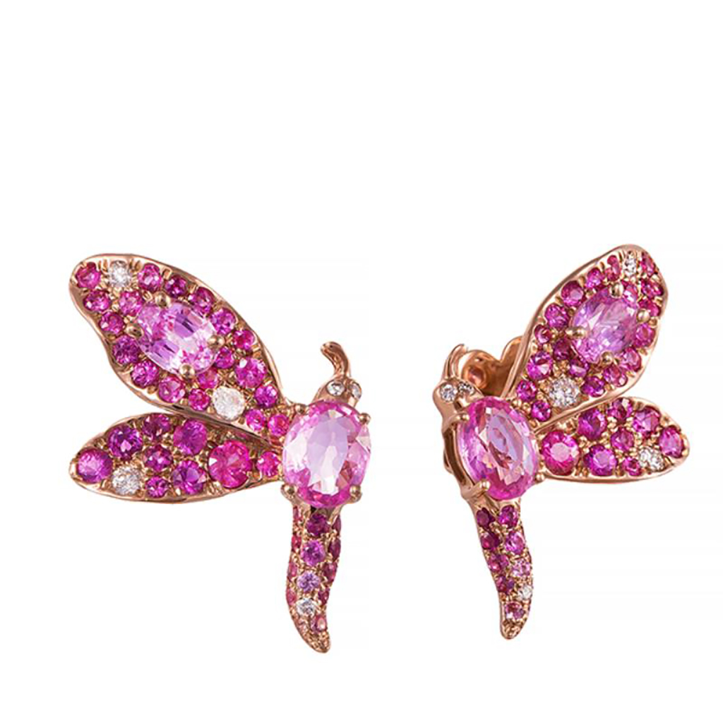 Серьги из красного золота с бриллиантами, сапфирами, кварцами