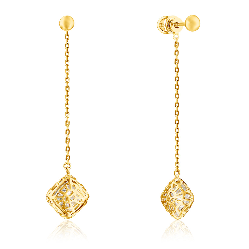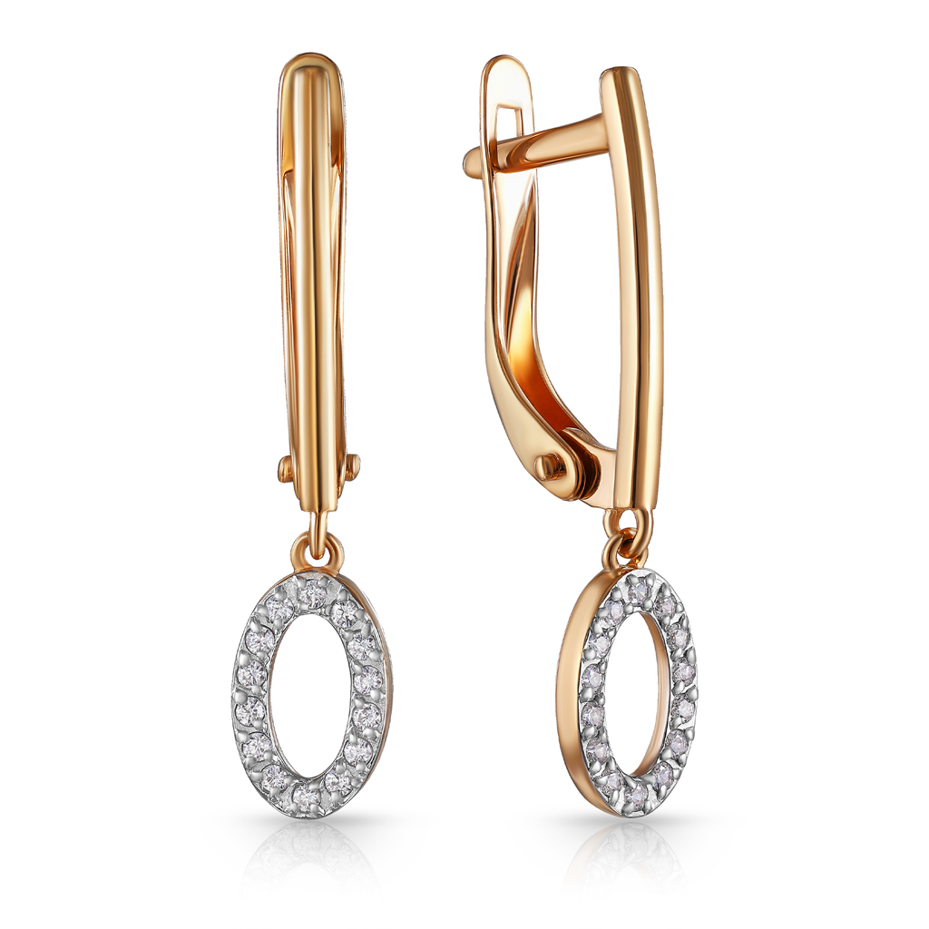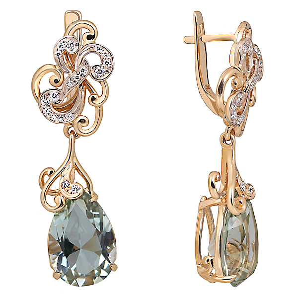 Серьги с английским замком из красного золота с кварцом и фианитом