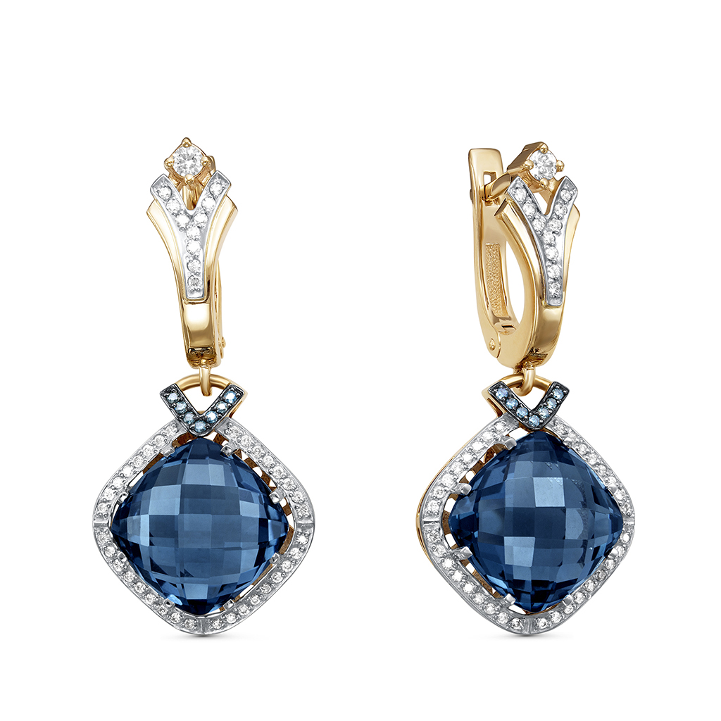 Серьги с английским замком из комбинированного золота с бриллиантами, топазами
