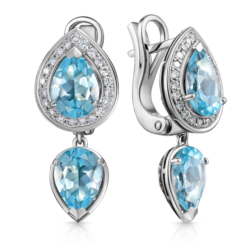 Серьги из белого золота с бриллиантами, топазом