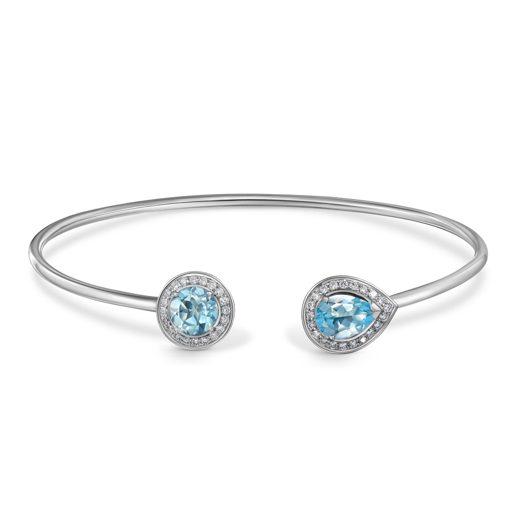 Браслет жесткий из белого золота с топазом, бриллиантами