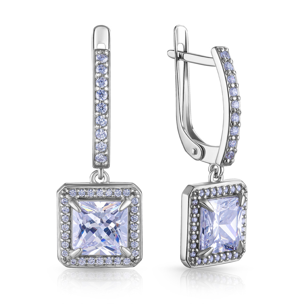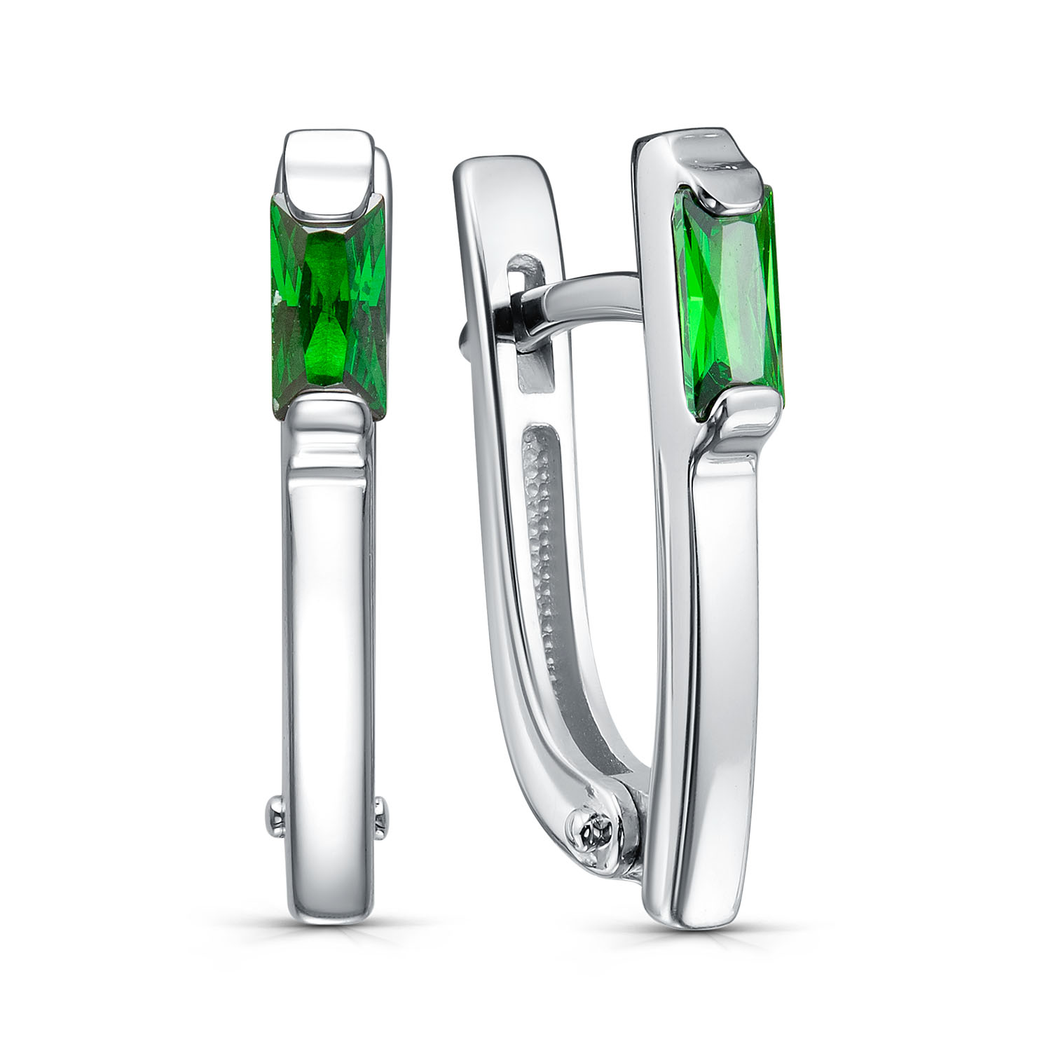 Серьги с английским замком из серебра с жадеитом, фианитом