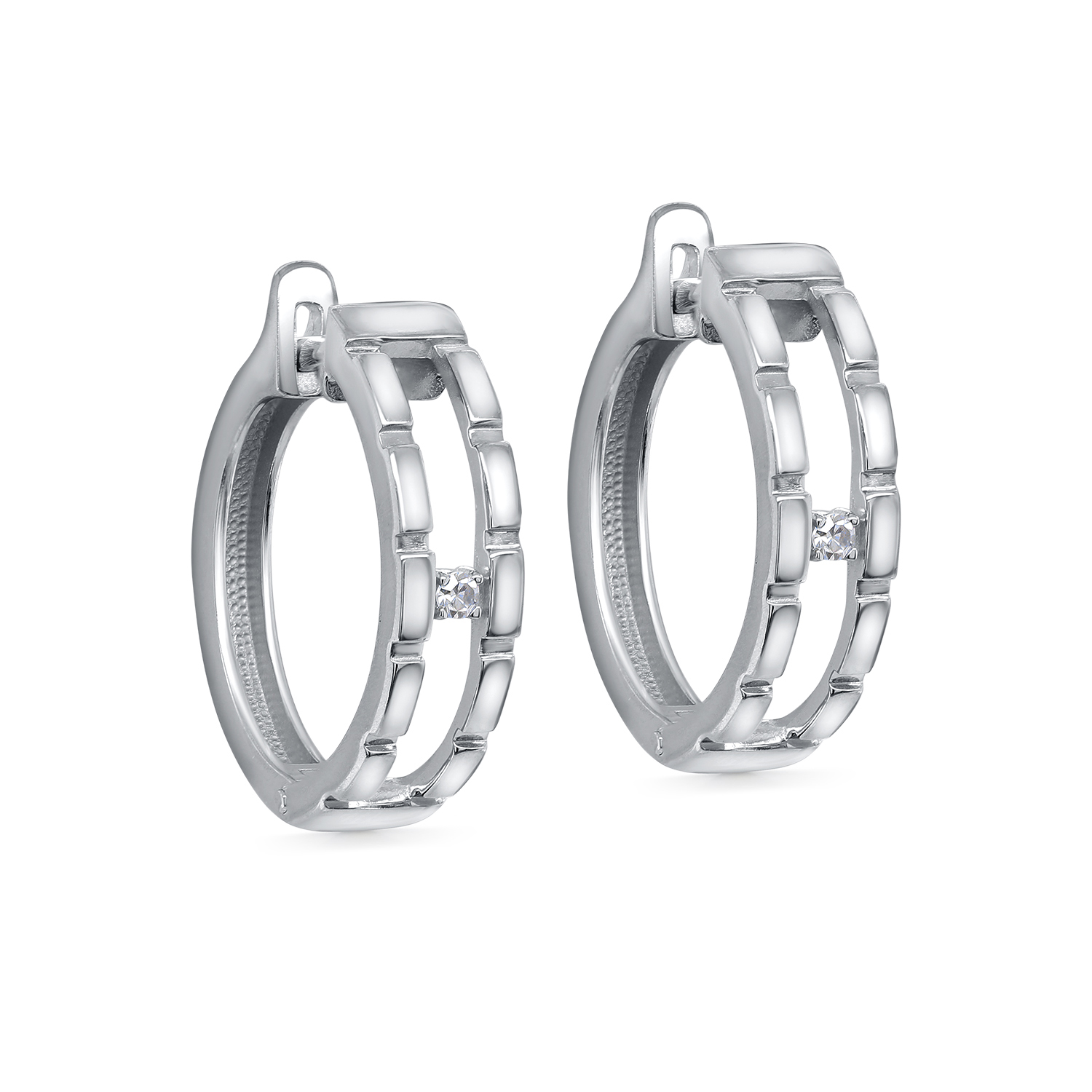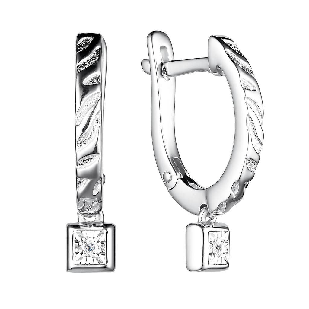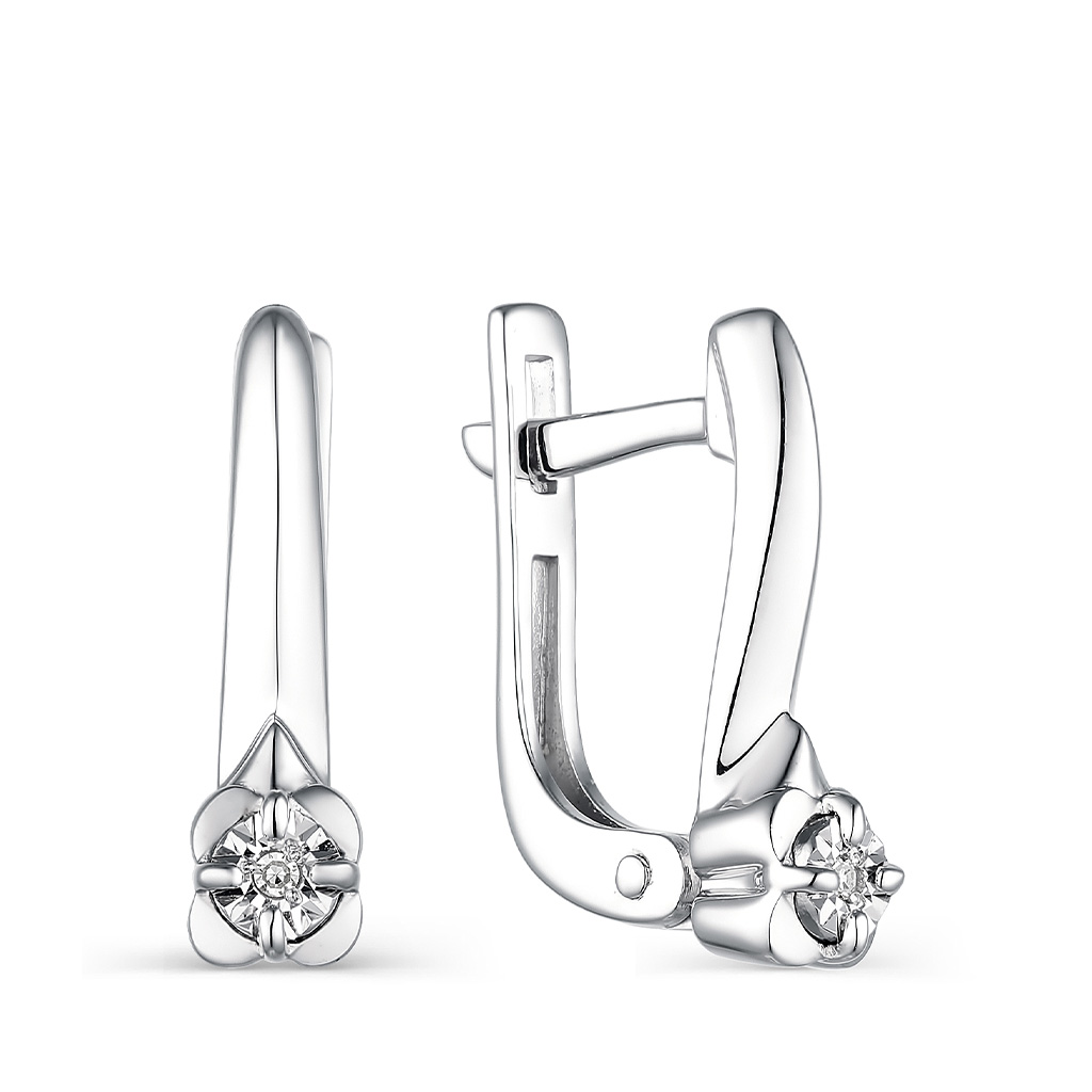 Серьги с английским замком из серебра с бриллиантами