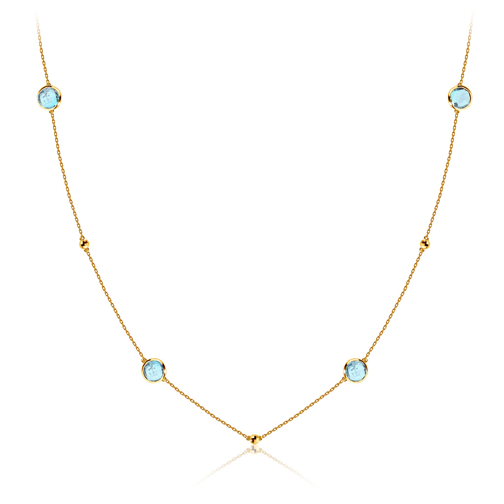 Колье из белого золота с топазом, фианитом, плетение якорное