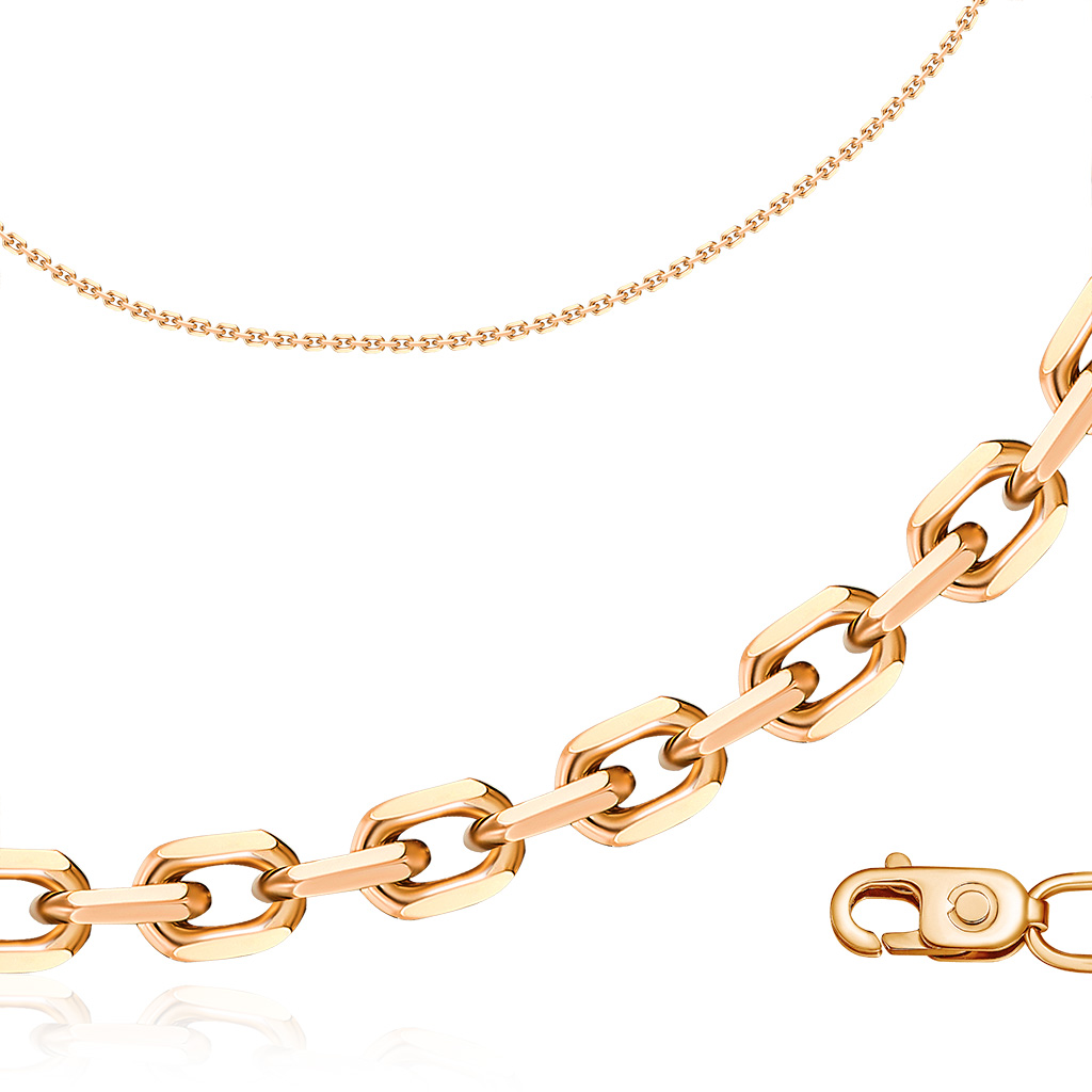 Цепь автомат из желтого золота, плетение якорная с удлиненным звеном