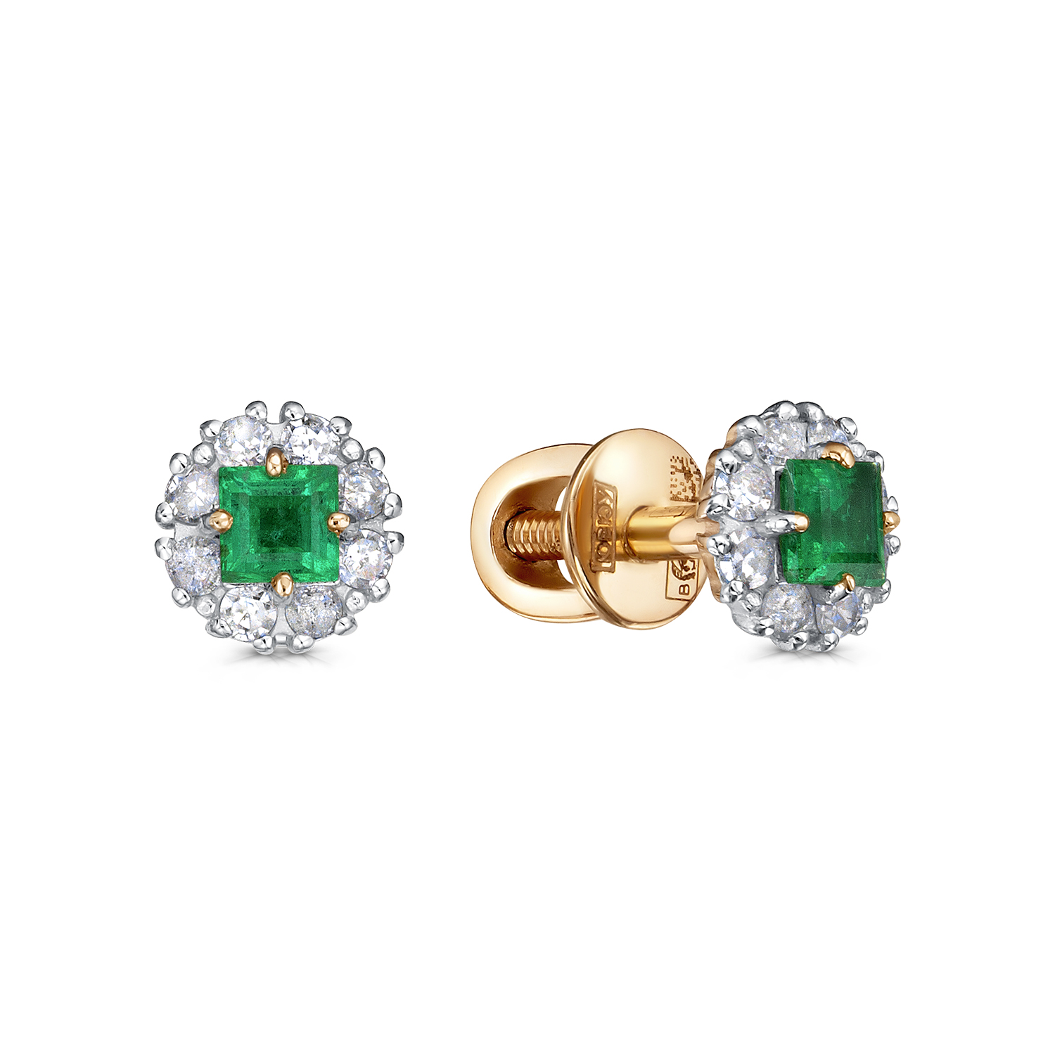 Серьги с английским замком из красного золота с бриллиантами и изумрудами