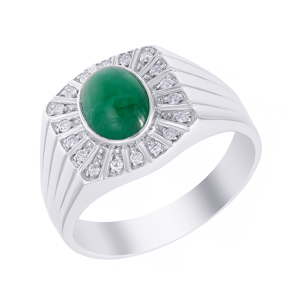 Кольцо из белого золота с изумрудами, эмалью, бриллиантами
