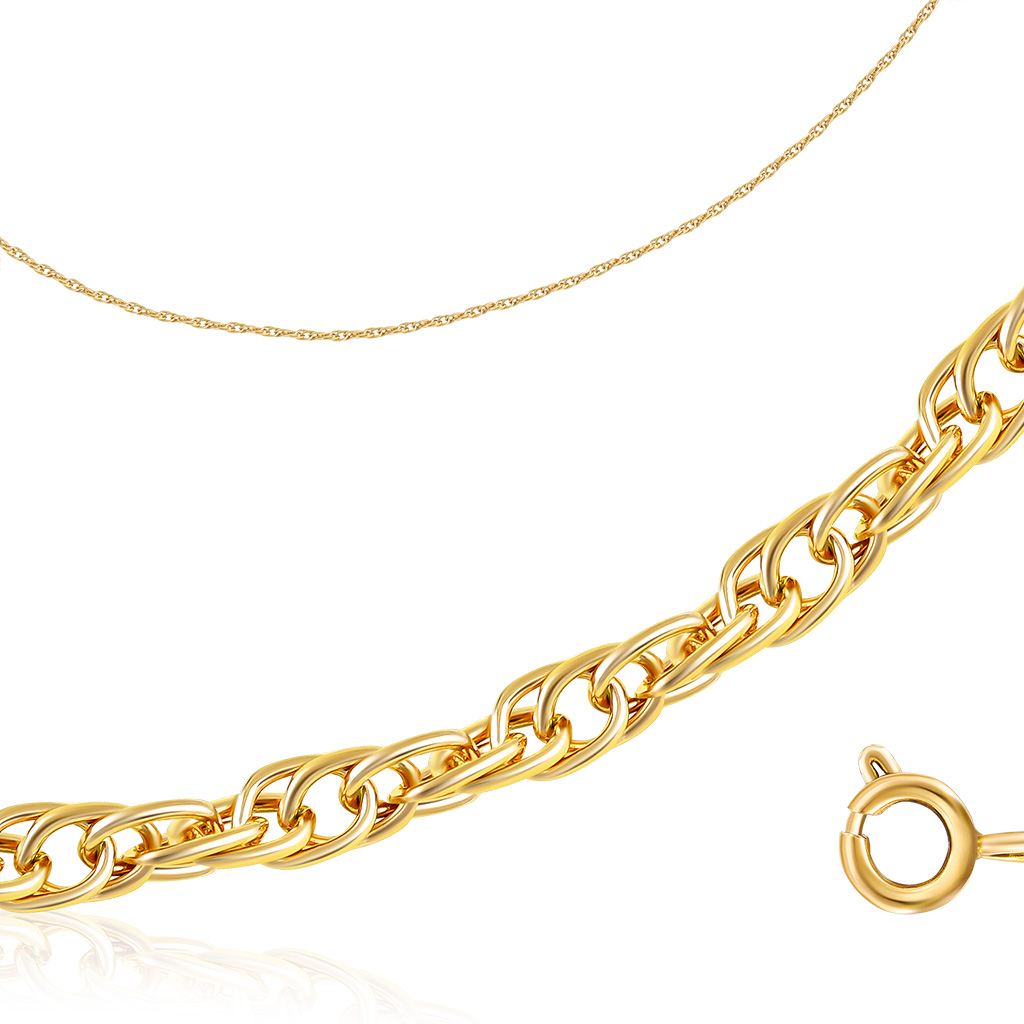 Цепь ручной работы из желтого золота, плетение бисмарк