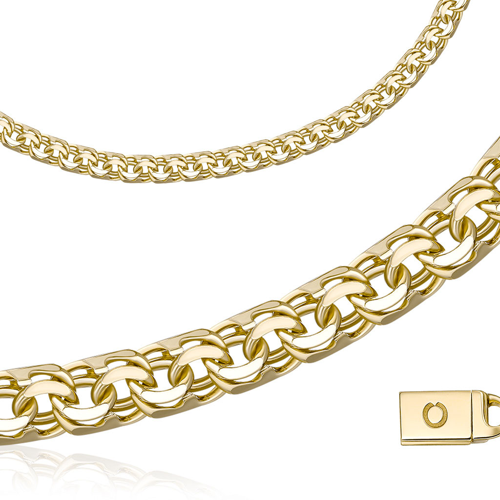 Цепь ручной работы из желтого золота, плетение шпрингелевое