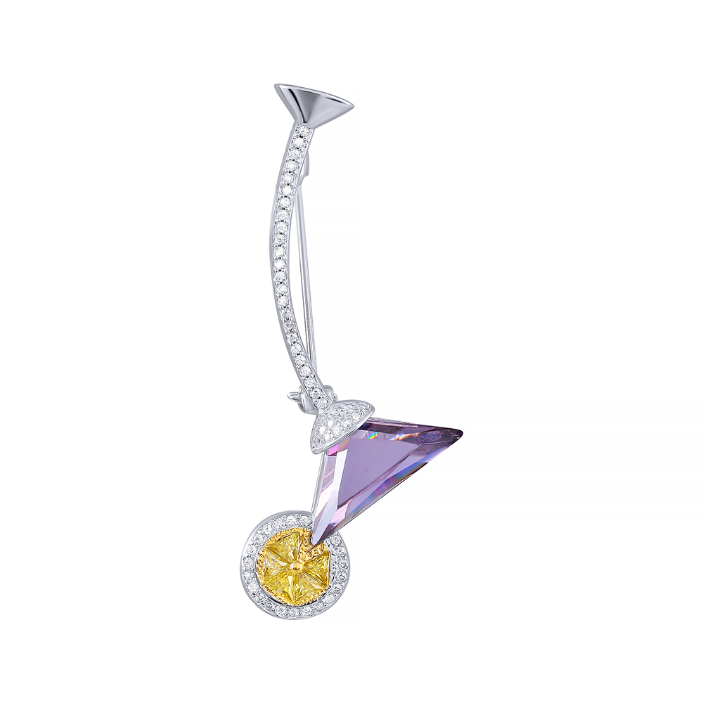 Брошь из серебра с гранатом, топазом, эмалью, золочением