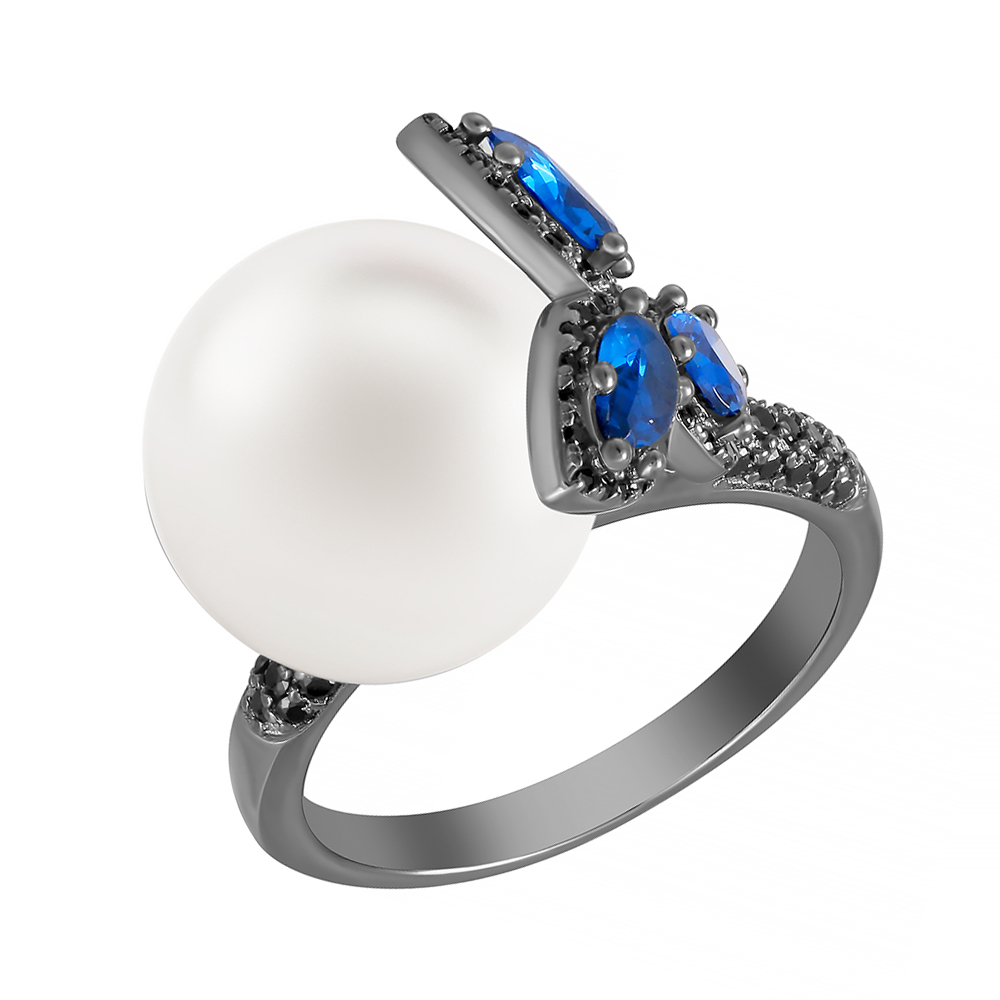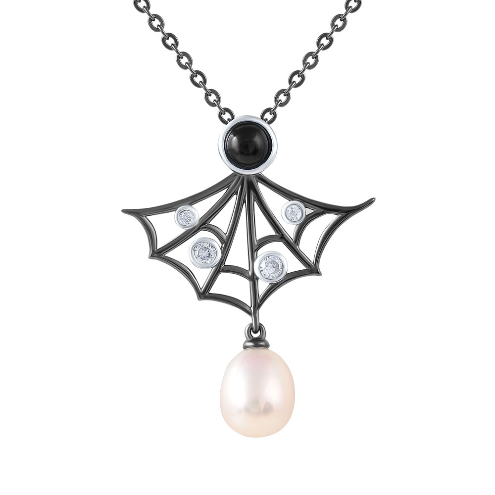 Колье из серебра с ониксом, фианитом, жемчугом