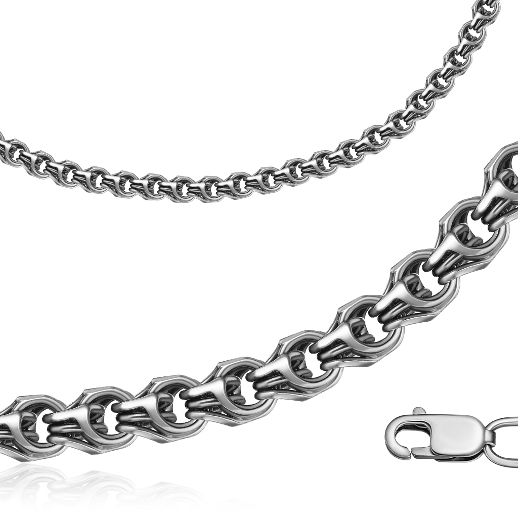 Цепь автомат из серебра, плетение двойной ромб
