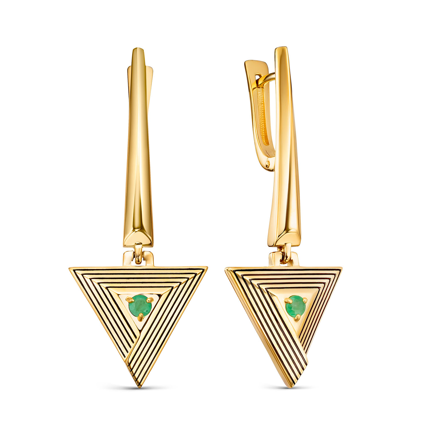 Серьги из желтого золота с изумрудами