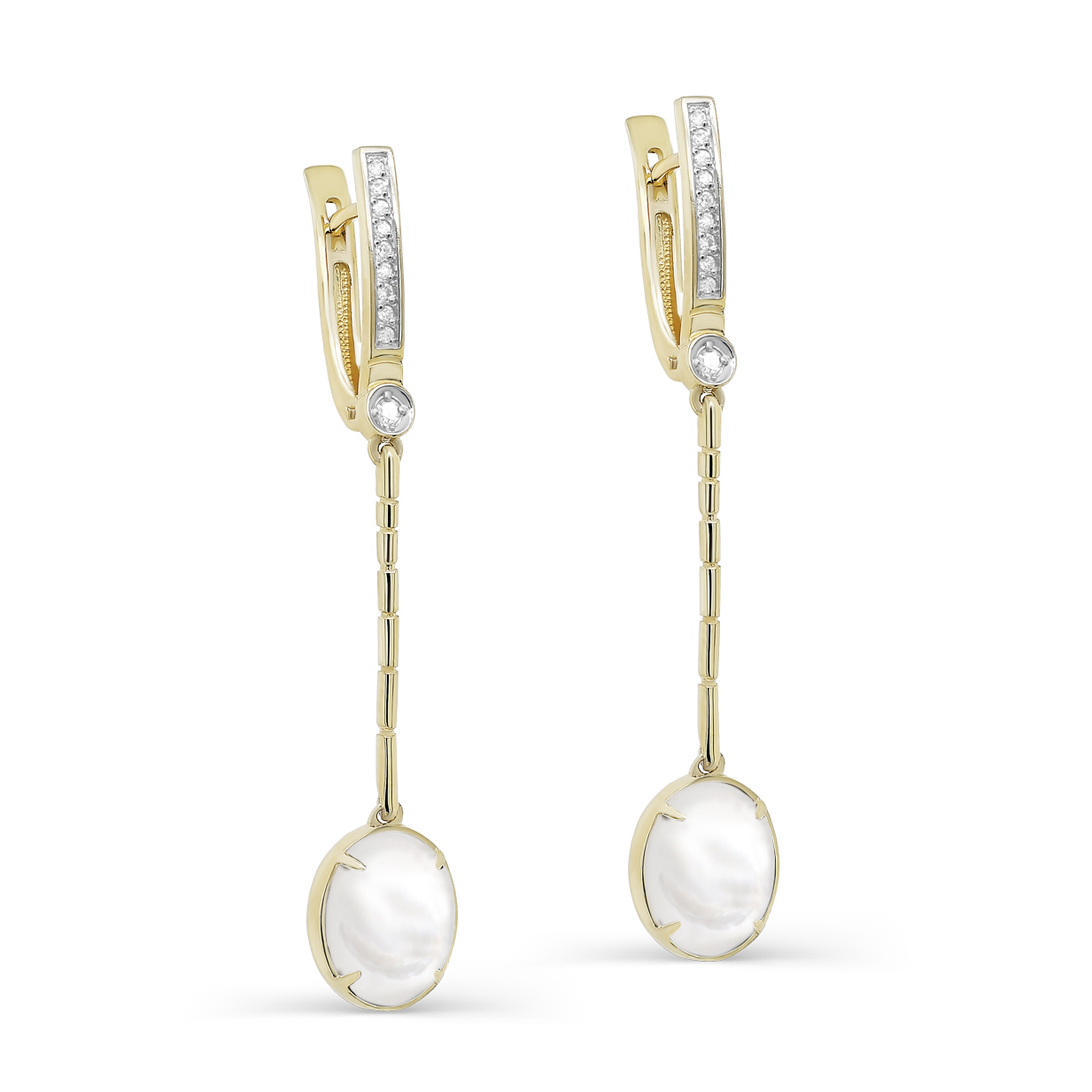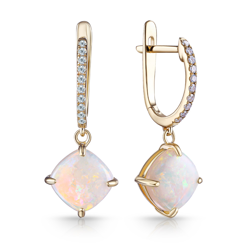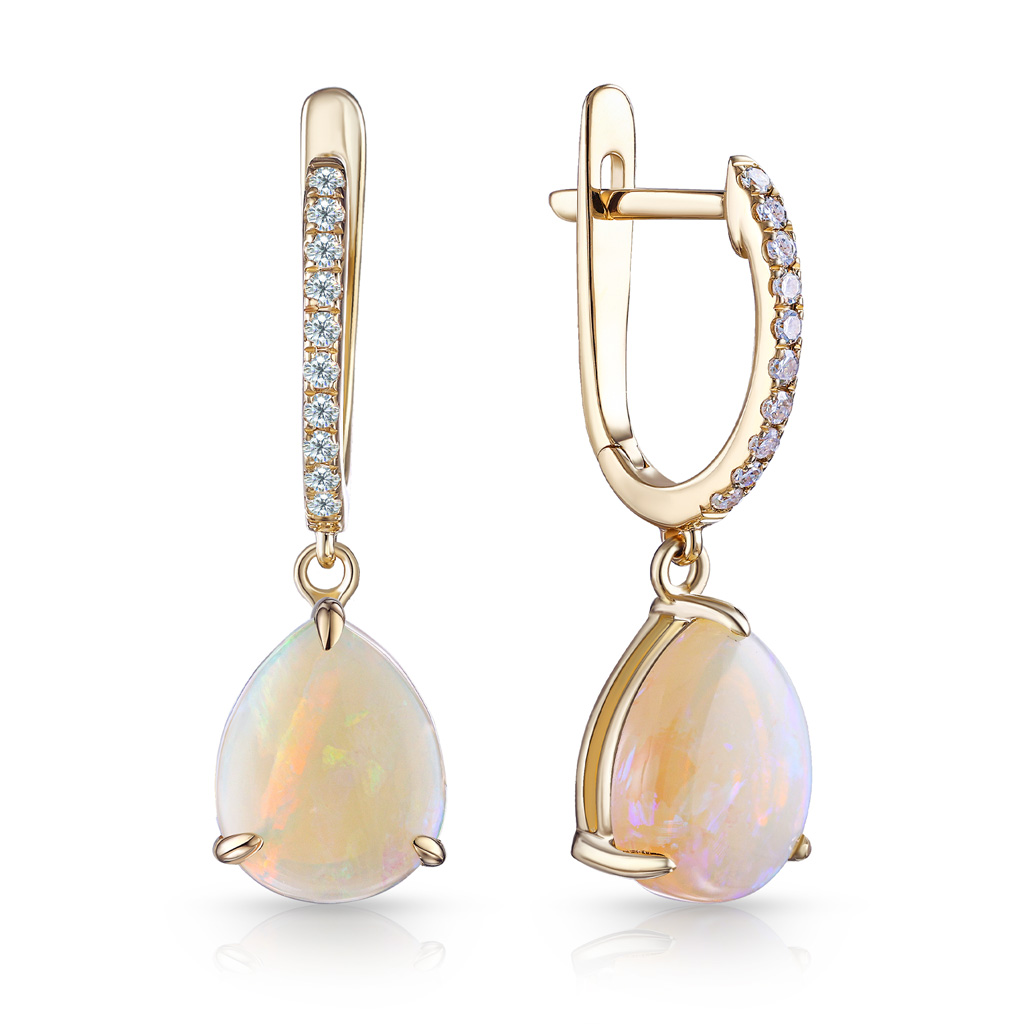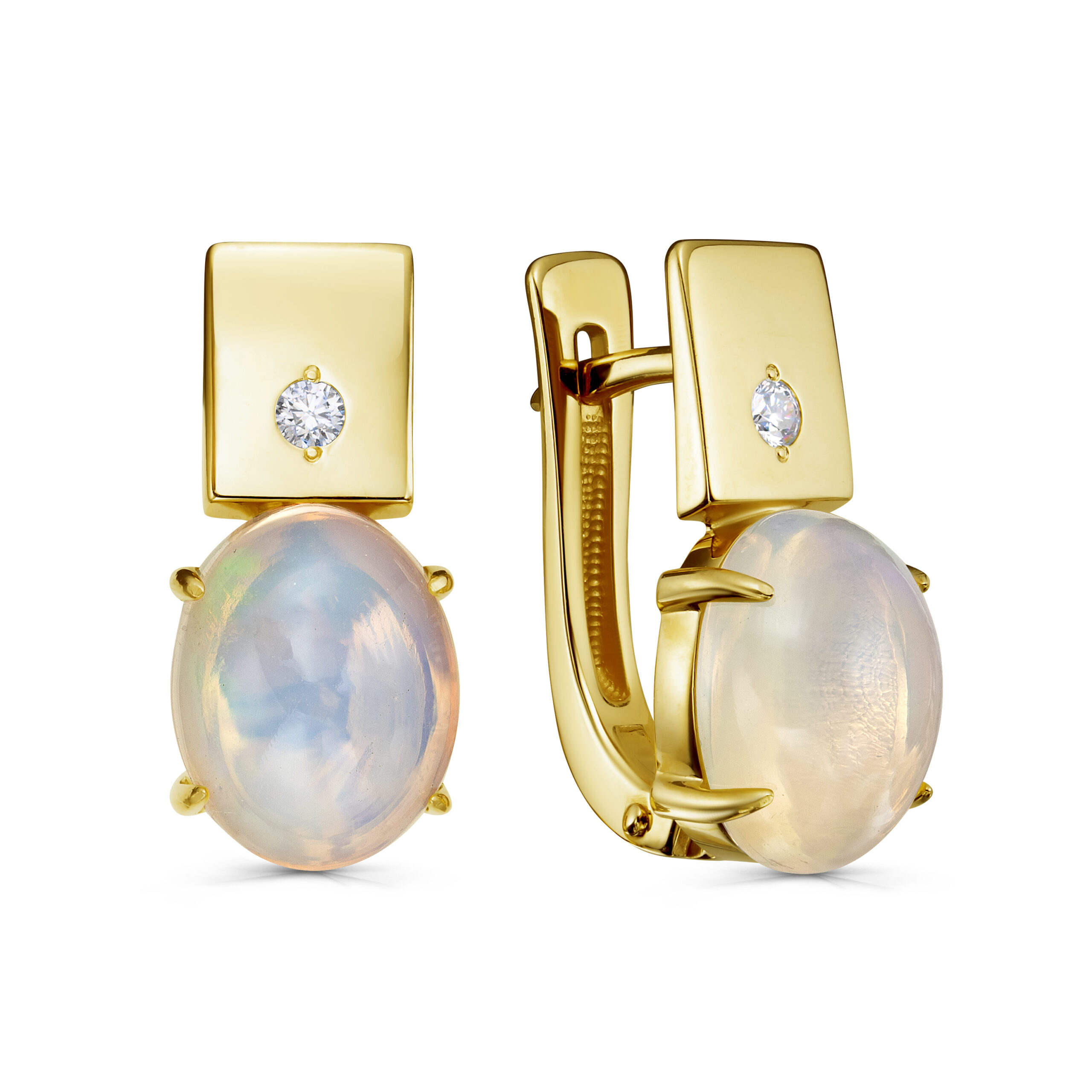 Серьги с английским замком из белого золота с бриллиантами, опал