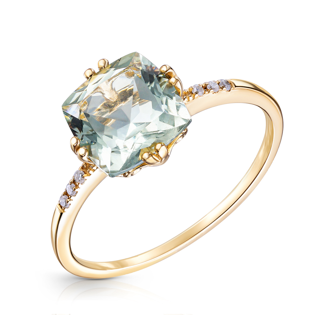 Кольцо из желтого золота с бриллиантами и аметистом