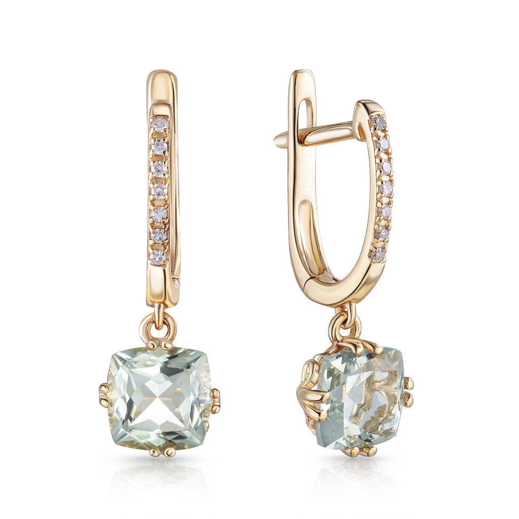 Серьги с хризолитом, аметистом из желтого золота с английским замком