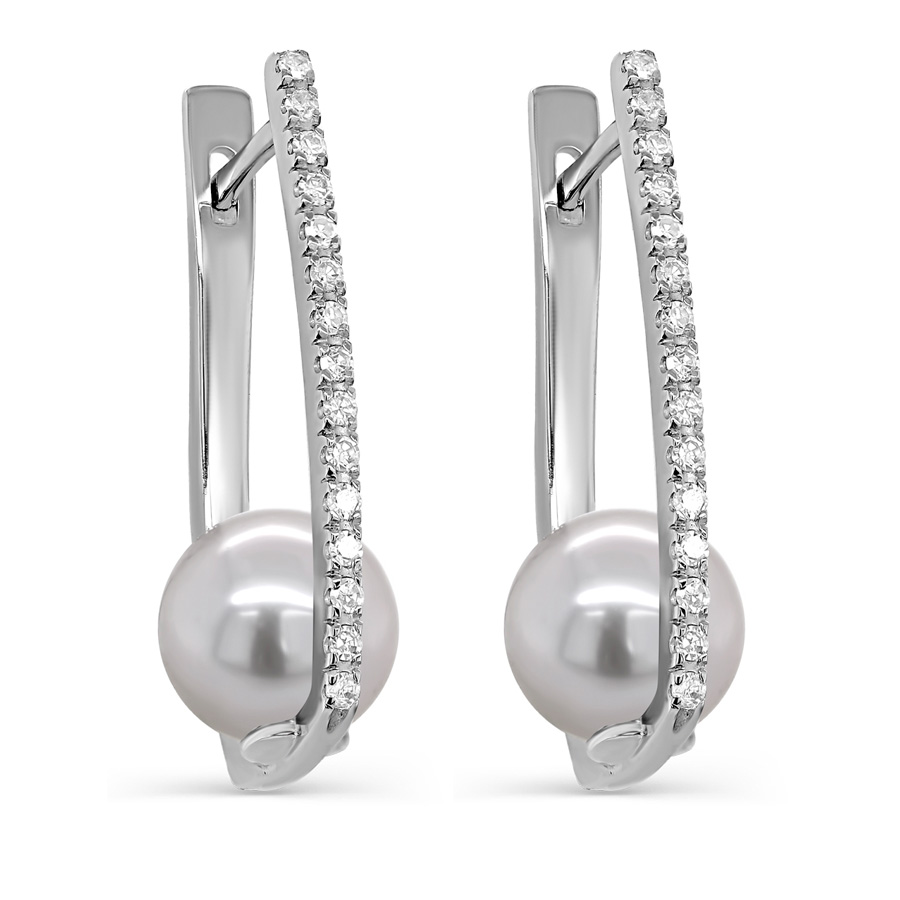 Серьги с английским замком из белого золота с бриллиантами, жемчугом
