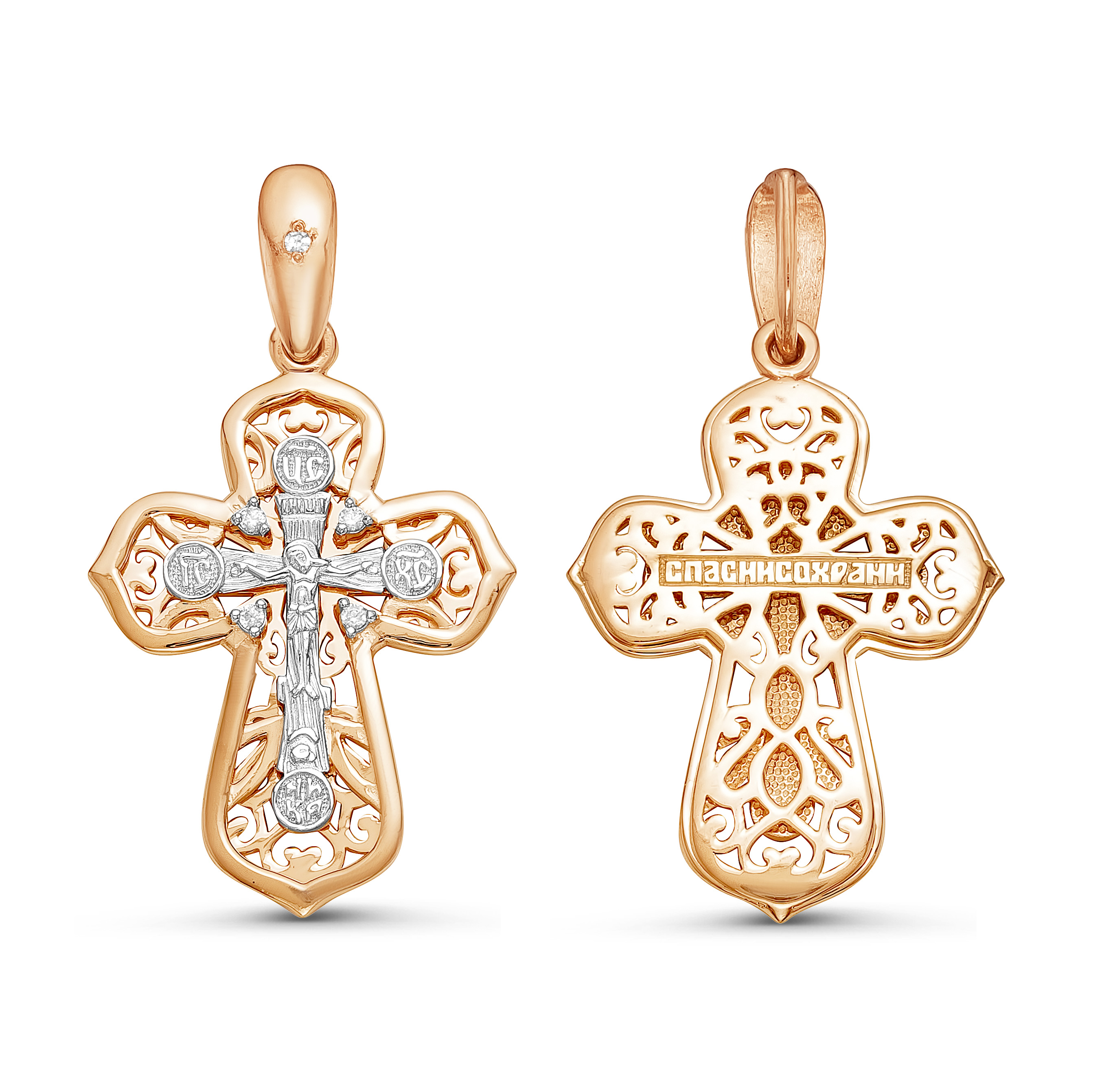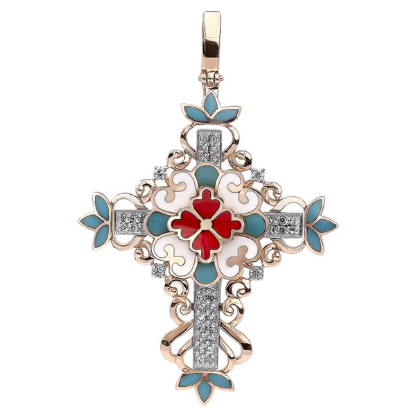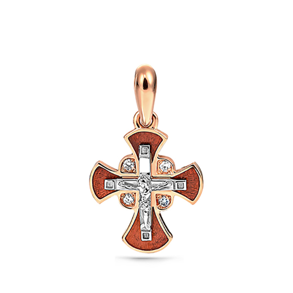Крест из красного золота с бриллиантами