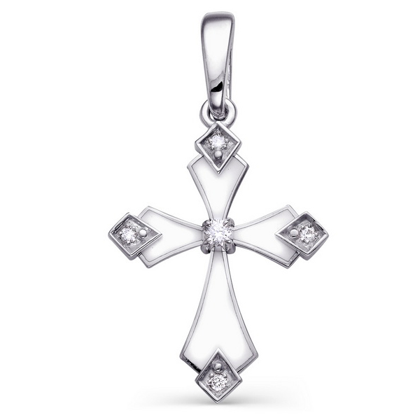 Крест из белого золота с бриллиантом