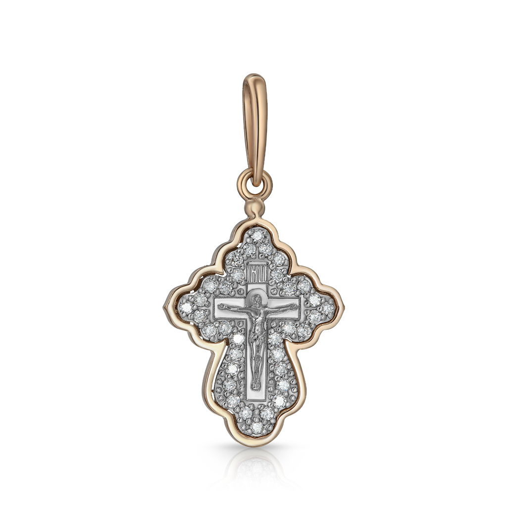 Крест из комбинированного золота с бриллиантами