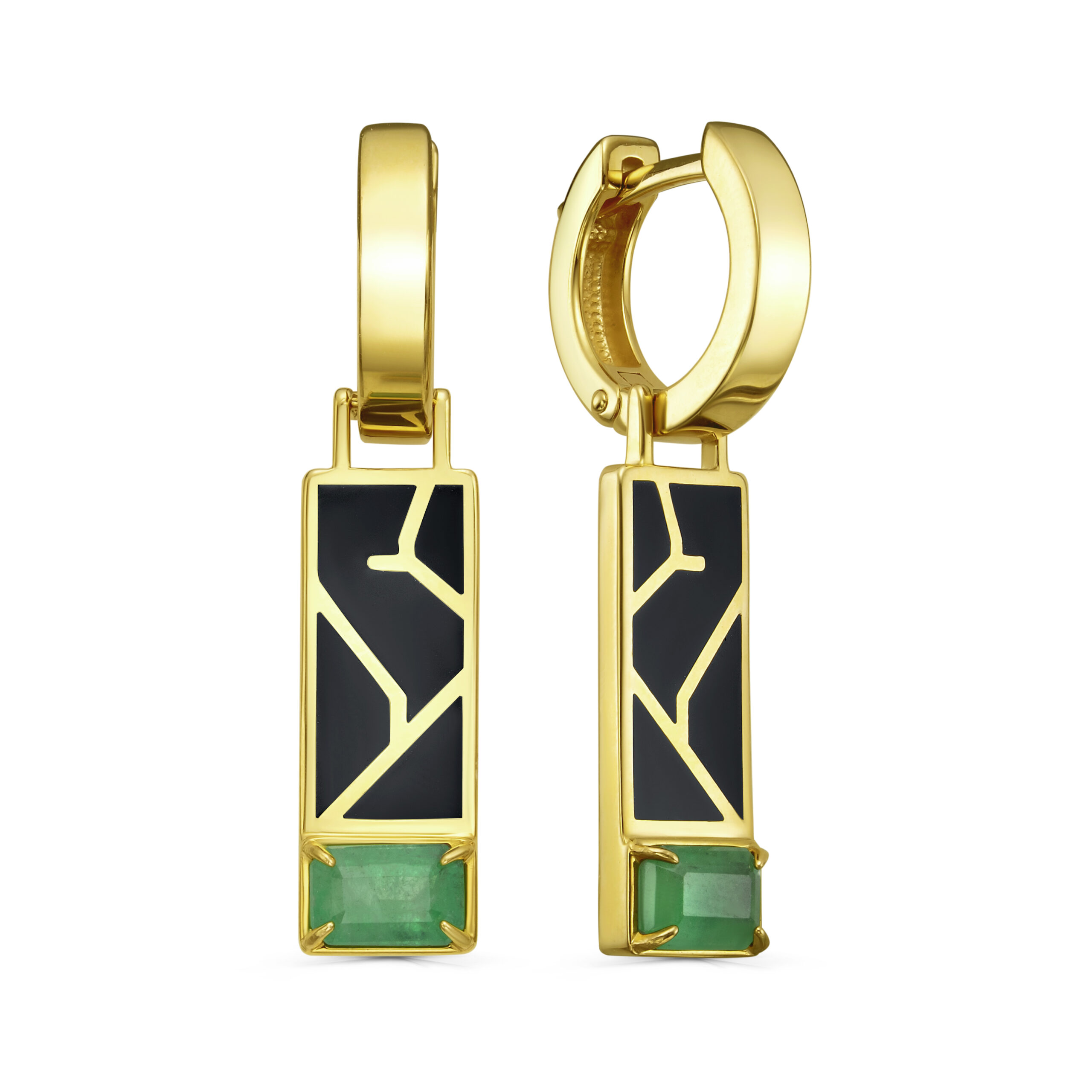 Серьги из желтого золота с изумрудами