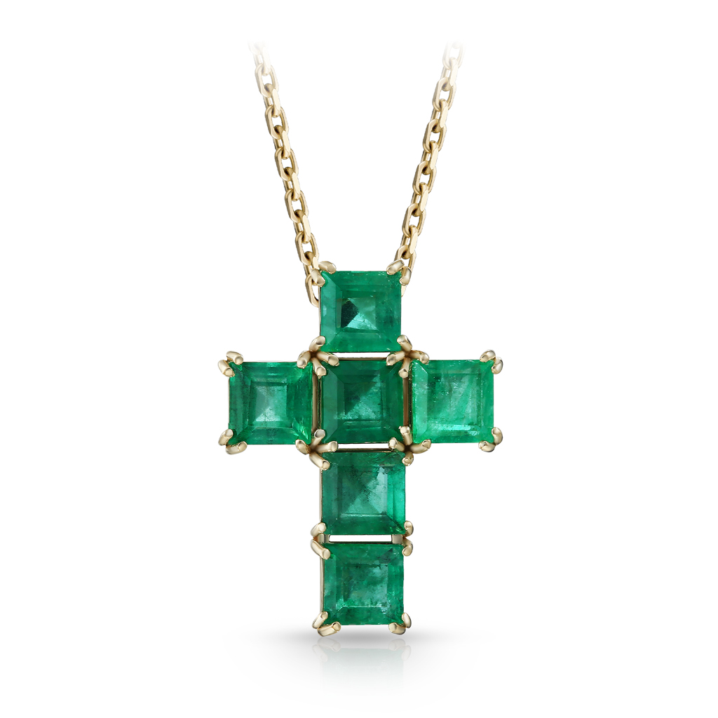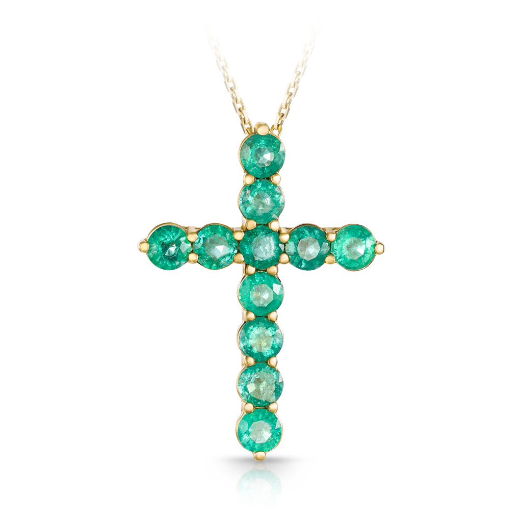 Крест декоративный из красного золота с изумрудами