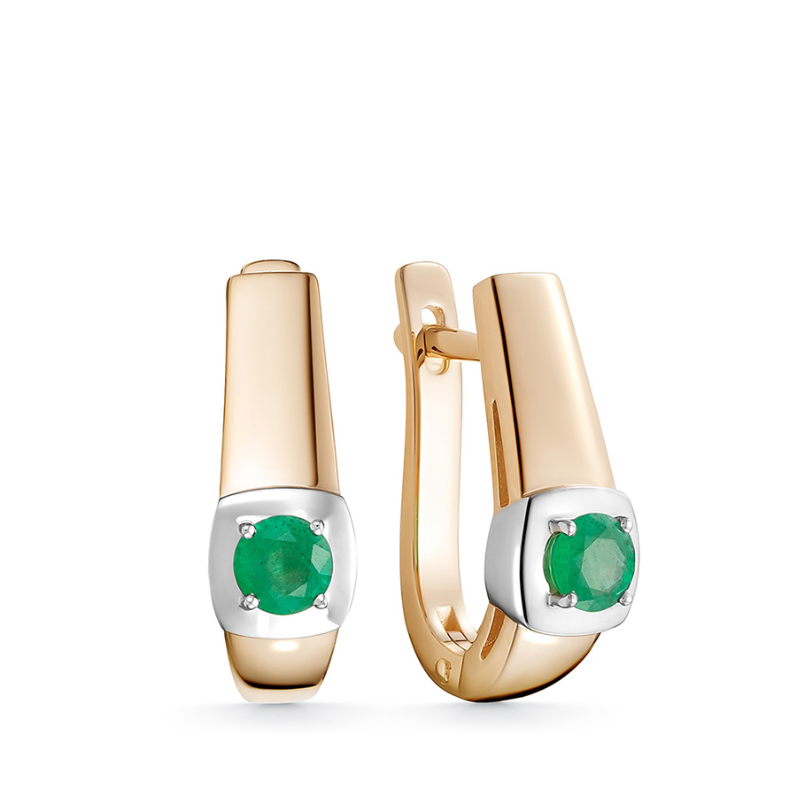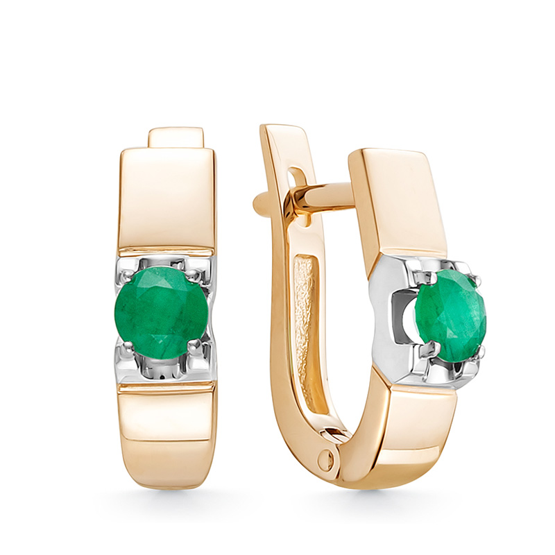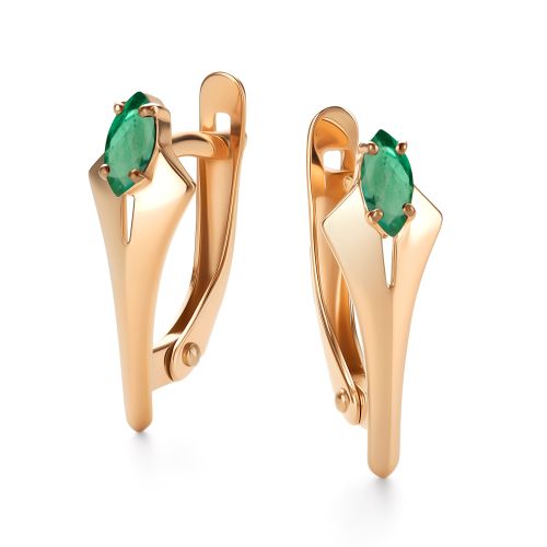 Серьги с английским замком из красного золота с изумрудами