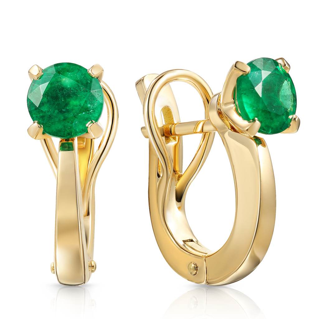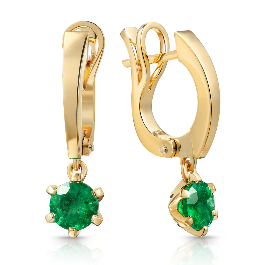 Серьги с английским замком из желтого золота с изумрудами