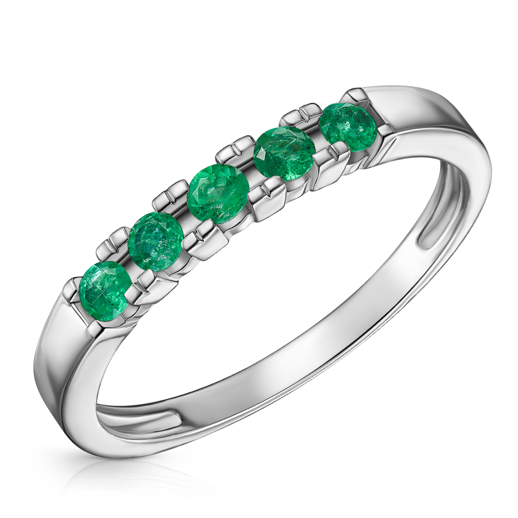 Кольцо из белого золота с изумрудами