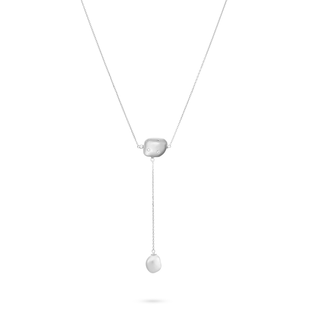 Колье из белого золота с бриллиантами, жемчугом, плетение якорное